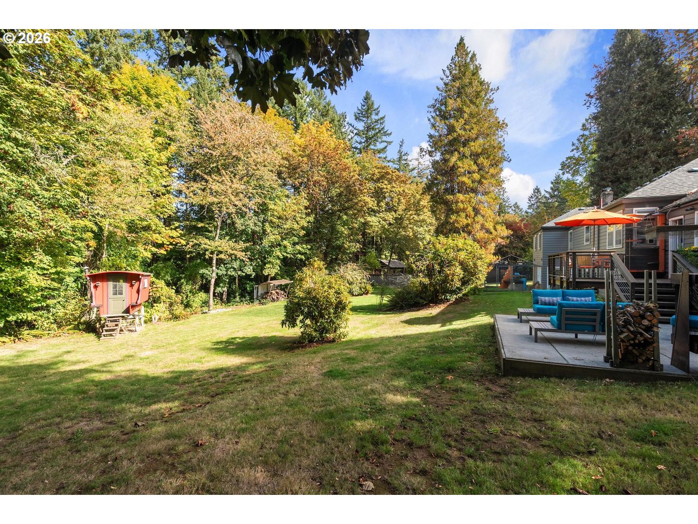 Important: The address is located on a Court, not a Street. Set on nearly an acre, this serene property offers the feel of a private retreat, surrounded by mature trees and beautifully landscaped grounds. A spacious gourmet kitchen, remodeled in 2015, offers stainless steel gas appliances, a breakfast bar, and custom built-ins—ideal for both everyday living and entertaining. The living room is warm and inviting with a wood-burning fireplace, beautifully refinished wood floors, a classic coved ceiling, and an abundance of windows that fill the space with natural light. The spacious primary suite is a true sanctuary, offering a massive walk-in shower, skylight, and an adjacent laundry room for added convenience. A cozy dining room by the window creates the perfect spot for everyday meals or quiet mornings. A welcoming front patio and generous rear outdoor living spaces invite relaxed entertaining, with a fireplace and wall-mounted screen setting the stage for cozy summer movie nights. An oversized one-car garage adds functionality, while the expansive grounds provide privacy, tranquility, and endless possibilities for enjoying the outdoors. A right-of-way and trail are located adjacent to the property, providing direct access to Tryon Creek State Park. This lot is potentially dividable, please verify with the city. [Home Energy Score = 5. HES Report at https://rpt.greenbuildingregistry.com/hes/OR10244023]