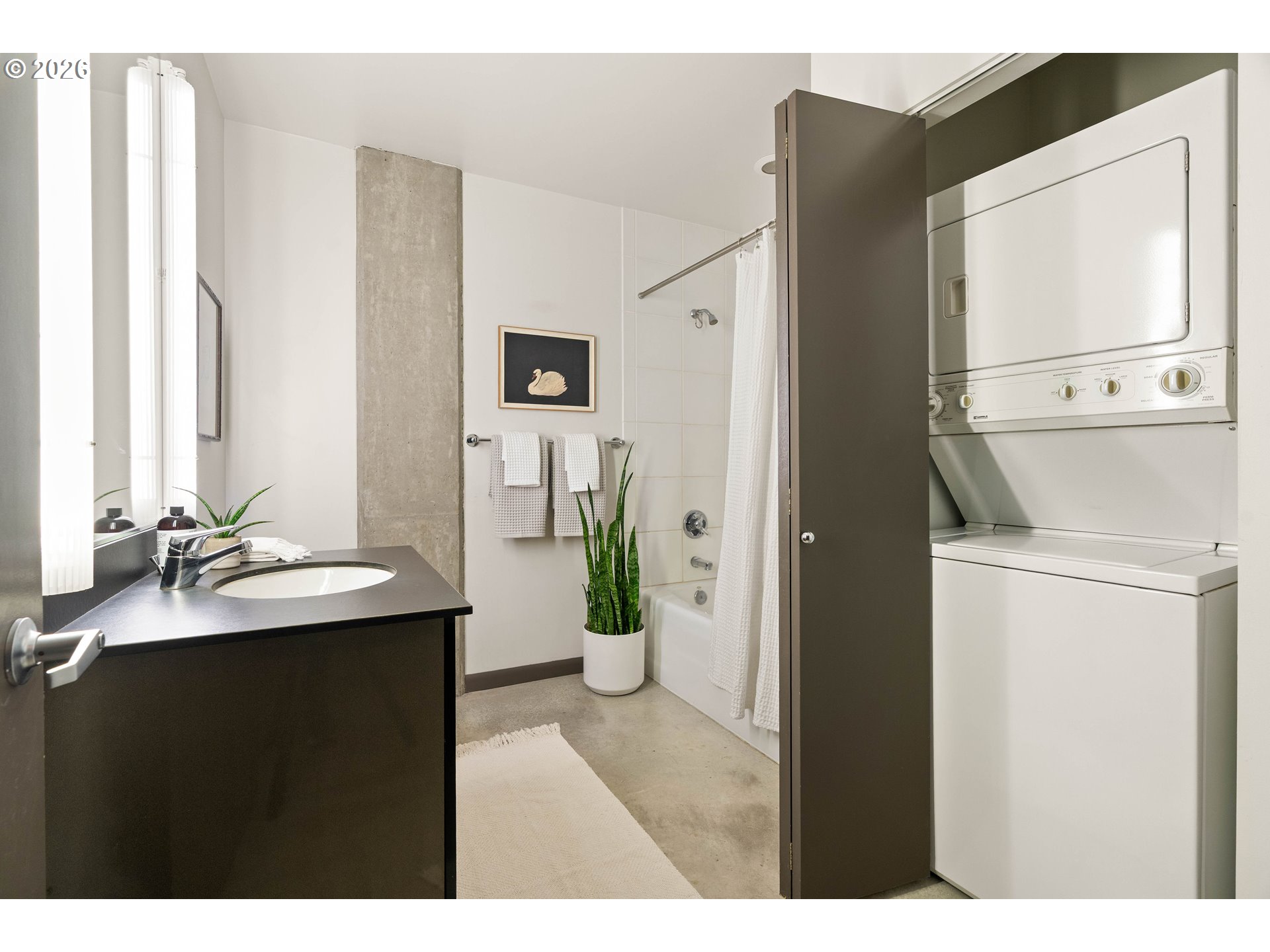 Live large by living simply. This beautifully styled 663 sq ft residence at Streetcar Lofts proves that less space can mean more life. Thoughtfully designed with soaring ceilings, expansive windows, and a bright, open layout, this home feels anything but small—inviting you to slow down, spread out, and truly enjoy where you live. A private balcony overlooking the landscaped courtyard offers the best of both worlds—lush greenery and city energy—while maintaining a sense of calm and privacy that’s rare in urban living.Set in the heart of Portland’s coveted Pearl District, you’re surrounded by the best of the city—morning coffee, gallery strolls, evening dinners, First Thursdays, and the streetcar just steps away. Industrial-chic architecture meets modern comfort, creating a space that feels both grounded and inspired.The building itself elevates everyday living, with a beautifully landscaped courtyard offering a peaceful, green escape, a well-appointed fitness center to keep your routine effortless, and inviting common spaces that are perfect for gathering, hosting, or simply enjoying a change of scenery.Inside, a newly updated kitchen features a sleek induction oven for precise, efficient cooking, while a spacious walk-in closet provides exceptional storage. A brand new HVAC system installed in 2026 adds comfort and peace of mind, rounding out the home’s thoughtful upgrades. With peaceful outlooks and the rare ease of deeded parking, this is effortless urban living at its finest. Whether you’re seeking an elegant flat or a stylish everyday retreat, this home delivers a lifestyle that feels expansive, connected, and undeniably cool.