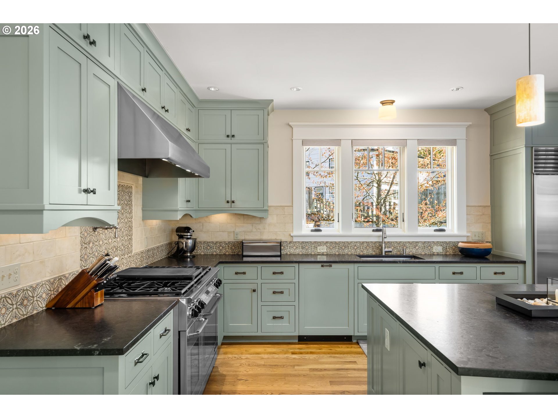 OPEN 4/4 1p-3p & 4/12 12p-2p. Custom-built,"historically sensitive" reproduction Craftsman in a rare private cul-de-sac setting in a beautiful pocket of Mt. Tabor. High-end finishes throughout with an open-concept living/dining layout anchored by a chef’s kitchen featuring an oversized island, Dacor dual-oven 6-burner range, Sub-Zero refrigerator/freezer, abundant built-ins, and folding French doors opening to a covered, heated deck with gas line and new high-end decking. The yard is fully fenced and completely re-landscaped providing a private and beautiful area for play, entertaining or just relaxing. The light and bright living spaces include a great room with gas-start wood-burning fireplace and built-in cabinets and window seats with storage, an open formal dining room with a built-in china hutch and an additional window seat. You'll also find a den/library/office with a gorgeous divided light pocket door, two closets and a wall of custom bookshelves. Upstairs includes a spacious primary suite with walk-in closet, large private balcony, spa-inspired bath with heated floors, soaking tub, and walk-in shower. Two additional bedrooms with full bath and upper-level laundry with washer/dryer complete the upper level. A fully finished basement offers a guest bedroom, steam shower bath, media room with surround sound, flexible bonus room (gym,studio) and large temperature-controlled wine cellar. This beautiful home maintains the classic architecture of old Portland with all of today's upgrades. Homes like this don't come around very often- it's definitely a must see! [Home Energy Score = 8. HES Report at https://rpt.greenbuildingregistry.com/hes/OR10148754]