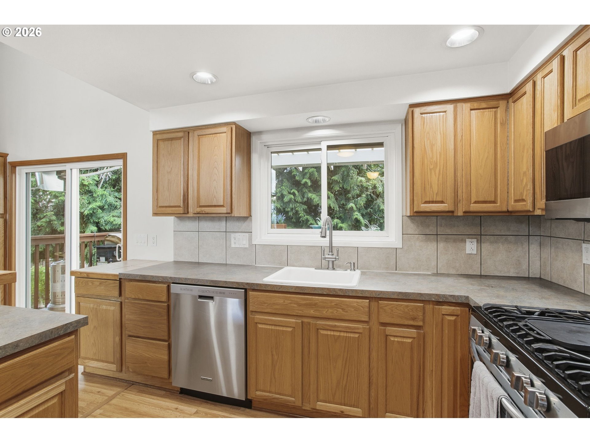 Located at the quiet end of a friendly dead-end in the sought-after Parkrose Heights neighborhood, this fully remodeled split-level home offers modern comfort and versatile space on 2,436 sq ft. Five spacious bedrooms and three full bathrooms provide flexibility for families, multigenerational living or a home-office setup. As you step inside, vaulted ceilings immediately open the main level, creating an airy, light-filled living area that flows seamlessly into a gourmet kitchen, dining space and family room. Large, energy-efficient windows frame views of the meticulously landscaped front yard, where an internet-controlled sprinkler system keeps the garden lush with minimal effort.The open-concept design is anchored by a partially covered deck that extends from the main floor, adding usable square footage for barbecues, holiday gatherings or relaxed evenings with coffee in hand. Downstairs, a daylight basement offers a private patio and a cozy fire-pit setting—perfect for intimate outdoor nights or a low-maintenance retreat. The lower level also includes a flexible family room, a full bathroom and a dedicated laundry area, keeping the upper floor uncluttered.The master suite is a private haven, featuring a slider to the deck, a large walk-in closet and an ensuite bathroom with a glass-enclosed shower. Four additional bedrooms share two well-appointed baths, each finished with contemporary fixtures and ample storage. Recent upgrades such as a newer roof, well maintained HVAC to ensure year-round efficiency and peace of mind.Conveniently situated just minutes from parks, the Columbia River Trail, coffee shops, schools, shopping and major transit routes, this home blends serene suburban living with easy access to urban amenities. Experience a lifestyle where thoughtful design, smart upgrades and a tight-knit community converge in one exceptional Parkrose Heights address.
