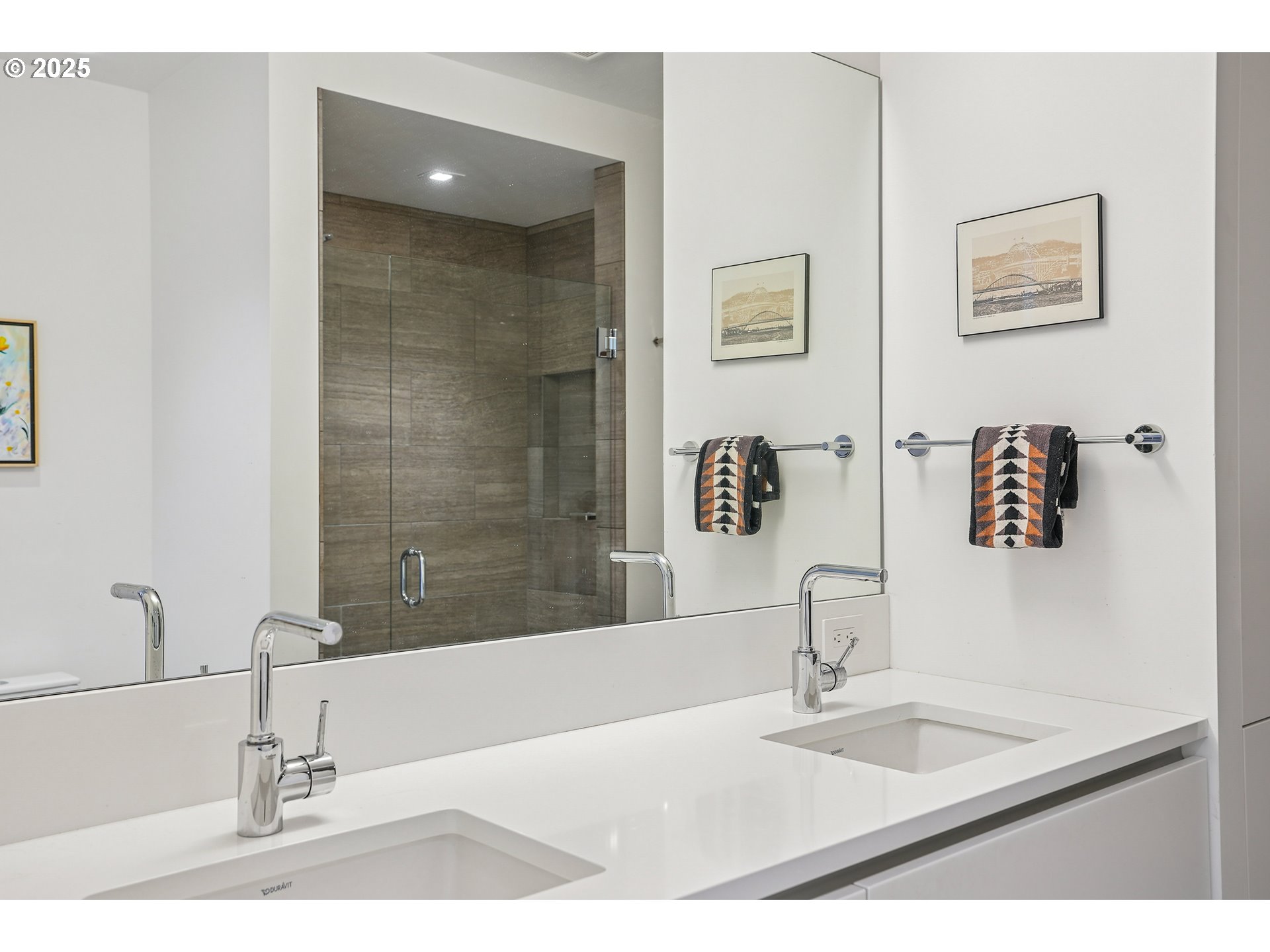 If your desire is urban sophistication, then look no further. This corner unit is located in The Cosmopolitan on the Park, which is in Portland’s vibrant Pearl District. This sleek one bedrooms plus a den with 2 full bathrooms offers an unparalleled living experience with breathtaking Willamette River views from every vantage as well as west hills and sunset scapes. Step into a bright and open living space that features flooded light from its floor-to-ceiling windows. The stunning design highlights high-end finishes which include hardwood floors, quartz countertops, and Pedini custom cabinetry. The primary suite is a peaceful and spacious retreat that has an en-suite bathroom with dual sinks and a walk in shower. The den is suitable as a guest room and office hybrid, with plenty of space to allow for both. Additional features include secured and patrolled parking, a fitness center, community lounge and concierge service.