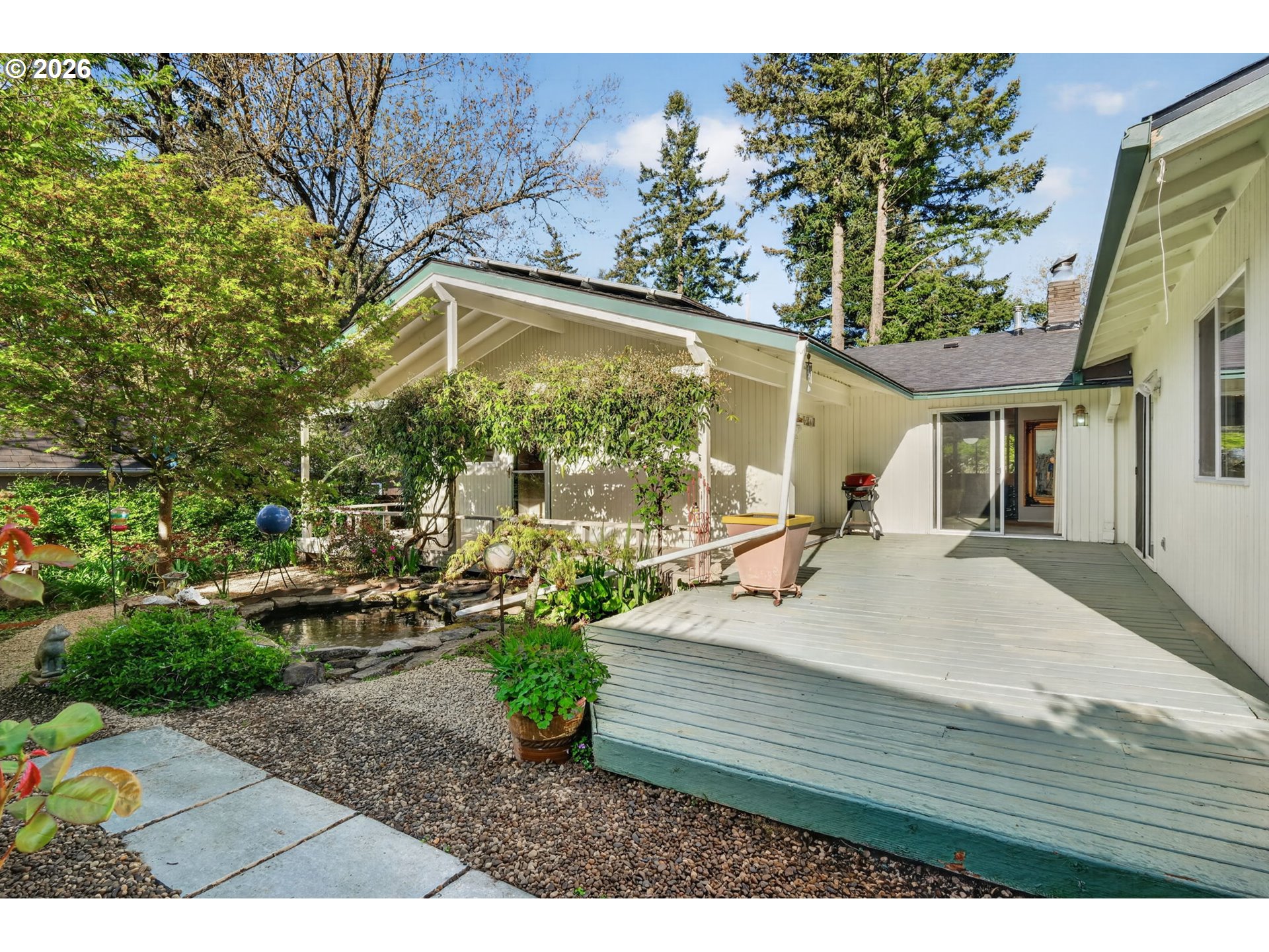 Light, open 4 bedroom 2.5 bath home with tons of potential. Living room, dining room, family room, huge primary suite with spacious attached bath. 3 other additional bedrooms. Private backyard with beautiful landscaping, Koi pond and entertainers deck. New roof, newer furnace, owned solar, water heater, and AC. Just minutes to PCC, I-5, downtown and Multnomah Village.