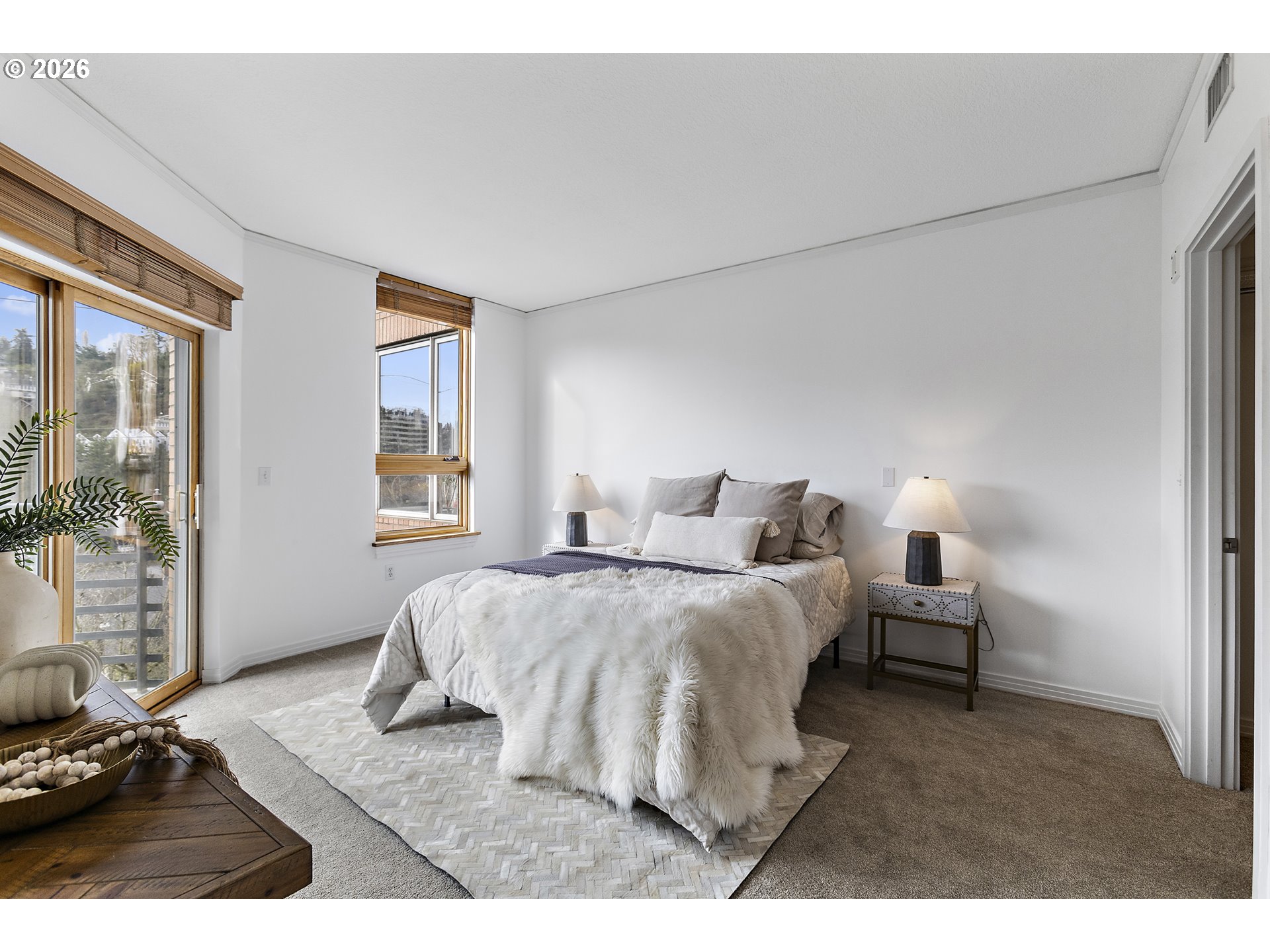 Welcome to the Legends condominiums! Set in the heart of Goose Hollow, this single-level condo has a private deck with panoramic city views, a cozy fireplace, and a freshly painted interior with carpeting that was replaced in 2022. Build community with neighbors at the private movie theater, fitness center, or library. Located in close proximity to top-rated eateries and just 700 FT from Multnomah Athletic Club, .2 miles from the Max line, .2 miles from Lincoln High and .3 miles from Providence Park, living at Legends offers easy access to the urban lifestyle! Come take a tour - OPEN HOUSE on 2/28-3/1 from 12-2.
