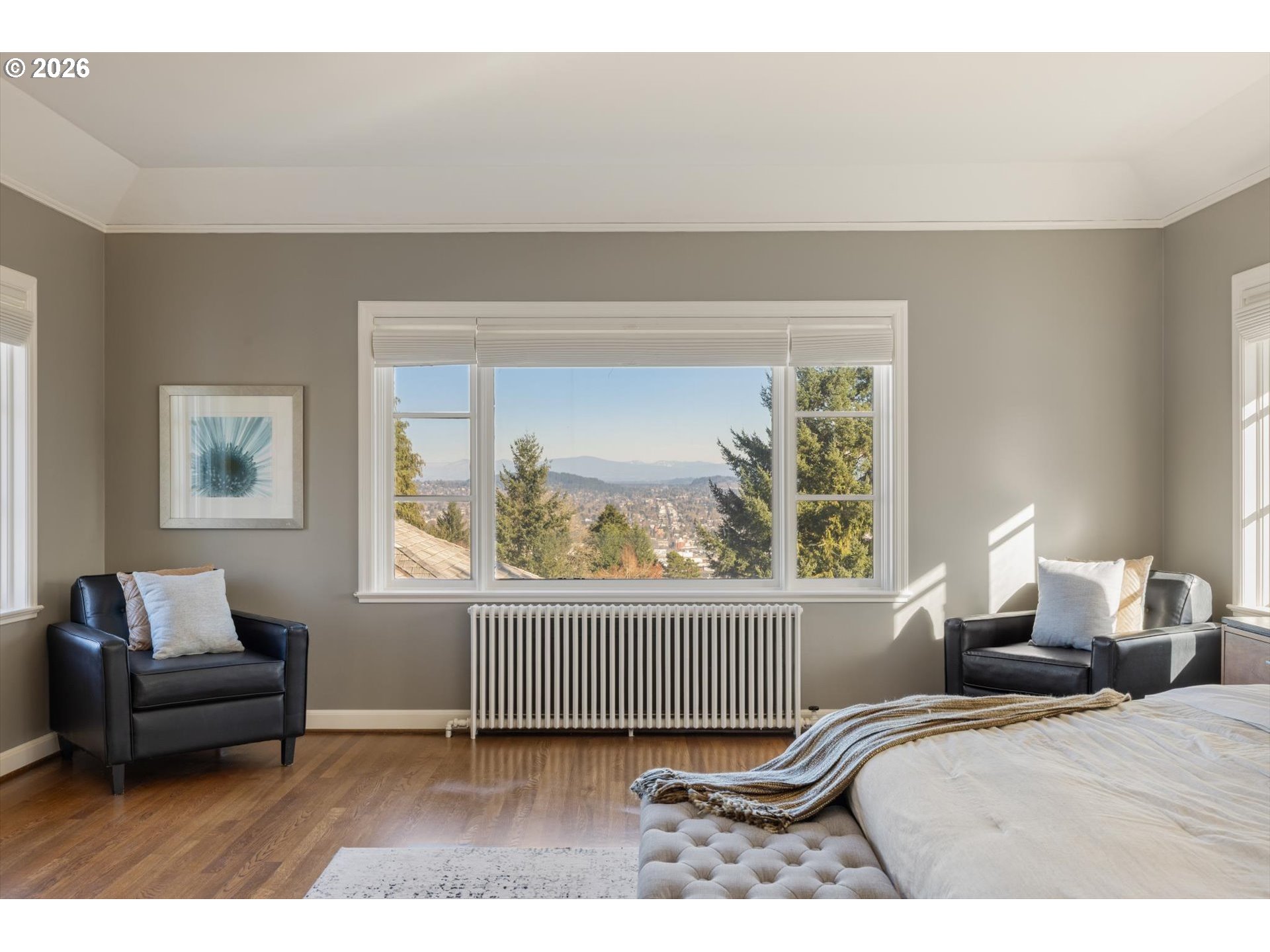 Offered for only the second time in its history, this 1942 Portland Heights masterpiece represents a rare opportunity to own a piece of the city’s architectural legacy. Originally designed by the renowned Herman Brookman, this residence has been meticulously modernized by IBuildPDX and designer Benjamin Silver. Sweeping city and mountain views provide a breathtaking backdrop to a floor plan that preserves original hardwood floors and sprawling windows while introducing a high-end, systems-level restoration. For ultimate accessibility, a working elevator services all three levels.The fully remodeled chef’s kitchen is a true showpiece, featuring custom cabinetry, an expansive island, and professional-grade appliances. A distinctive main-floor office with built-ins and a wood-burning fireplace adds refined character. A graceful curved staircase leads to the upper level, where the primary suite offers a private sanctuary with Mt. Hood views, a spa-like bath, and a private balcony. This level also includes an additional oversized suite, a laundry room, and two bedrooms joined by a Jack-and-Jill bath.The lower level is designed for leisure, featuring a bonus room with a built-in bar and a second fireplace. Practicality meets luxury with a secondary basement providing a second laundry room and massive storage. Outside, the private backyard retreat with mature landscaping and expansive decks offers a sense of elevation just minutes from downtown, OHSU, and local parks. [Home Energy Score = 1. HES Report at https://rpt.greenbuildingregistry.com/hes/OR10238972]