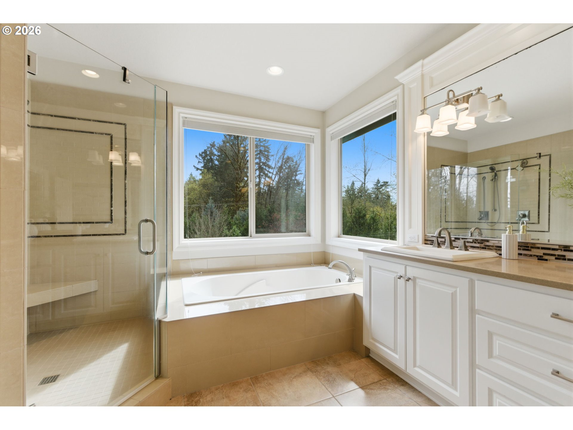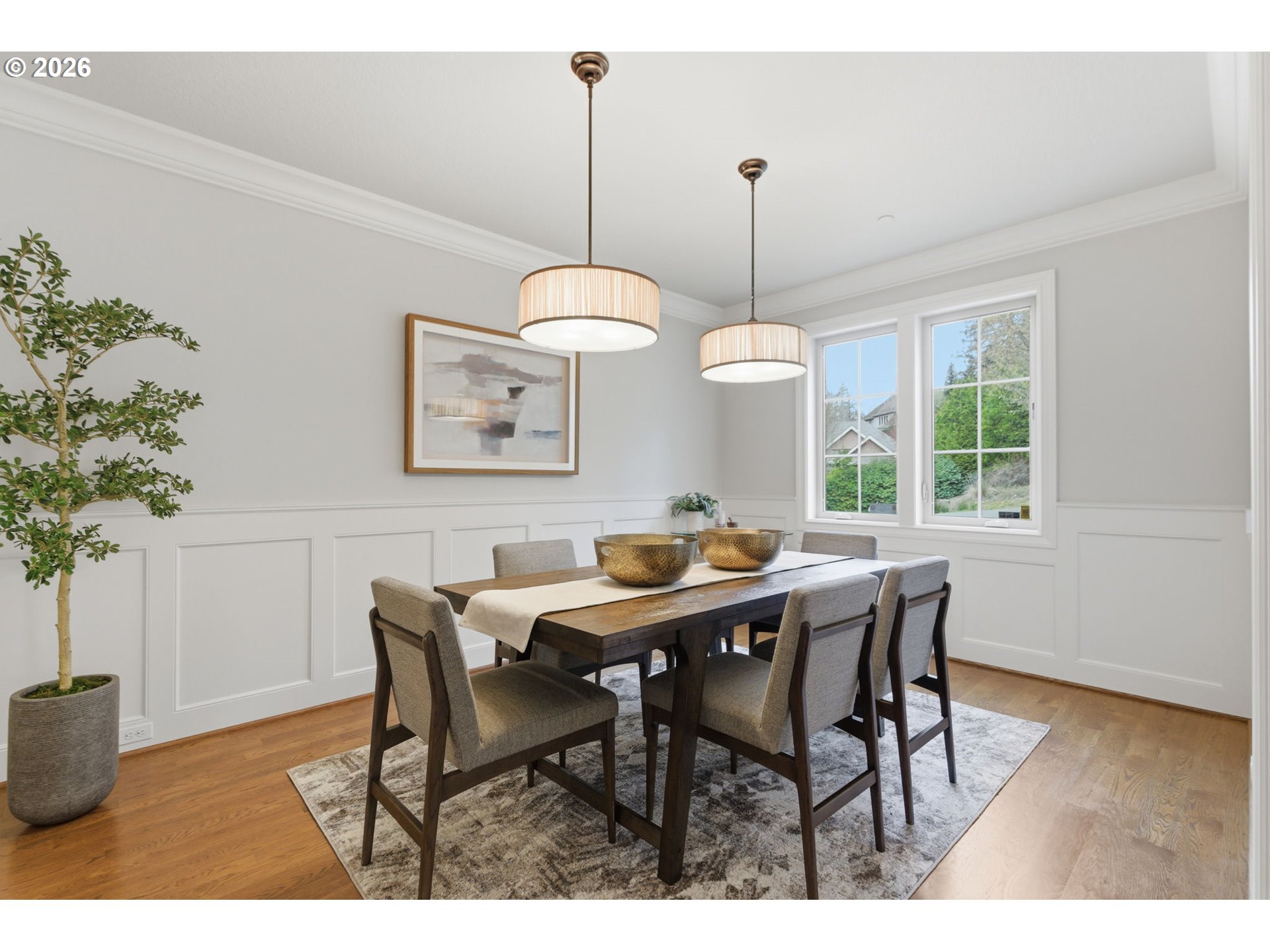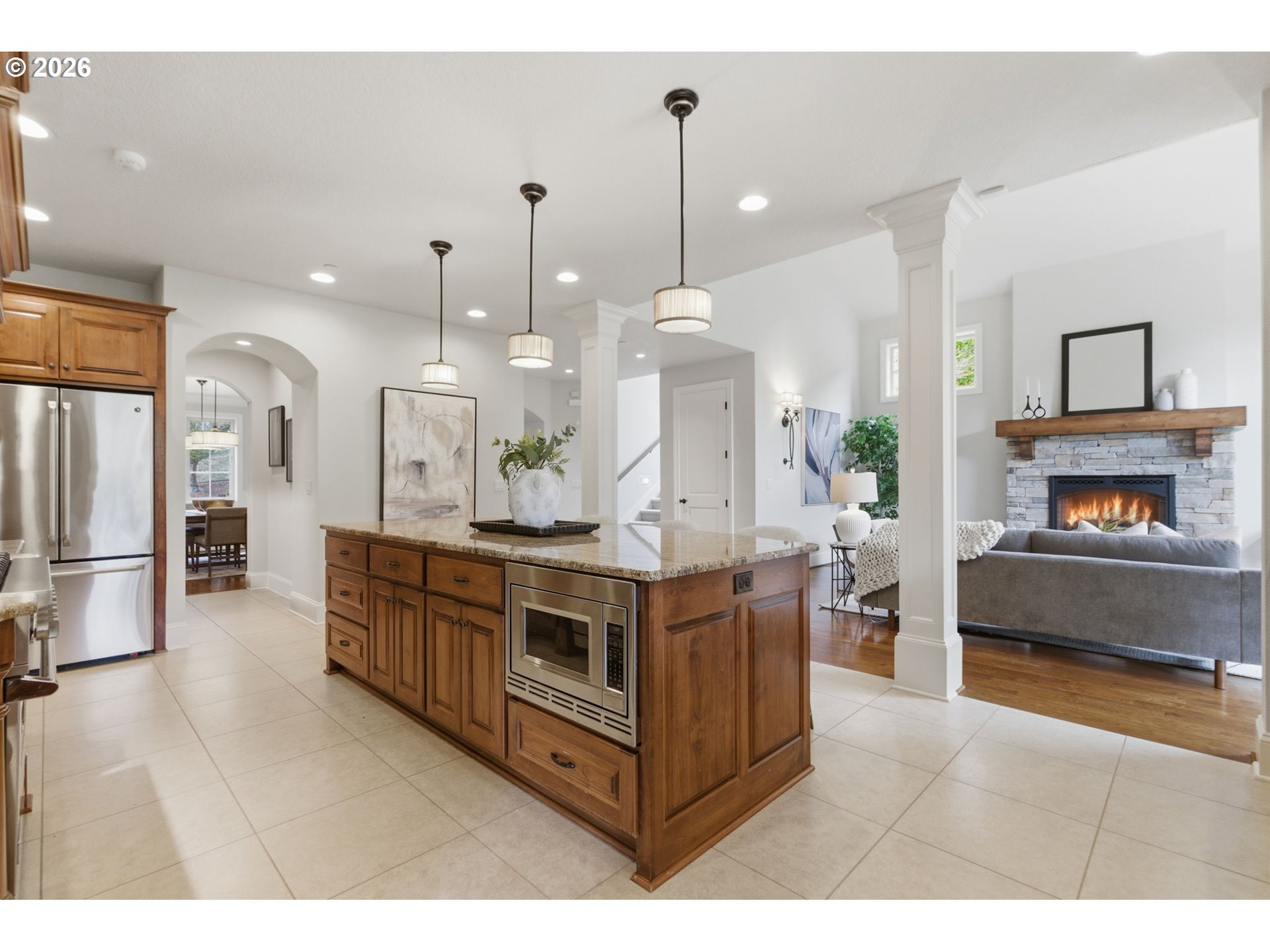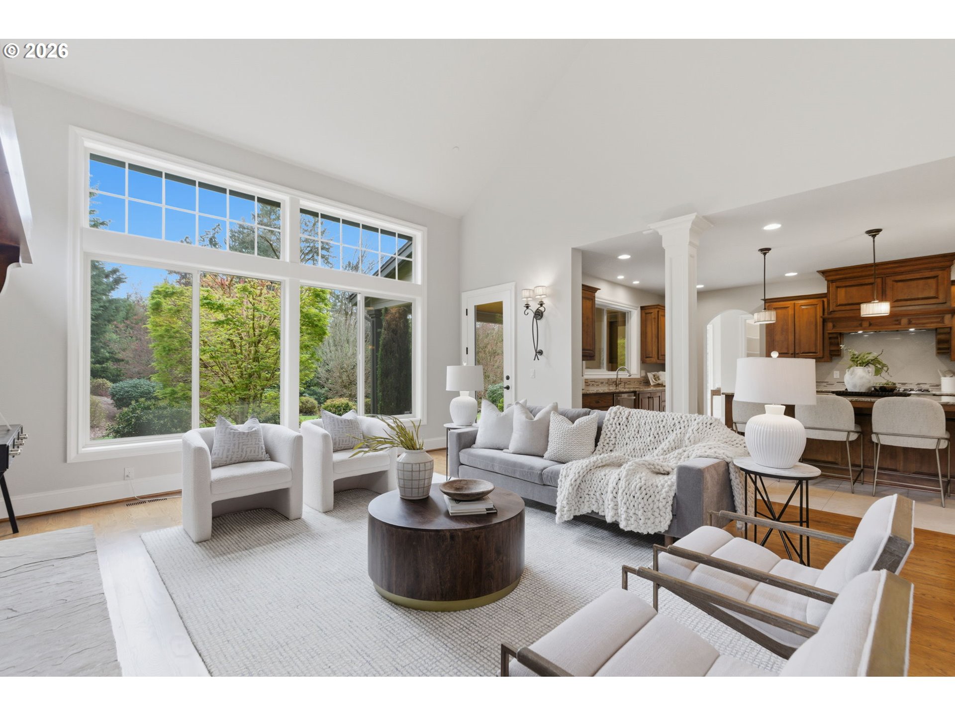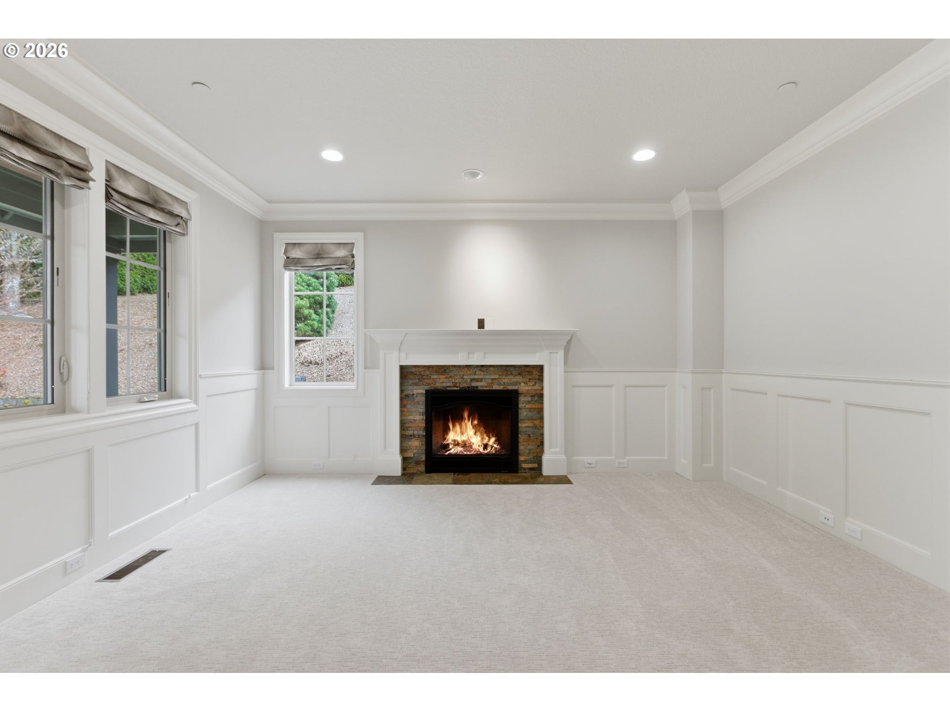 Situated on a private cul-de-sac in highly sought after Dunthorpe neighborhood, this well built home has been lovingly maintained by its original owners with new fresh interior paint and new plush carpeting. Wonderful open floorplan living with two story great room, high ceilings throughout, generous room sizes, and solid core doors. The main level features a den with a gas fireplace and wainscoting, an elegant dining room with hardwood floors, and a butler’s pantry with granite counters connecting to the kitchen. The gourmet kitchen is equipped with a Viking oven and range, center island with seating, granite countertops, tile flooring, soft-close cabinetry, a large walk-in pantry, and beautiful breakfast room filled with natural light. The covered patio is ideal for year-round entertaining and enjoying the picturesque backyard. The impressive great room showcases a 19’ vaulted ceiling, expansive windows, hardwood floors, and a stone gas fireplace with access to the patio. Upstairs, the primary suite features beautiful views over Tryon Creek State Park, a tray ceiling, bathroom with dual vanities, soaking tub, tile walk-in shower, private water closet, and a spacious walk-in closet. Three additional bedrooms with closet organizers and two full bathrooms (one on-suite), a versatile bonus room complete the upper level. Additional highlights include upgraded rear windows, a main-level laundry room with sink and storage, and a covered front porch. The fully fenced yard offers mature landscaping and privacy with level lawn. Oversized two-car garage with tandem storage. Equipped with Nest thermostats, a two-zone HVAC system and back-up generator. Ideally located across from Tryon Creek State Park with convenient access to Portland and Lake Oswego amenities all while being located within the top rated Riverdale School District. [Home Energy Score = 2. HES Report at https://rpt.greenbuildingregistry.com/hes/OR10244308]