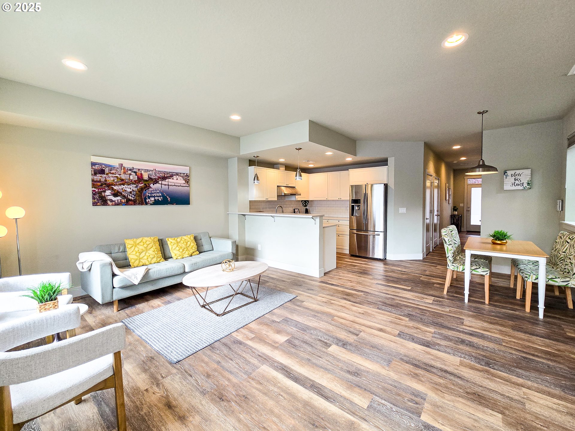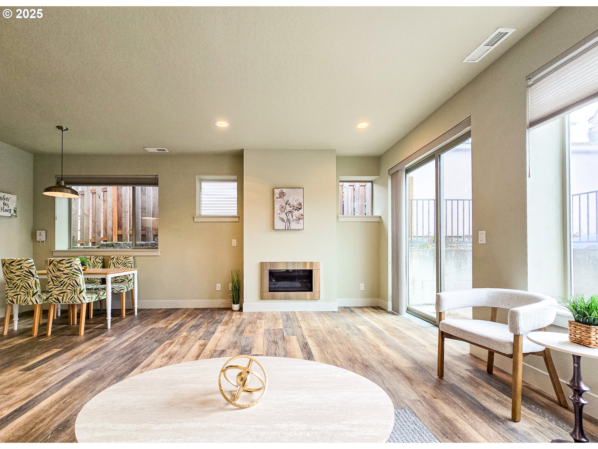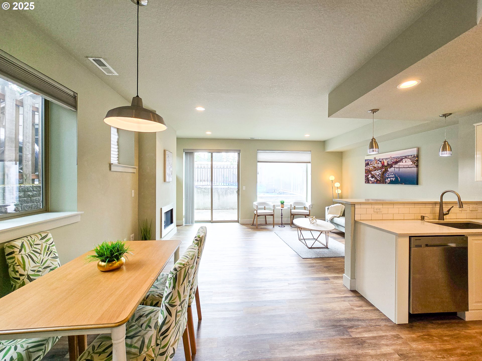 Beautiful Home with welcoming open floor plan! Plank Hardwood floor style Luxury Vinyl, Kitchen W/ Quartz counters, Stainless Steel appliances, high ceiling in Master bedroom, living rm with fireplace & slider to patio, glass garage door. Less than a block to Ventura Park. 3 more years LOW TAX from the 10-yr tax abatement program. No HOA! A MUST SEE! [Home Energy Score = 8. HES Report at https://rpt.greenbuildingregistry.com/hes/OR10158783]