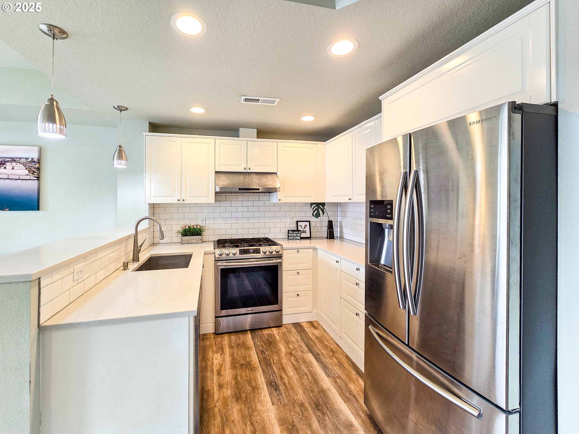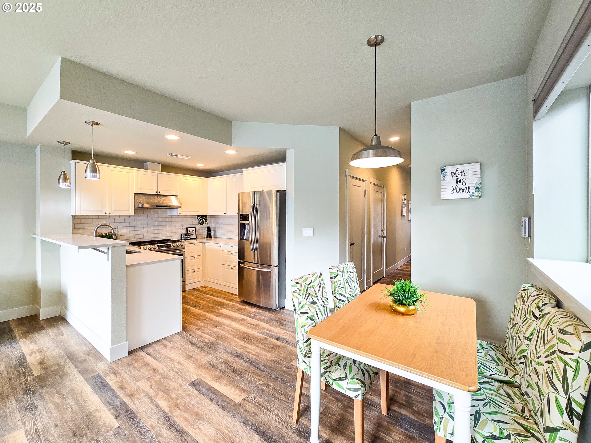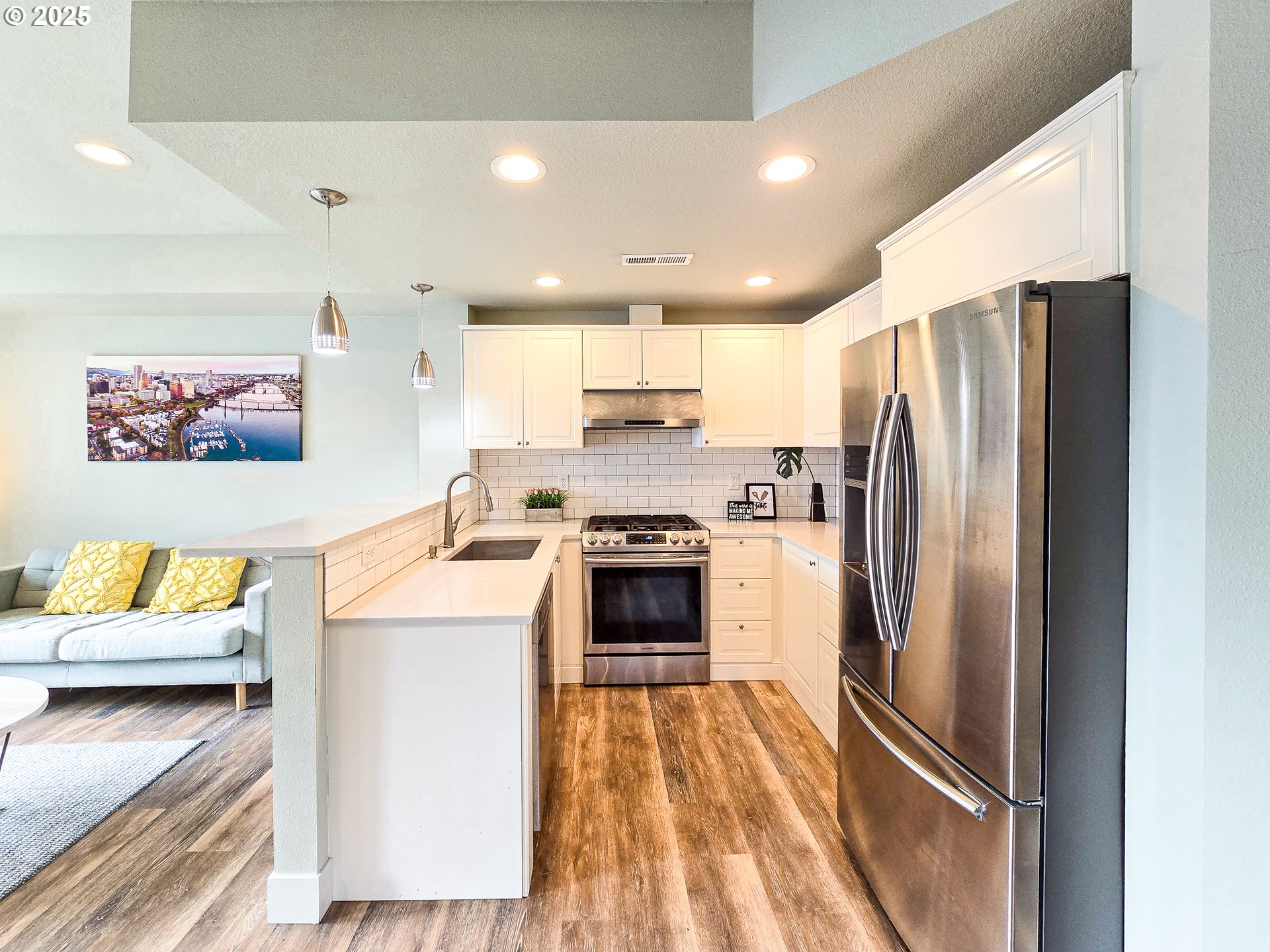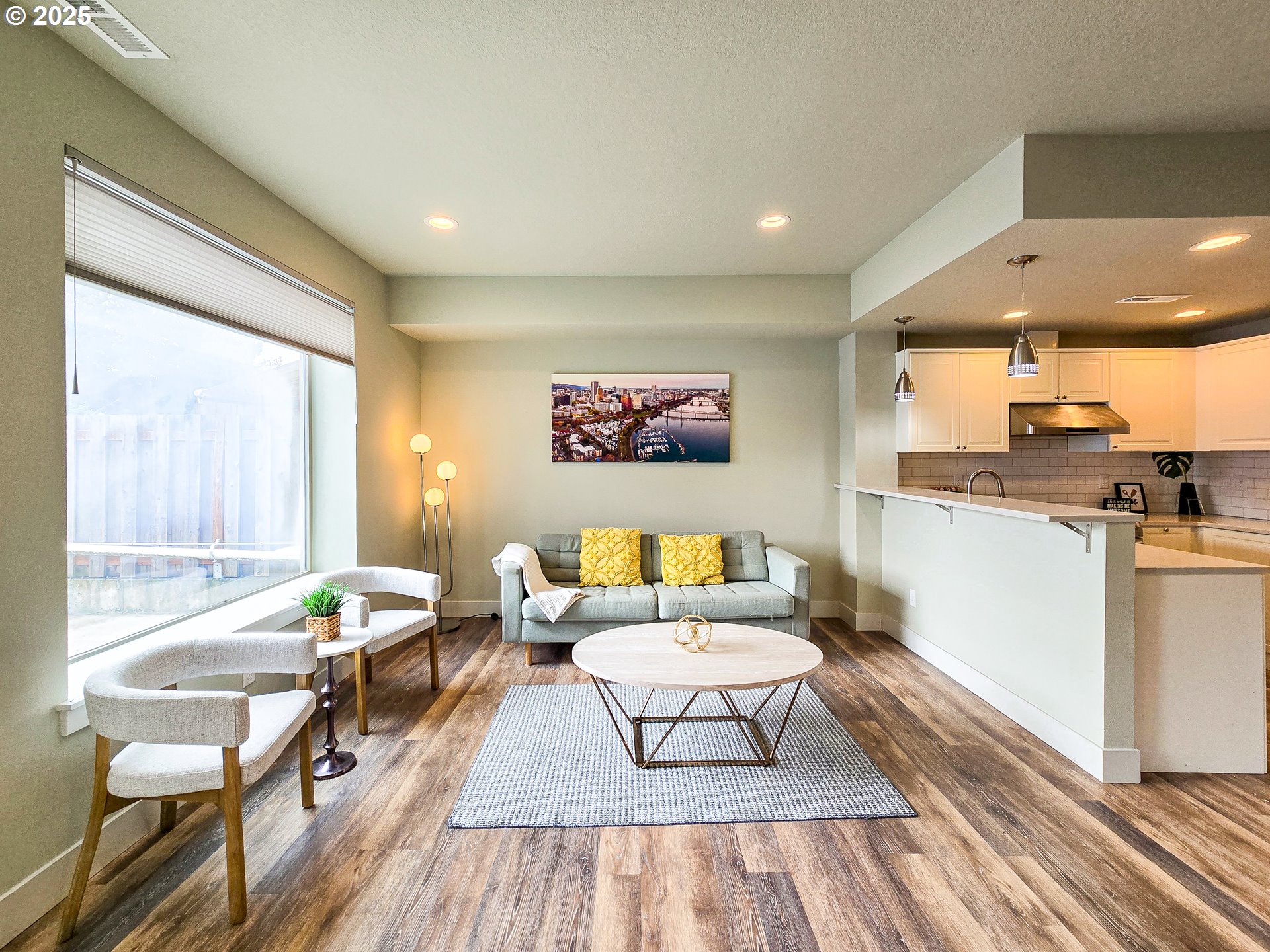 Beautiful Home with welcoming open floor plan! Plank Hardwood floor style Luxury Vinyl, Kitchen W/ Quartz counters, Stainless Steel appliances, high ceiling in Master bedroom, living rm with fireplace & slider to patio, glass garage door. Less than a block to Ventura Park. 3 more years LOW TAX from the 10-yr tax abatement program. No HOA! A MUST SEE! [Home Energy Score = 8. HES Report at https://rpt.greenbuildingregistry.com/hes/OR10158783]
