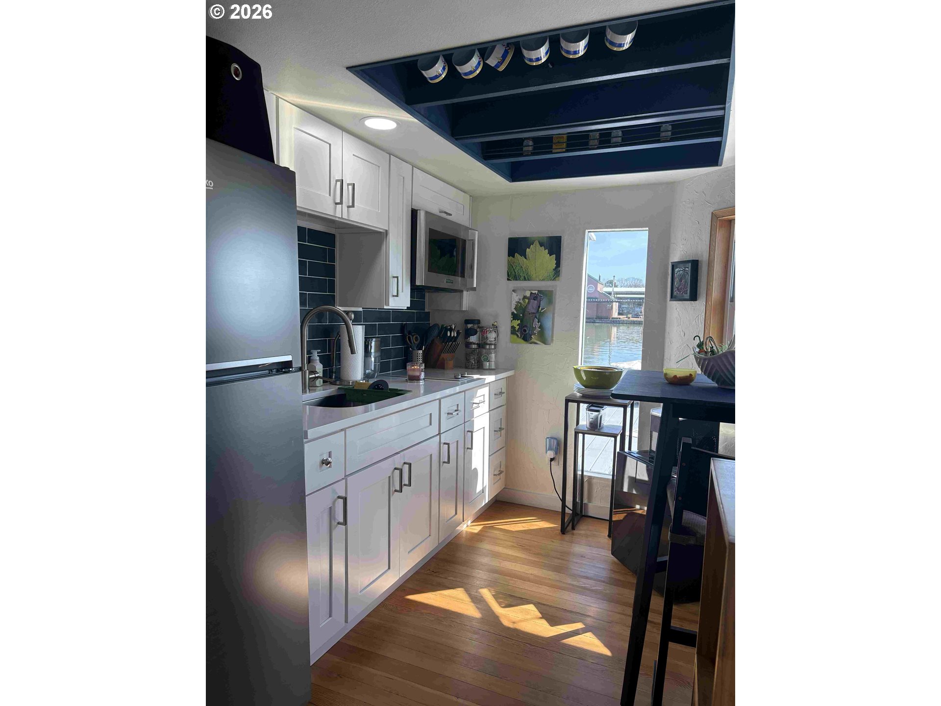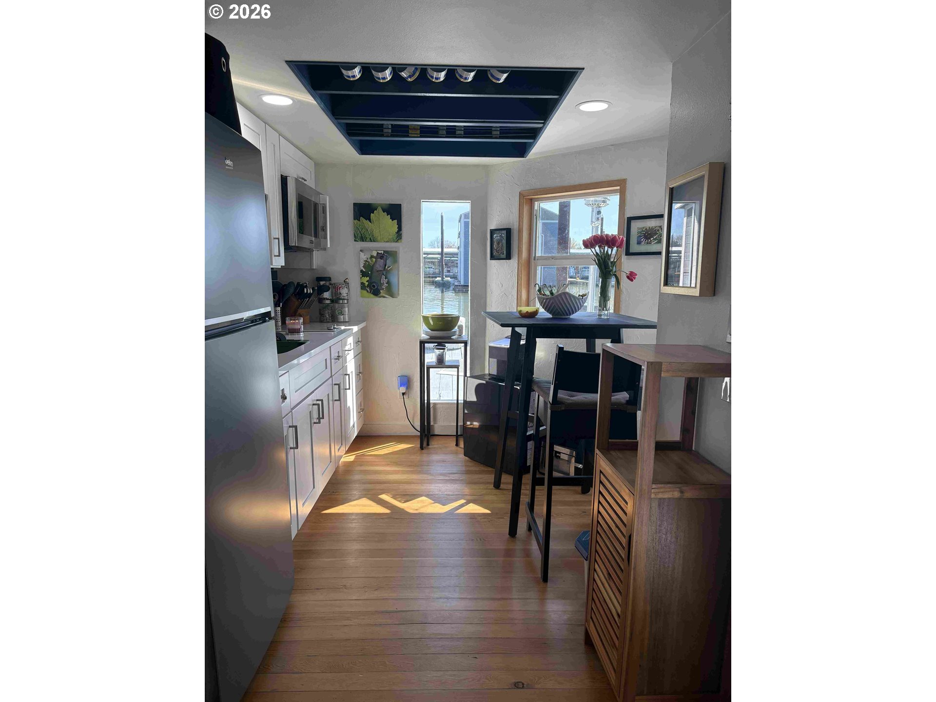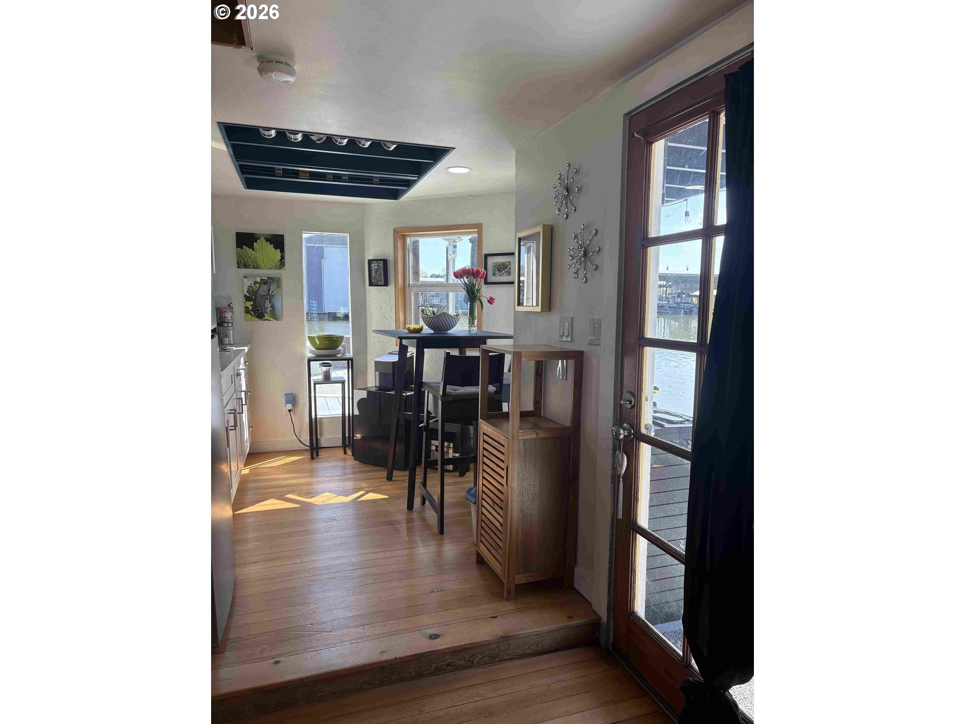Downsizing? Tiny Home Enthusiast? Lover of vintage charm and period features? This may be the floating cottage you've been looking for! The perfect weekend getaway or full-time residence with a financable float and well cared for home! This cozy cottage has period elements in tact to include: vintage hardwood fir flooring, custom stained glass accents, and French paned entry doors! The main living space is vaulted creating an open feel and tastefully updated with newer kitchen amenities, a full size bathrub in the bathroom, and loft style bedroom with a balcony! Great room living room with bay window and custom stained glass bay window with bench seat gives homage to the floating home dwellers of an era gone by, now modernized to today's standards with mini split heating and cooling, a tankless gas water heater, and modern kitchen amenities. Enjoy life on the river at an affordable entry level price and with a solid float having steel stringers and an additional swim float for outdoor enjoyment which is where you want to be! There is sooo much to love about this cute little cottage, and the perfect condo alternative if you'd rather be in your kayak or paddleboard after work as opposed to within the concrete jungle! And if the slip rent / location is not your cup of tea, we have an owned slip where the home could go just down river and listed at $89k with $480mo dues! Options abound with this solid home filled with charm and character for whatever your river life vision may be! Speaking as an owner of 2 floaters over 25 years... there is no better place to be in the PNW... or elsewhere for that matter!