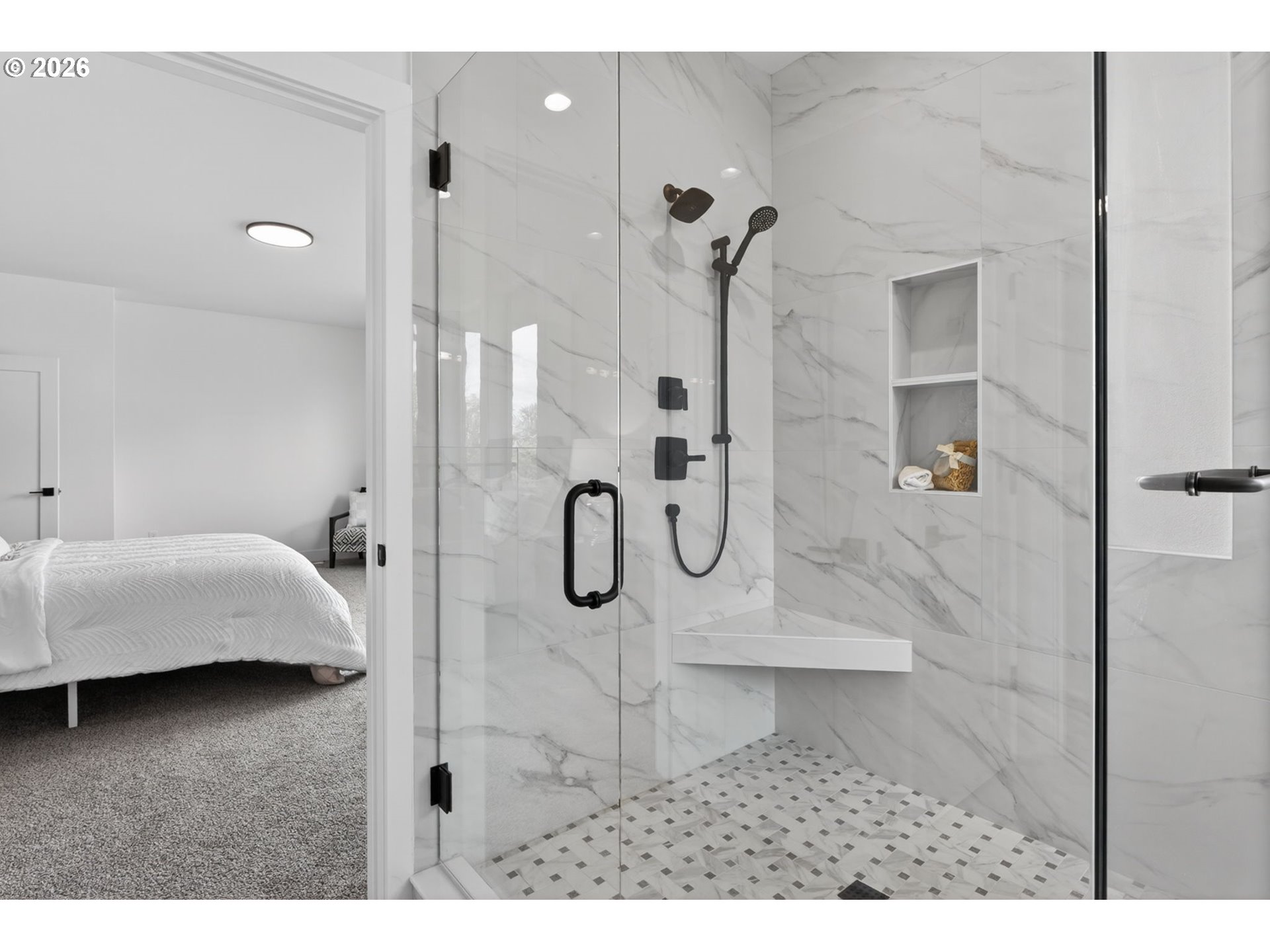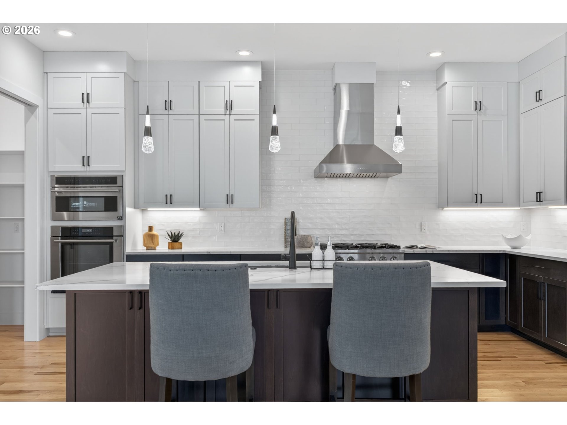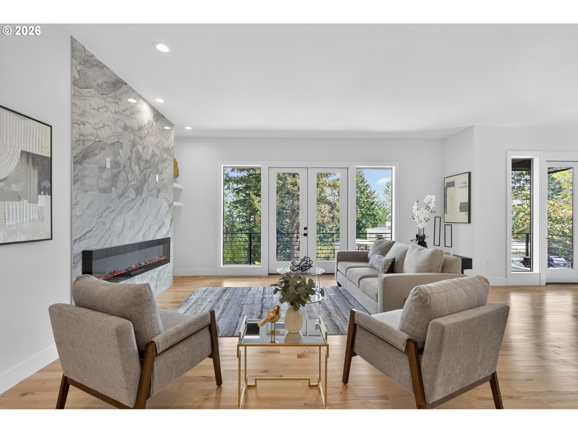 Modern luxury meets incredible views in this Lake Oswego Mt. Park new construction home! Overlooking Mt. Hood and the valley and designed with intention and style, this home features hardwood floors, sleek black vinyl windows, and high-end finishes throughout—from statement lighting and custom railings to horizontal grain cabinetry and floor to ceiling tiling. The gourmet kitchen is the heart of the home, complete with quartz countertops, a large island with an eat bar, European-style stainless steel appliances, wine fridge, walk-in pantry, 3D tile backsplash and soft close cabinets and drawers. Built-in appliances! The great room centers around a dramatic floor-to-ceiling tiled fireplace and french doors leading to the outdoors. Take in the views year-round from the expansive covered deck or unwind on the covered patio, fully equipped for entertaining with a gas BBQ hookup. Retreat to the primary suite with a spa-inspired bathroom featuring a frameless glass shower, soaking tub, and walk-in closet. Other notable features: tankless water heater and oversized 3-car garage with EV charging. HOA provides access to a premier community center offering an aquatic center, fitness facilities and classes, basketball and tennis courts, social spaces, walking trails, neighborhood activities and seasonal events. This home offers both lifestyle and design-grab it before it's gone!