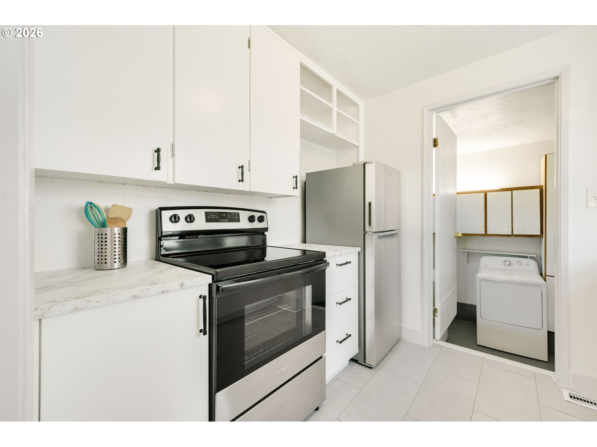 Quietly set on a private cul-de-sac loop, this beautifully crafted, daylight bungalow is the perfect blend of timeless character and thoughtful updates. From the moment you arrive, the tastefully landscaped, nearly quarter-acre fully fenced, buildable lot sets the tone—peaceful, private, and ideal for everyday living or entertaining. In spring, the yard awakens as rhododendrons bloom in rich, vibrant color and the Japanese maple unfurls its leaves, creating a serene and storybook setting. Inside, you’ll find all the craftsmanship and charm you’d expect in a classic bungalow: original hardwood floors, built-ins, and graceful curved archways that give the home its undeniable personality. The newly remodeled kitchen is more spacious than photos suggest and flows seamlessly into the dining area before opening into the inviting living space. A functional mudroom/laundry area connects the kitchen to the backyard, making hosting gatherings or managing daily life a breeze. Down the hall are two well-sized bedrooms and an elevated, remodeled bathroom featuring abundant built-in storage and closet space. Upstairs, the expansive, finished, loft-style sitting area offers flexible use—ideal for a workout space, playroom, additional sleeping area, or creative retreat. Outside, the fully fenced yard is ready for summer nights and gatherings at the picnic table under a red cedar, complete with a horseshoe pit, outdoor firepit area, tool shed, and exterior access. An attached garage offers easy, direct access into the home, making coming and going effortless. Additional updates show pride of ownership, including all windows being reframed, new interior and exterior paint, new fencing and landscaping, new drywall in garage, and brand new stainless-steel appliances. Homes with this level of character, warmth, and personality are truly rare. Come experience her charm up close—you’ll fall in love the moment you walk through the door. [Home Energy Score = 2. HES Report at https://rpt.greenbuildingregistry.com/hes/OR10128539]