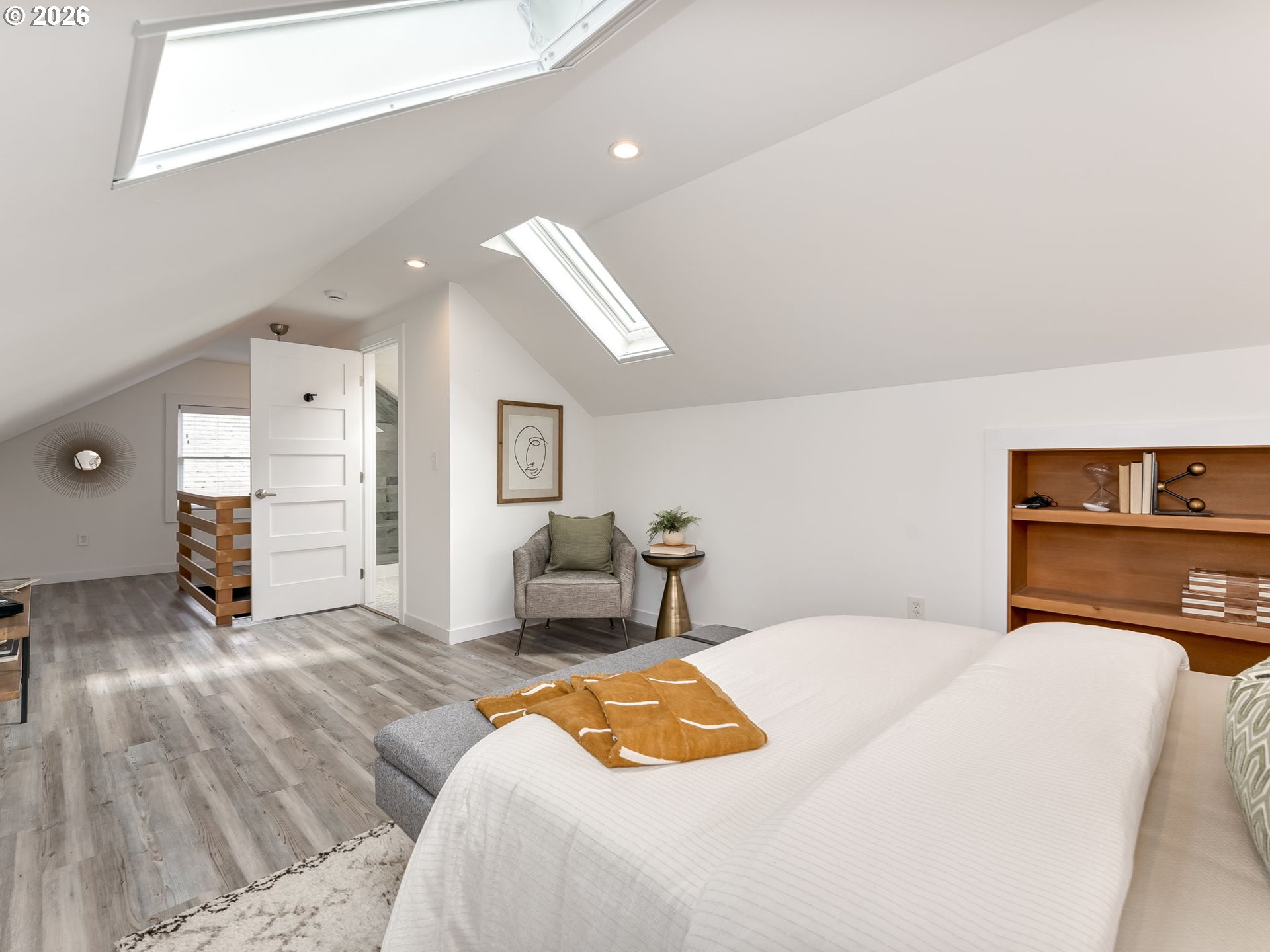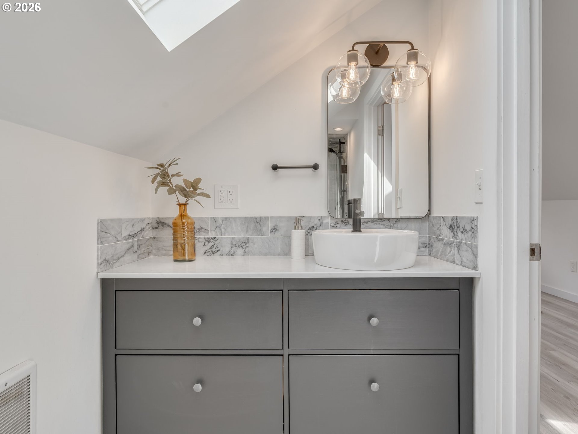 Tucked into the heart of Sabin, this 1924 bungalow blends classic charm with thoughtful updates and a bright, easy flow. The main level features warm hardwood floors, a light-filled living area, and an updated kitchen with stainless steel appliances, gas range, quartz counters, and a sunny dining nook that connects easily to everyday living. Upstairs, a finished upper level creates a private primary suite with skylights, vaulted ceilings, and a modern ensuite bath, while the full basement offers excellent storage and flexibility. Out back, enjoy a fully fenced yard with a covered patio and room to relax, garden, or entertain. And yes, there’s even a chicken coop, ready for your urban homestead era. Behind the scenes, major system improvements include a main sewer line replacement, updated plumbing to key fixtures, and a new water heater. Located just blocks from Alberta, Fremont, and neighborhood parks, you’re close to some of NE Portland’s best shops, restaurants, and community spots, and the notably low property taxes are a rare bonus for the neighborhood.