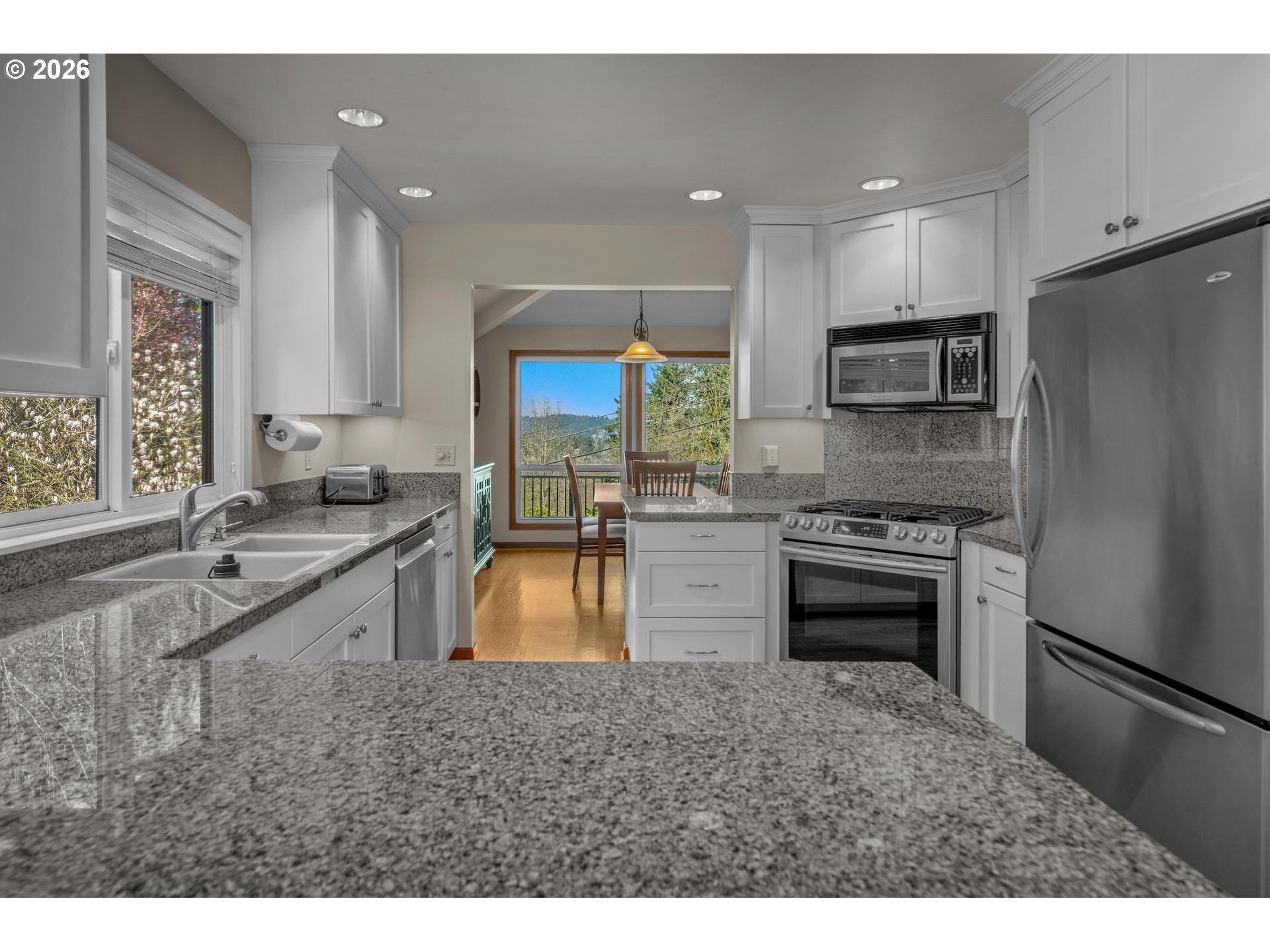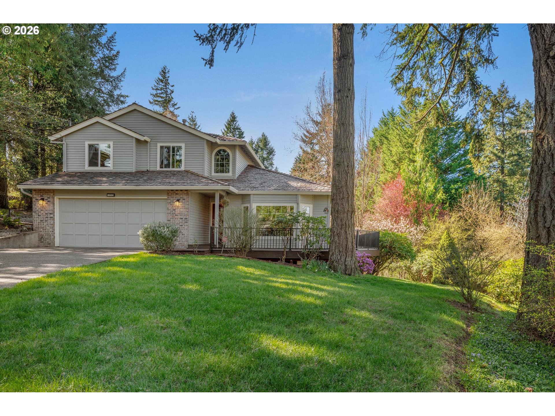Beautiful traditional home tucked into the sought-after Arnold Creek neighborhood, offering a private setting and a lovely, serene outlook. Thoughtfully designed with an easy, flowing floor plan, this home is ideal for both everyday living and entertaining.Gleaming hardwood floors lead to light-filled living spaces, including a family room with bay windows and vaulted ceilings, and French doors that create seamless connection throughout. The dining room and family room both capture the pretty territorial views and dining room opens to the recent replaced wraparound deck, perfect for enjoying the peaceful surroundings. The kitchen features stainless steel appliances and connects effortlessly to the main living areas. Upstairs, the spacious primary suite offers a relaxing retreat with a walk-in tiled shower, marble-topped vanity, and double closets. A special opportunity in a quiet, established neighborhood with timeless appeal. [Home Energy Score = 5. HES Report at https://rpt.greenbuildingregistry.com/hes/OR10246209]