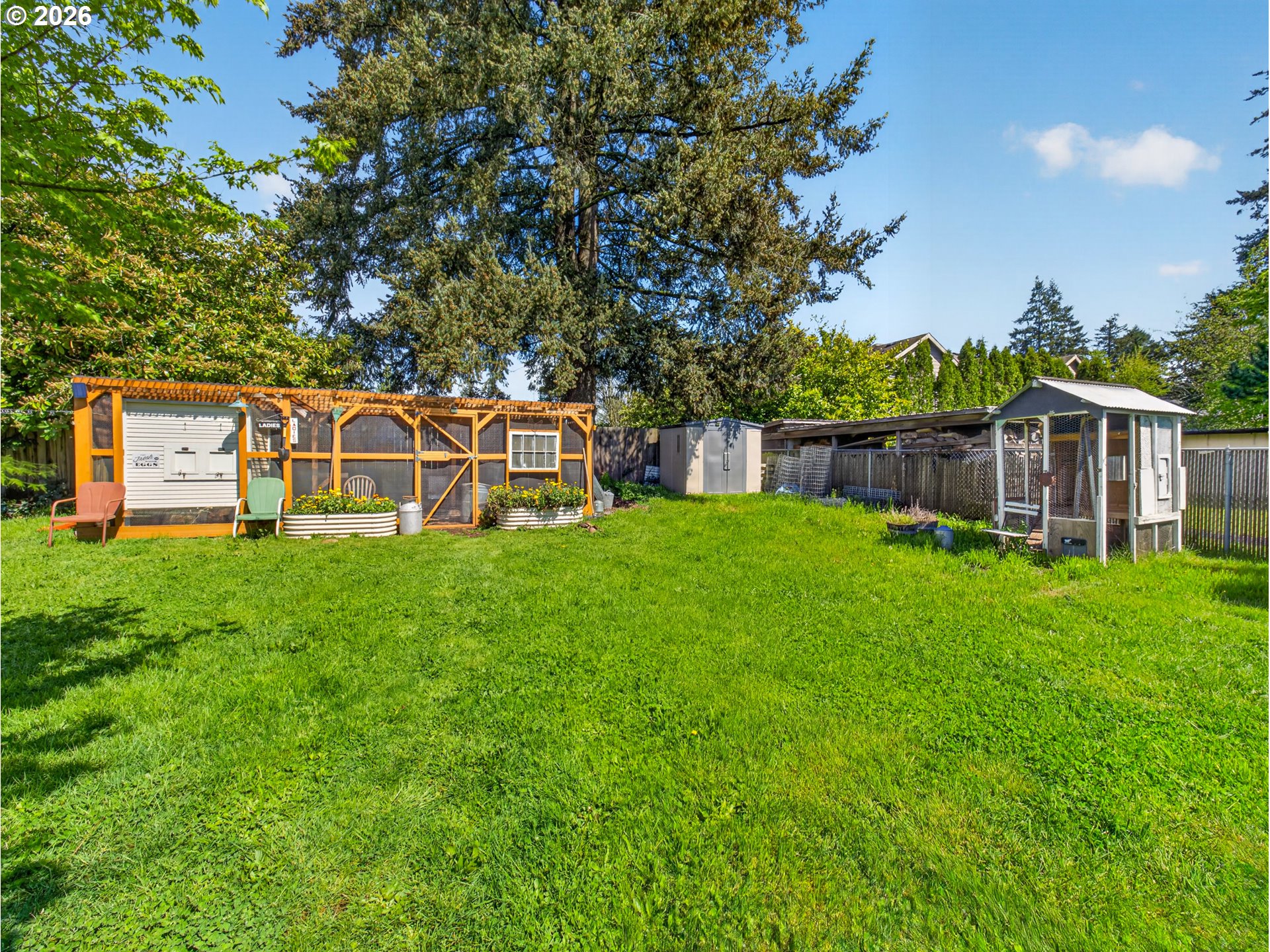 Welcome home to this charming bungalow set on a spacious 1/3 acre lot. Full of character and warmth, this home offers a great blend of comfort, updates, and usable outdoor space. Major updates completed approximately 9 years ago include the roof, furnace, windows, appliances, and tile flooring in the kitchen, bathrooms, and laundry. Stay comfortable year round with a newer AC system already in place. The property really shines outside with a large chicken coop, multiple tool sheds, and established garden beds, all included with the home. Situated on a quiet dead-end street! Whether you are looking to garden, homestead, or just enjoy the extra space, this yard is ready for it. The garage was previously converted, offering additional flexible living space to fit your needs. This property is full of charm and opportunity and is ready for its next owner. Open House Saturday, April 18th from 11AM to 1PM.