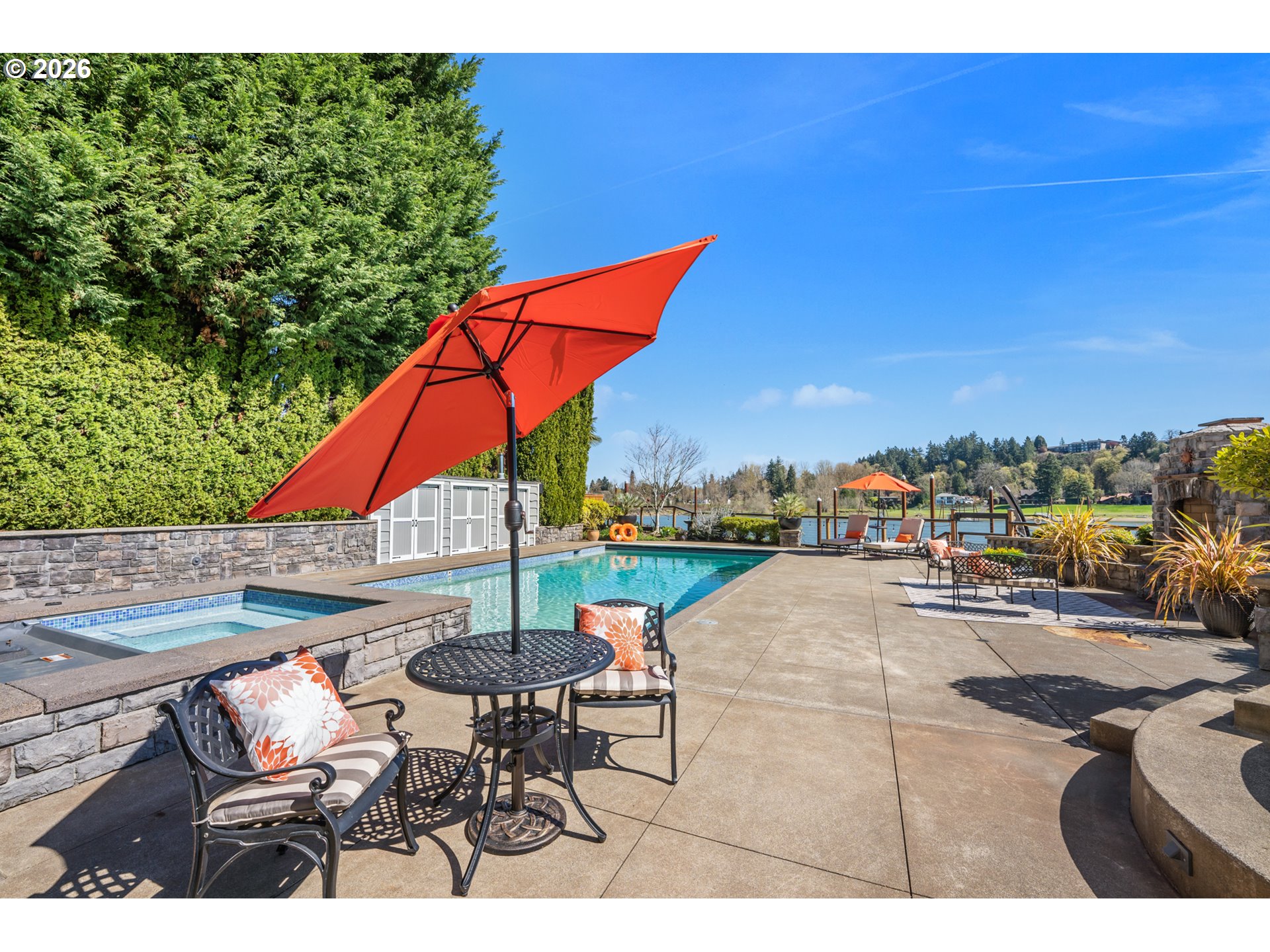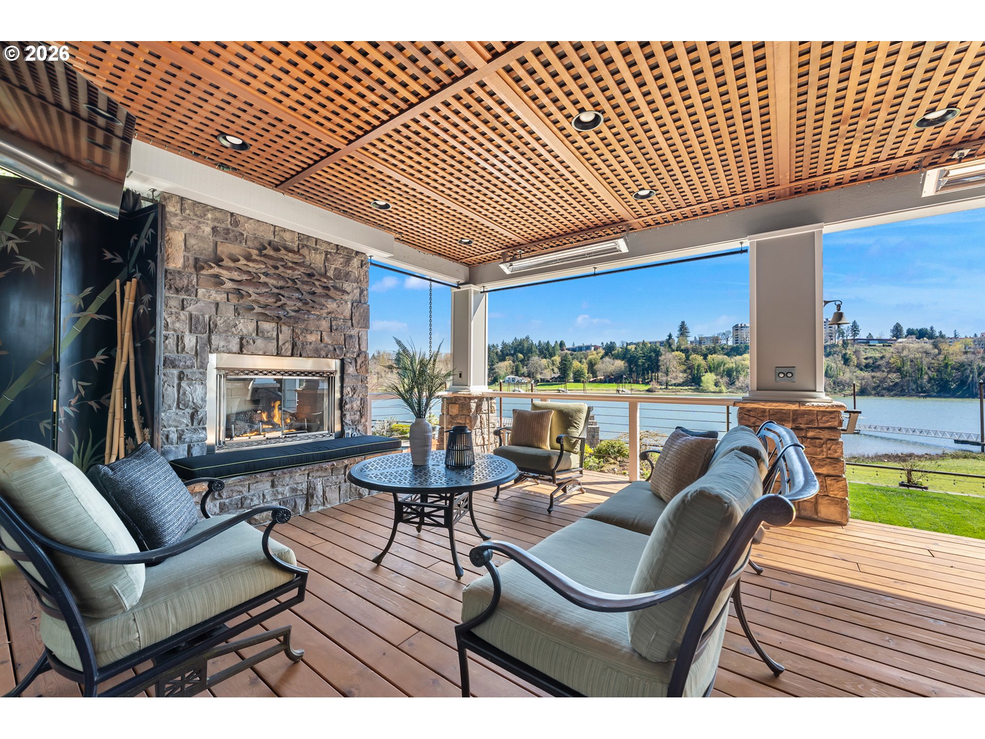 Riverfront estate blending Northwest Craftsman architecture with thoughtful modern updates. Originally built in 1913 and extensively reimagined in 2005-2006, this home is set on over an acre along one of Lake Oswego’s most sought-after stretches of riverfront. Rich woodwork, custom built-ins, high ceilings, and refinished hardwoods define the interiors. The kitchen opens to the family room and a window-wrapped sun room with vaulted bamboo ceilings and panoramic river views. Features include a butcher-block island, 8-seat eating bar, and a 6-burner Wolf range. The updated butler’s pantry offers a secondary suite of appliances to enhance everyday function and entertaining. Formal living and dining, office with exterior access, and main-level guest suite. The primary suite offers a spa-like bath clad in Ann Sacks tile, complete with a fireplace-accented soaking tub, oversized walk-in shower, and recently renovated closet. The lower level is designed for entertaining, featuring a wet bar and seamless access to the backyard, pool, and riverfront. An upper-level bonus room is complete with a built-in rock climbing wall and interactive game elements. Outdoor features include an oversized dock with 2 boat lifts and 2 jet ski docks, a thoughtfully designed pool and spa, and two gas fireplaces. Gated entry, mature landscaping, and private setting in the Riverdale School District. Significant improvements completed in recent years include transformative exterior paint, a refreshed main-level statement fireplace and eating bar, remodeled butler’s pantry with integrated dual laundry, custom primary closet, and an elevated gangway system.