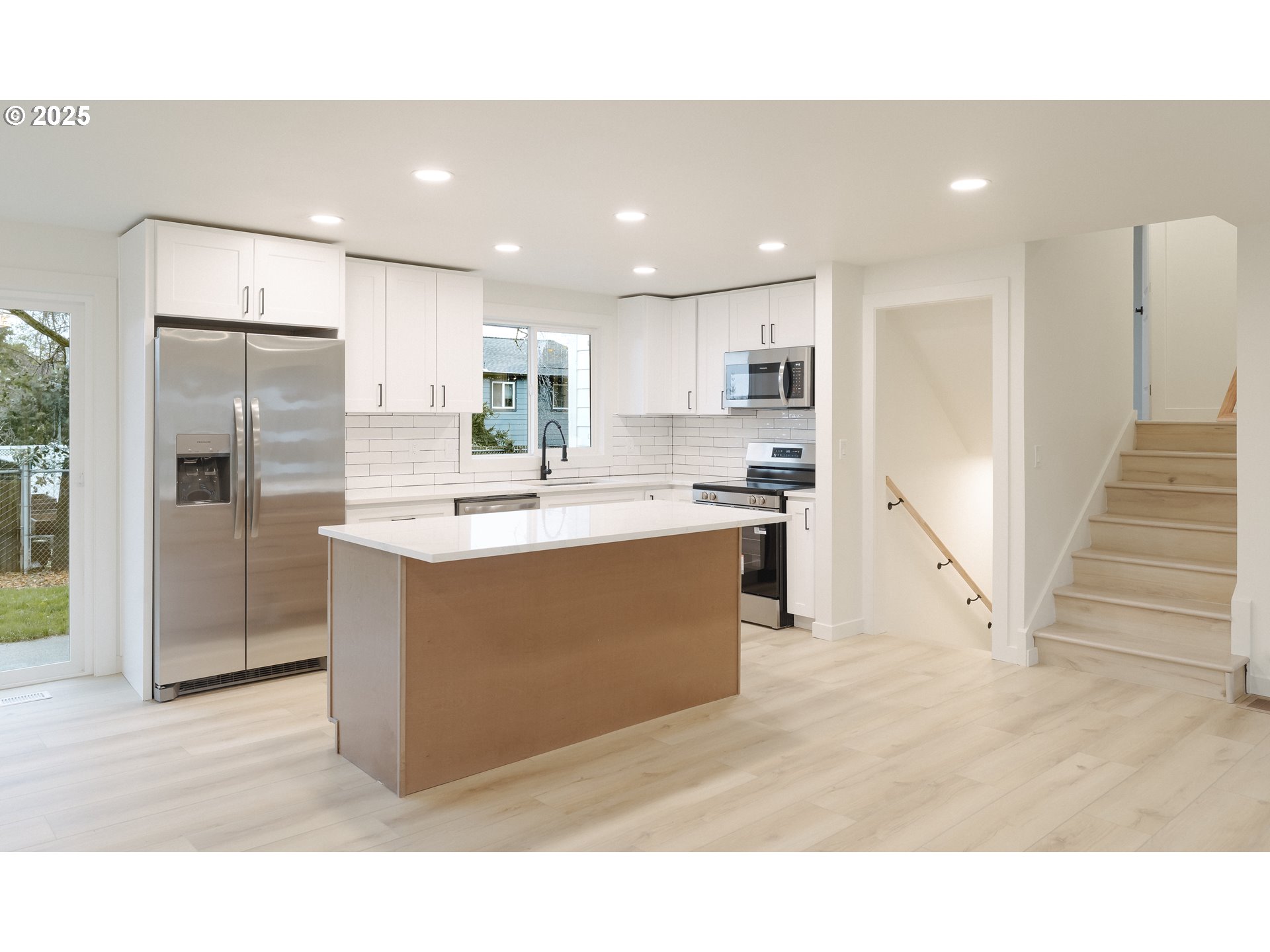 Welcome to an extraordinary Parkrose home, completely reimagined from the studs. This stunning, fully remodeled tri-level property is the definition of new modern living, offering 4 beds, 3 full baths, plus a bonus for home office or craft room. It provides flexibility and function in a prime quiet location.As you step inside, the open-concept living, dining, and kitchen areas immediately draw you in, illuminated by natural light and anchored by a sleek electric fireplace—perfect for cozy evenings. The main level provides a seamless flow for entertaining and daily life, all featuring brand-new appliances, including a new fridge and oven.Journey upstairs to discover the private quarters, featuring a primary suite and two additional bright, airy bedrooms, sharing a beautifully appointed full bathroom.The lower level reveals an exceptional, fully-finished bonus room with its own separate entrance. This versatile space includes two bedrooms, a full bathroom, and a walk-in closet, offering endless possibilities as a mother-in-law suite, rental potential, or a private guest retreat.Step outside to discover your own expansive haven. The large, fenced lot is a gardener's dream, providing ample space for outdoor entertaining, play, and cultivating your own oasis. Plus, rare dedicated RV parking ensures all your vehicles have a home. Major systems are all new, from the roof down. This house boasts significant upgrades, including a new roof, new siding, new double-pane windows, and a new gas water heater. This isn't just a house; it's a truly turn-key opportunity for a dynamic lifestyle where peace of mind comes standard. Don't miss the chance to make this exceptionally detailed remodel your new beginning. [Home Energy Score = 6. HES Report at https://rpt.greenbuildingregistry.com/hes/OR10239689]