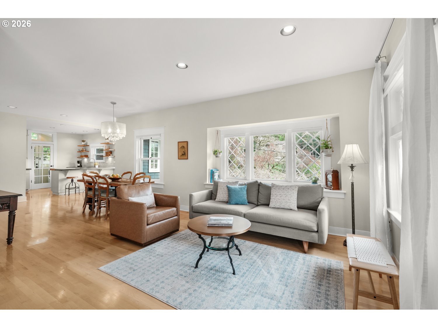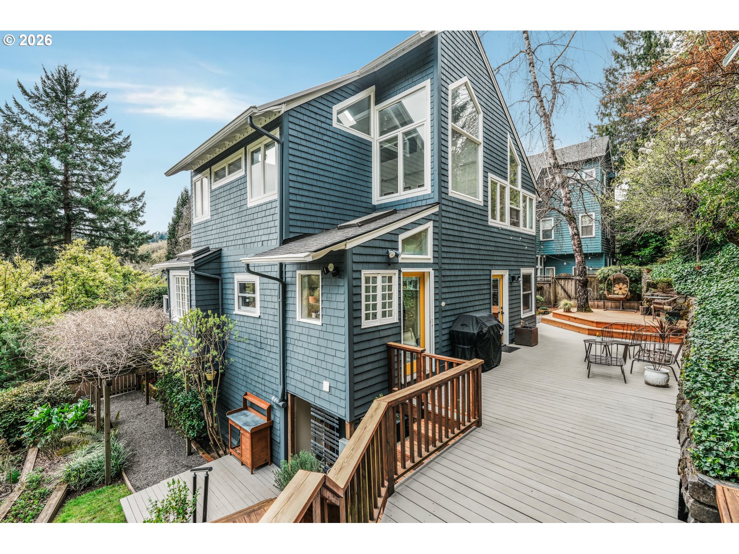 A rare hillside retreat in Portland’s SW Hills, this 4-bed 3-bath 1909 Craftsman home blends timeless character from original historic features with thoughtful modern updates in a private, vineyard-like setting. Close to downtown yet quietly removed, this home offers both convenience and a true sense of retreat. Inside, hardwood floors, abundant natural light, and a gas fireplace create warm, inviting living spaces. The kitchen combines function and charm with built-in elements, while skylights on the upper level enhance the home’s bright, expansive feel. Designed for comfortable living and relaxed hosting, the layout welcomes guests with ease. The flexible lower level offers strong ADU potential with space for guests, creative work, or extended living, and additionally includes a wine or root cellar along with a separate studio and storage areas. Major system updates and interior and exterior improvements have been completed, offering a move-in ready home with lasting peace of mind. Outdoors, the surrounding greenery and established landscape with fruit trees create a setting that feels tucked away without sacrificing access to the city. A cedar sauna and hot tub add a spa-like element to enjoy at home. Set alongside Governors Park and near the Marquam Trail, the location provides immediate access to green space and nearby hiking while remaining close to Portland’s urban core.