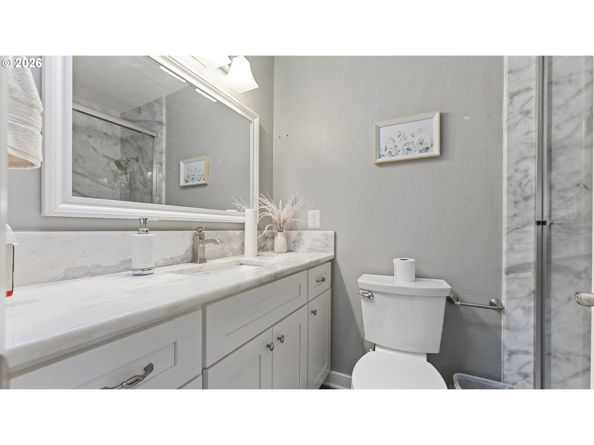 Updated One-Level Living in Gresham. Enjoy the ease and comfort of single-level living in this tastefully refreshed Gresham home. Featuring 3 spacious bedrooms and 2 fully updated bathrooms, this well-appointed residence offers a private primary suite complete with its own ensuite for added relaxation. A full remodel in 2018 brought extensive updates, featuring new windows, siding, roofing, concrete, flooring, and upgraded core systems including the furnace, air conditioning, and water heater. The beautifully upgraded kitchen showcases stainless steel appliances, generous cabinetry, ample prep space, and a modern tile backsplash—perfect for daily living and hosting alike. The light-filled family room centers around a warm gas fireplace, creating an inviting space for cozy Pacific Northwest evenings. Situated on a large corner lot, the property features mature landscaping, a designated garden area, RV parking, and a fully fenced yard. Ideally located near Columbia View Park, schools, and major freeways, offering convenient access to both outdoor recreation and city amenities. This well-cared-for home is move-in ready and awaiting its next chapter—schedule your private showing today.