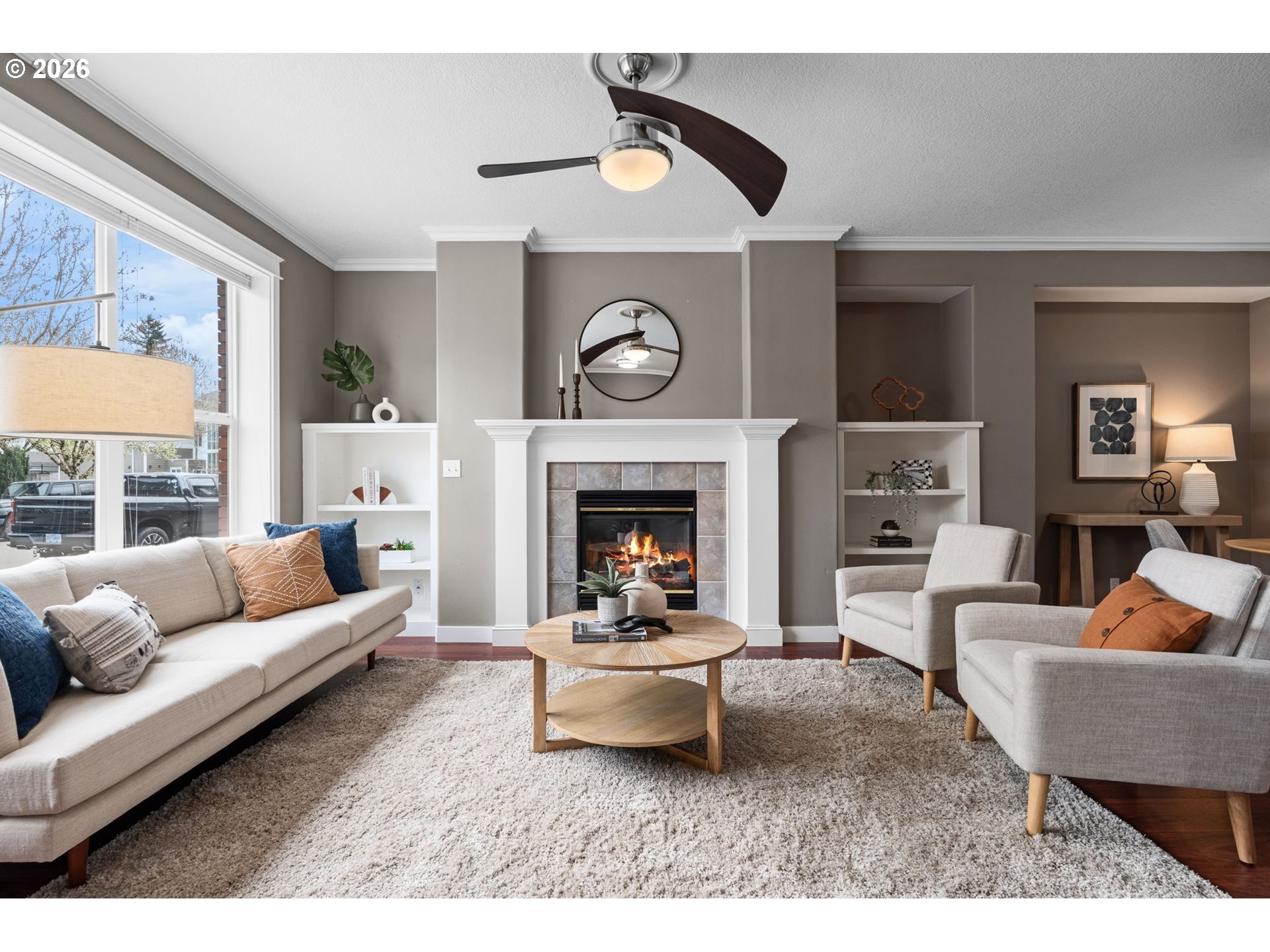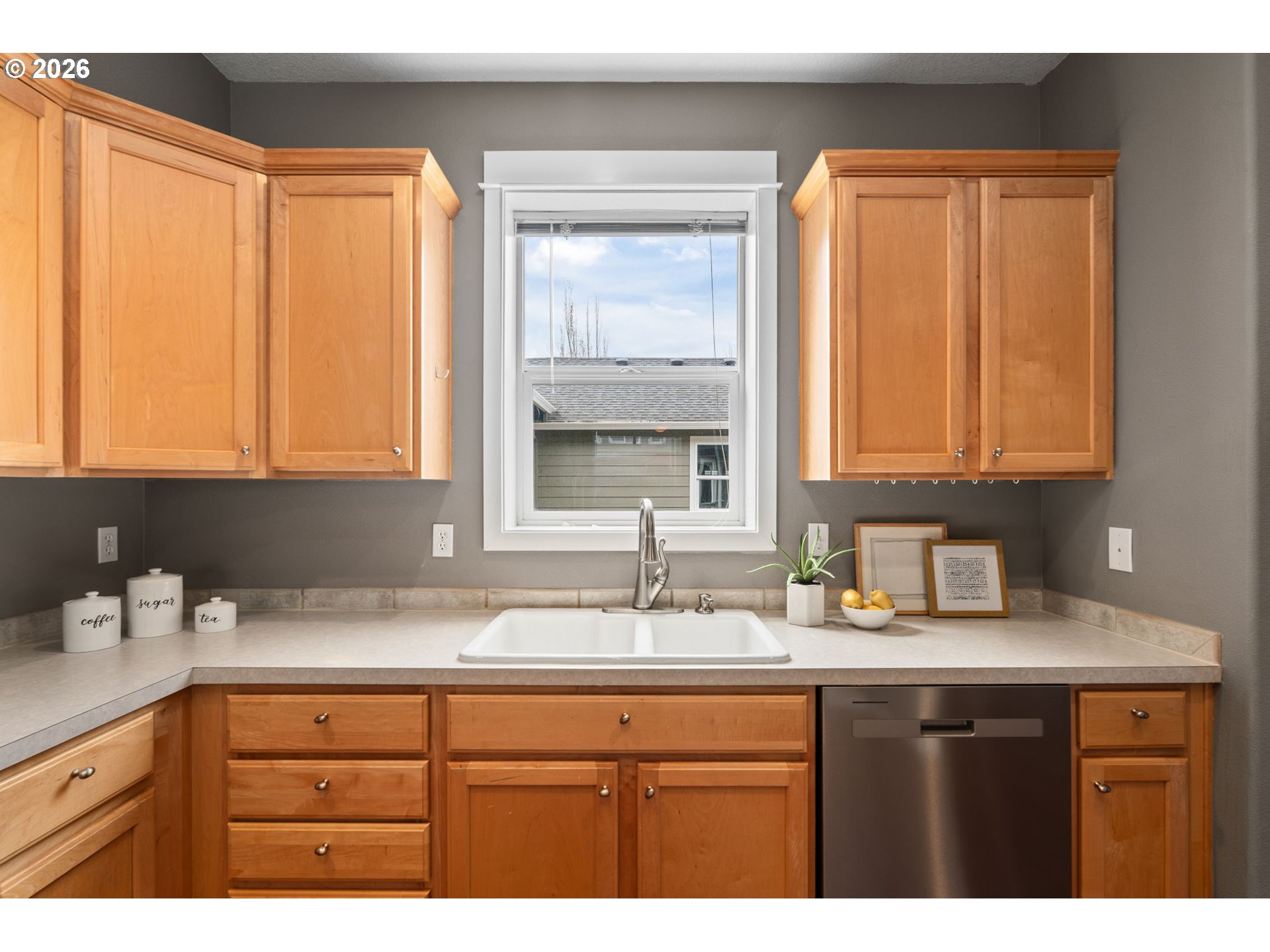 This Fairview Village townhouse shines with the owner’s care and attention to detail. Two bright primary suites upstairs offer privacy and comfort. High ceilings and natural light highlight the updated kitchen with stainless steel appliances, living room with gas fireplace, and spacious dining area perfect for entertaining. Enjoy low-maintenance living with a hardscaped backyard, detached two-car garage for projects or parking, and easy access to Salish Ponds and walking trails. Stylish, move-in ready, and designed for modern living, this home is sure to please!