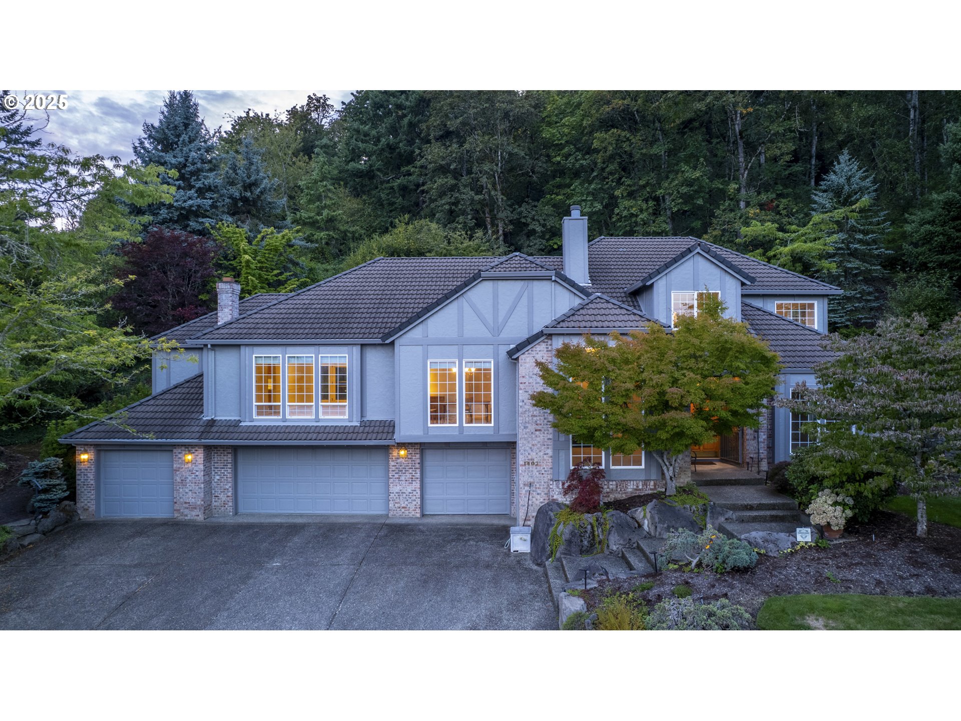 Perched near the top of Gresham Butte with sweeping western views of Mount Hood, this Tudor-inspired estate blends timeless elegance with meticulous updates. Set on over half an acre of beautifully terraced grounds, the home boasts lush landscaping with irrigation, a newer deck for entertaining, and a four-car garage. Inside, the grand kitchen with dual islands anchors the expansive floorplan, offering abundant space for gatherings. Thoughtful upgrades ensure peace of mind and modern comfort: HVAC (2021), hot water heater, exterior paint (2024), new blinds, garage door, ductwork cleaning (2023), deck (2019), and irrigation pump (2025). With a tile roof, roof inspection in 2022, and every system maintained to exacting standards, this residence showcases rare quality. In a distinguished neighborhood, it delivers privacy, scale, and craftsmanship seldom found.