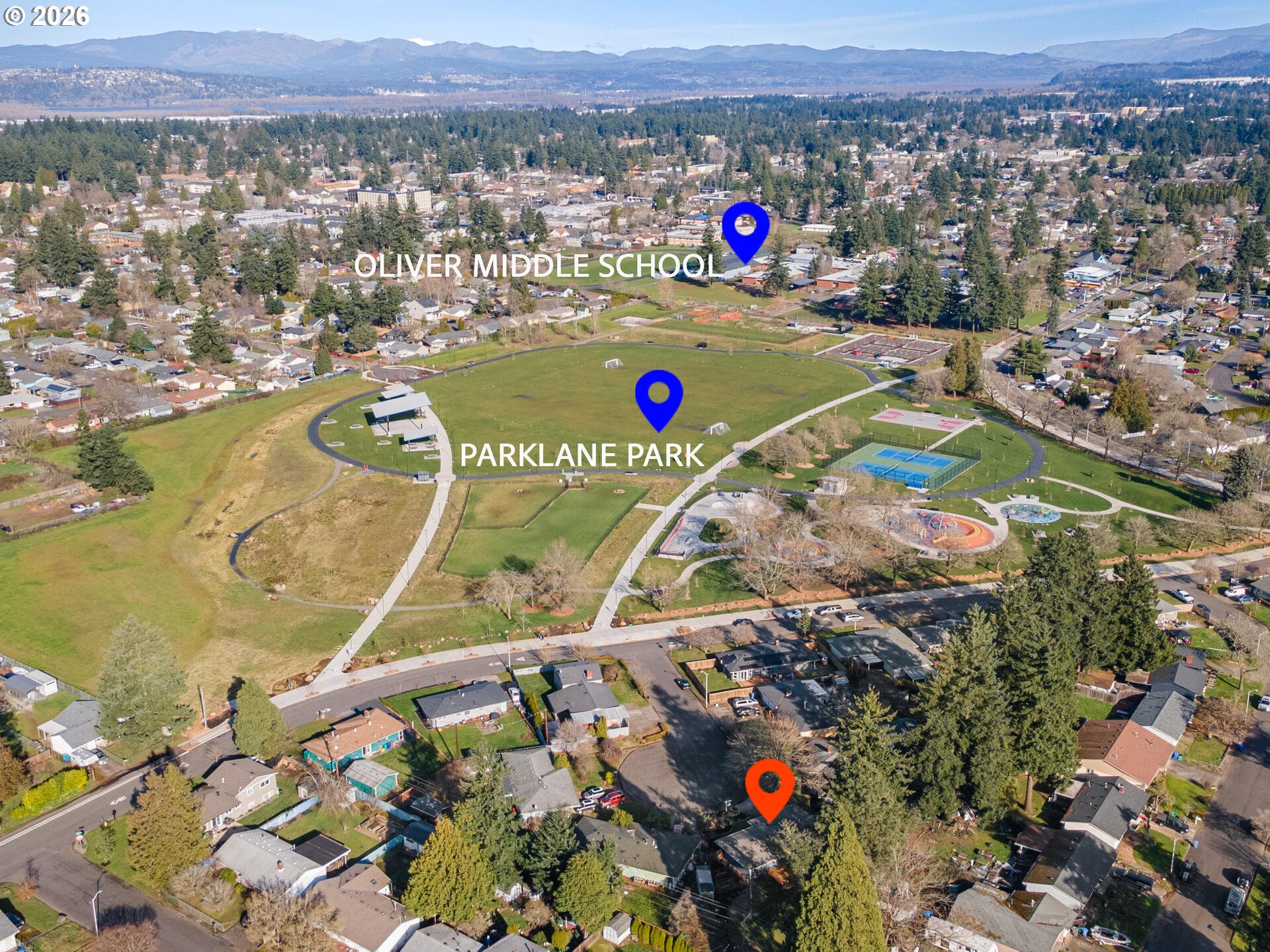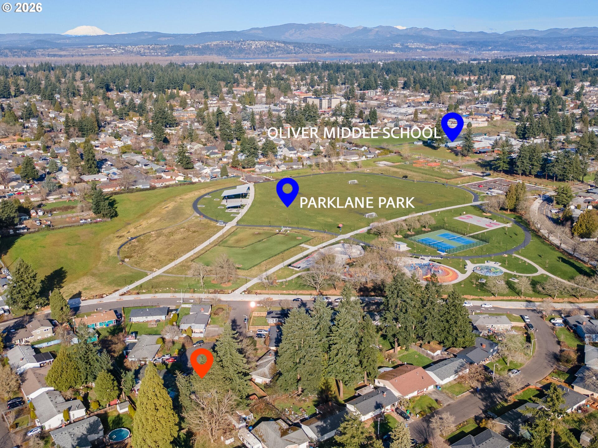 Exceptional location just half a block from Parklane Park, offering mountain views, paths, courts, dog park, fields, and play structures. Powell Butte nature trails are only minutes away. Classic 1960s design, featuring oak floors. Fenced, private 12,000 SqFt yard organically maintained by a master gardener with established flowers, berries, and fruit trees—ready for Gold Certified Native Habitat designation. New 2025 roof with Certified Pro installation and transferable warranty, plus new gutters installed in 2025. A rare blend of privacy, gardening, and an active outdoor lifestyle.This property is located in an opportunity zone! For more information go to Oregon.gov and search opportunity zones. Buyer to do their own due diligence. [Home Energy Score = 6. HES Report at https://rpt.greenbuildingregistry.com/hes/OR10221697]