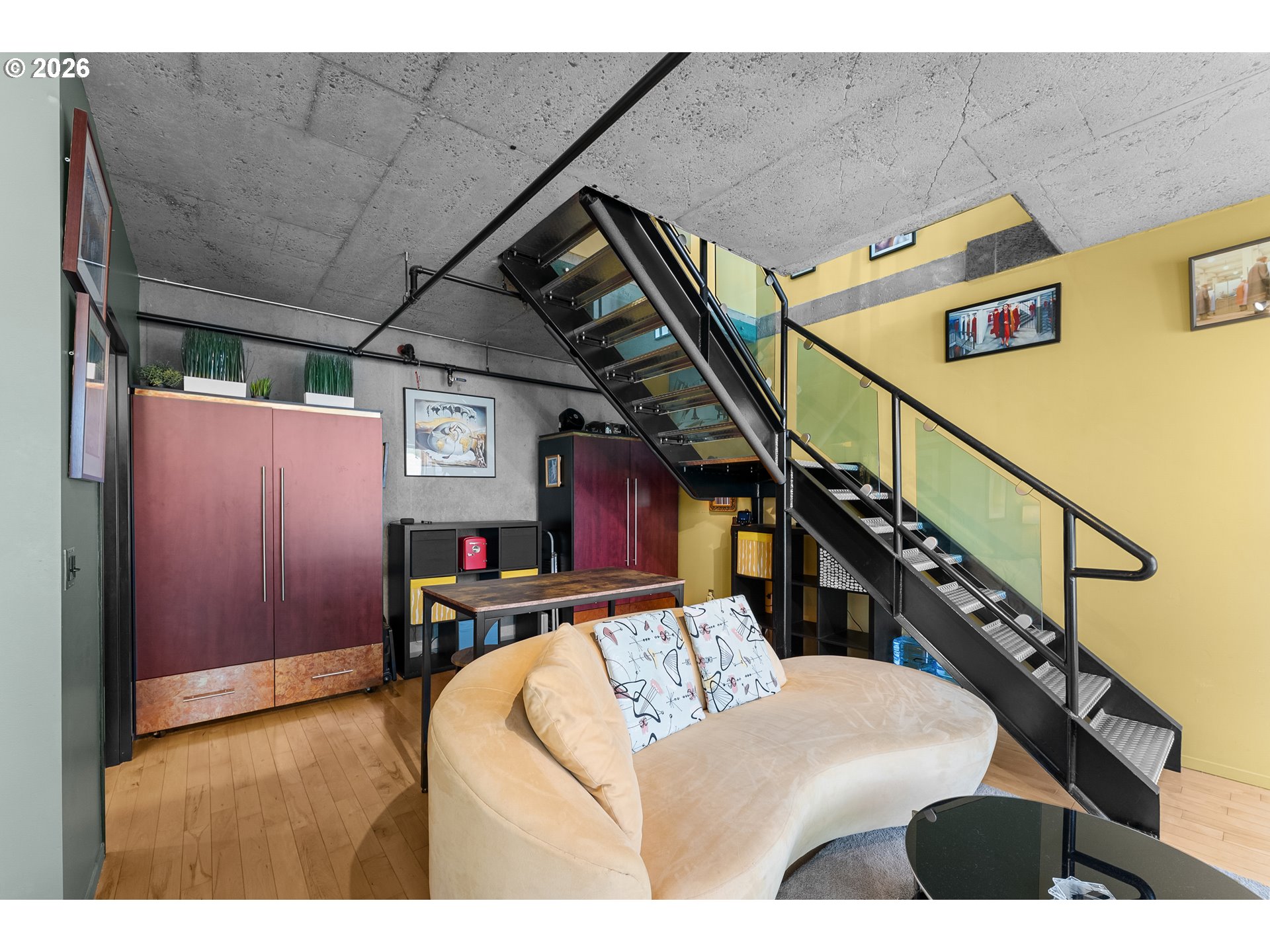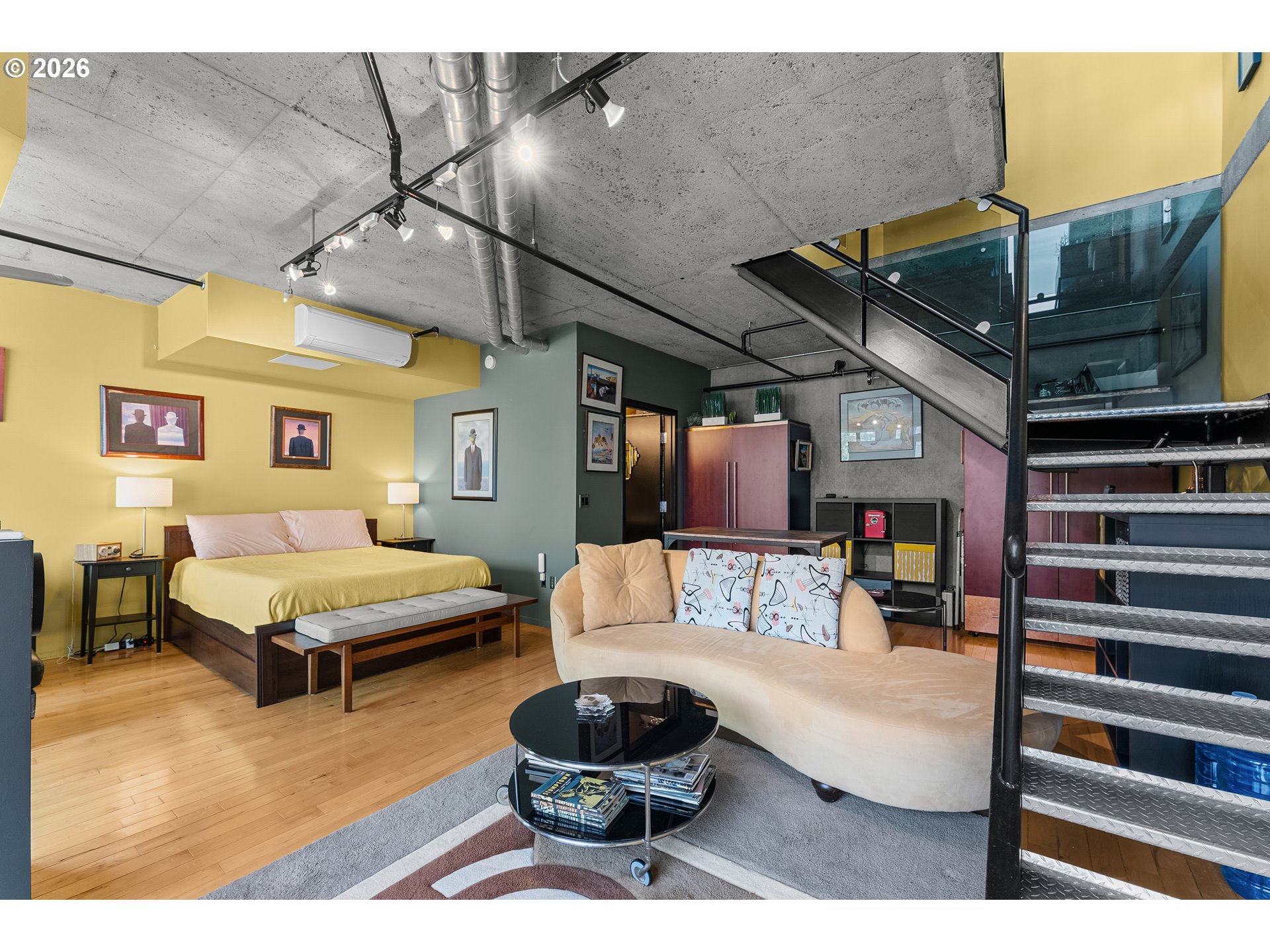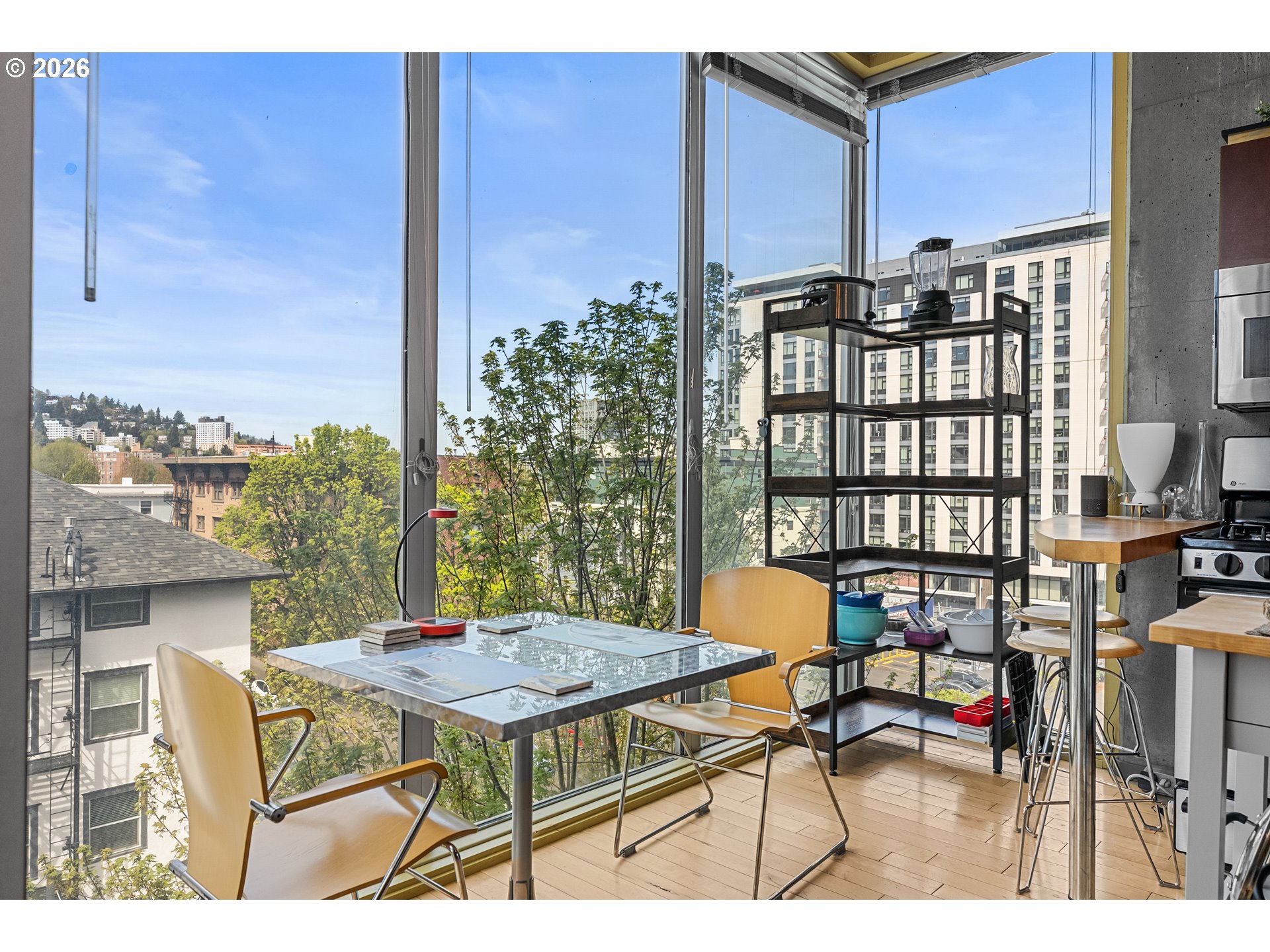 Experience modern living at The Mosaic in Portland’s vibrant Cultural Arts District. This striking two-level condo features floor-to-ceiling windows that flood the space with natural light and showcase sweeping city and views of the west hills. Contemporary design elements—maple hardwood floors, exposed concrete, and soaring ceilings—create a sophisticated yet comfortable atmosphere. The flexible layout offers a spacious lower level ideal for a primary suite, home office, or additional living space, providing versatility for today’s lifestyle. Enjoy the convenience of in-unit laundry, dedicated storage, and secure bike storage, along with upgraded mini-splits for efficient heating and cooling on both levels. Located just steps from the Portland Art Museum, Arlene Schnitzer Concert Hall, PSU, the Streetcar, and some of the city’s best dining and shopping, this home offers unbeatable walkability (Walk Score 99). With secure entry and a well-maintained building, The Mosaic delivers the perfect blend of style, function, and urban convenience.