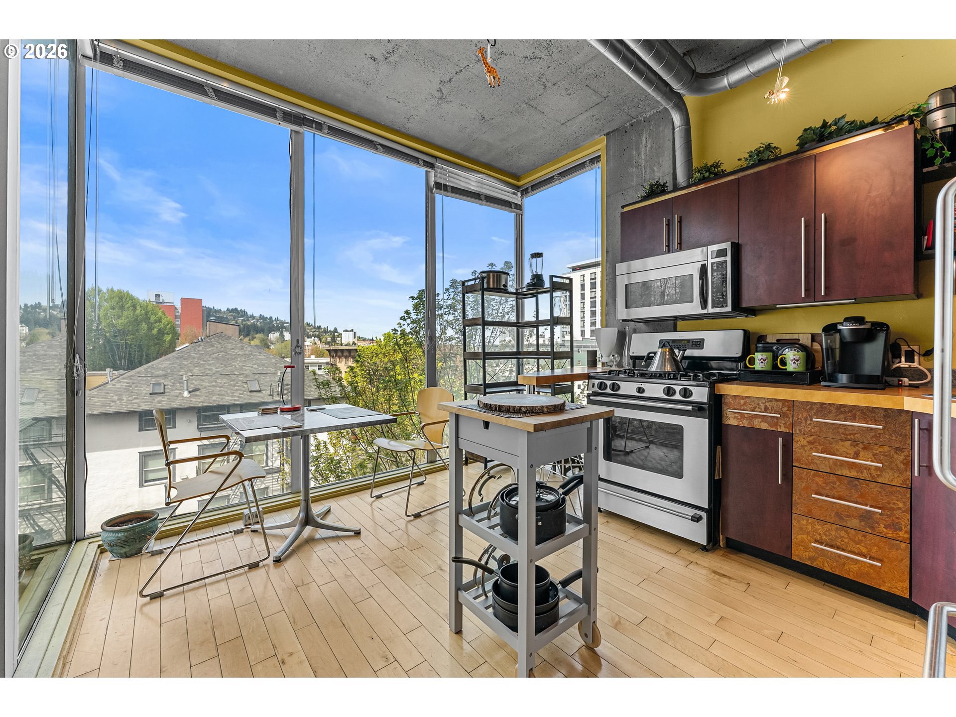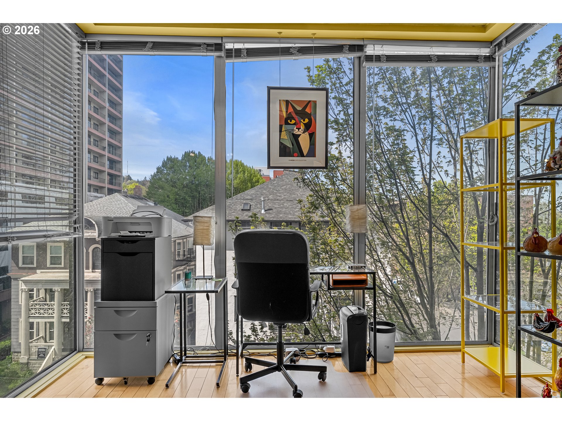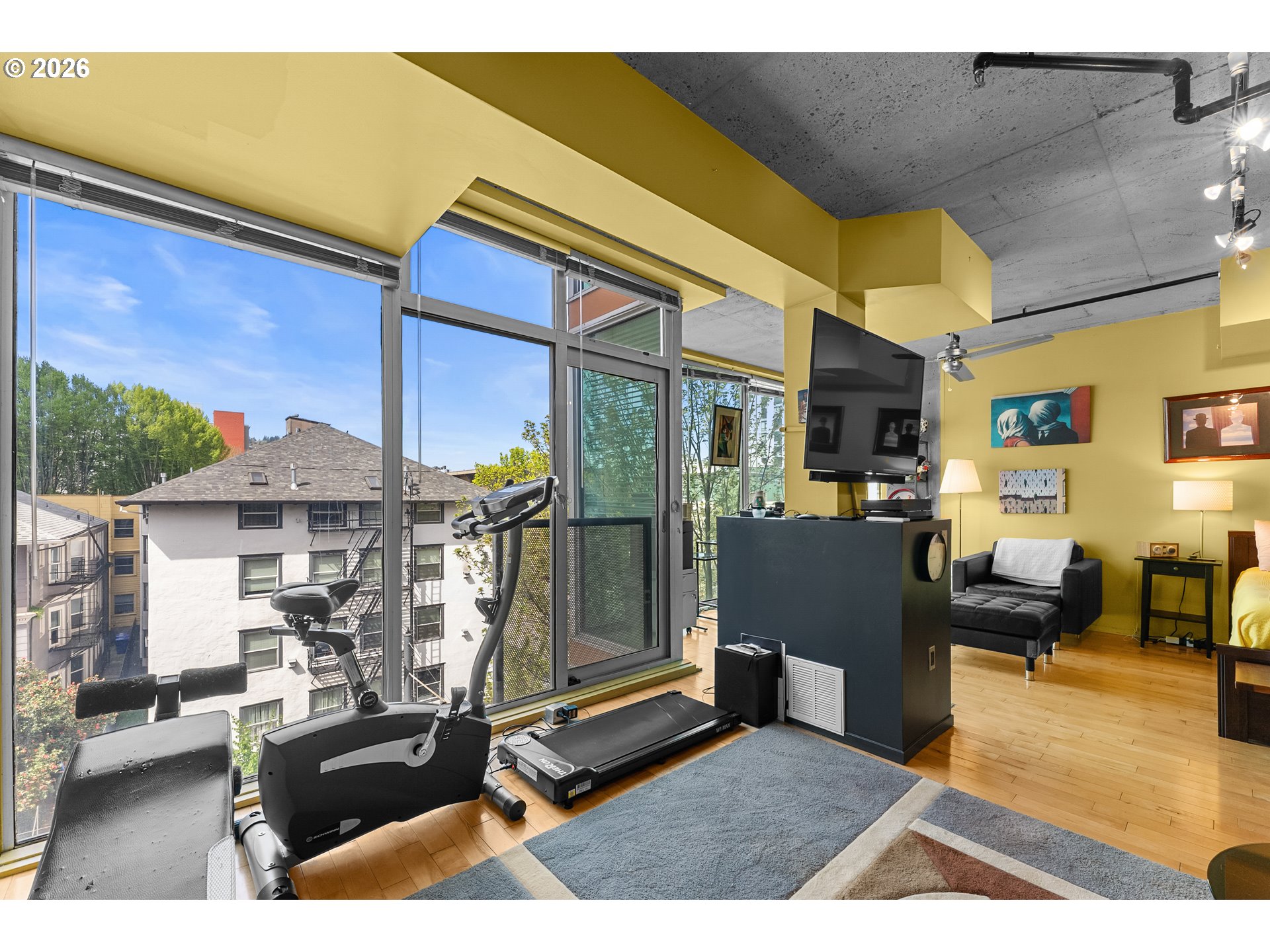 Experience modern living at The Mosaic in Portland’s vibrant Cultural Arts District. This striking two-level condo features floor-to-ceiling windows that flood the space with natural light and showcase sweeping city and views of the west hills. Contemporary design elements—maple hardwood floors, exposed concrete, and soaring ceilings—create a sophisticated yet comfortable atmosphere. The flexible layout offers a spacious lower level ideal for a primary suite, home office, or additional living space, providing versatility for today’s lifestyle. Enjoy the convenience of in-unit laundry, dedicated storage, and secure bike storage, along with upgraded mini-splits for efficient heating and cooling on both levels. Located just steps from the Portland Art Museum, Arlene Schnitzer Concert Hall, PSU, the Streetcar, and some of the city’s best dining and shopping, this home offers unbeatable walkability (Walk Score 99). With secure entry and a well-maintained building, The Mosaic delivers the perfect blend of style, function, and urban convenience.