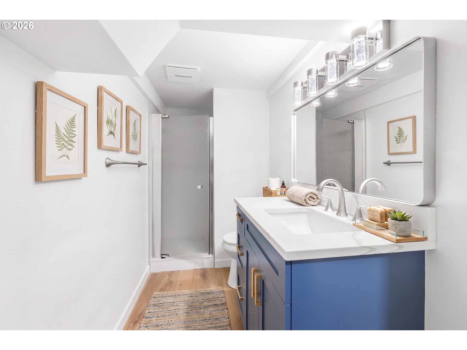 Mid-Century Bones. Fully Reimagined. Move-In Ready.This isn't a flip — it's a full transformation. Set in the heart of NE Portland, this 1951 charmer has been stripped to the studs and rebuilt with the kind of quality and care you'd expect from custom new construction, at a fraction of the price.The open main level flows effortlessly from the living room — anchored by a wood-burning fireplace with a restored wood mantel — through the dining area and into a chef's kitchen with sleek cabinetry, granite island, and high-end finishes throughout. Natural light pours in from every angle.The primary suite is a true retreat: double vanity, spa-inspired shower, and a generous walk-in closet. Two additional bedrooms are split from the primary for privacy — a layout today's buyers love.Downstairs, the lower level opens up the possibilities: a 4th bedroom or flex space with its own full bath, custom trim, and direct garage access — perfect for multigenerational living, a home office, or guest quarters.On a 0.14-acre lot with a 2025 sqft footprint, this home lives large. Priced to move. Offers are reviewed promptly.