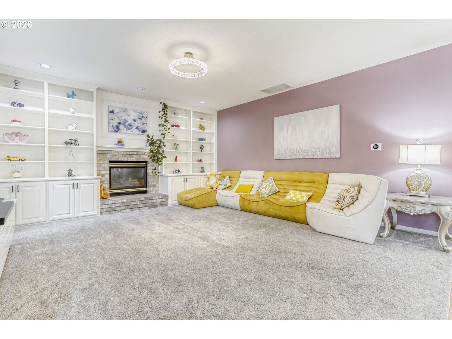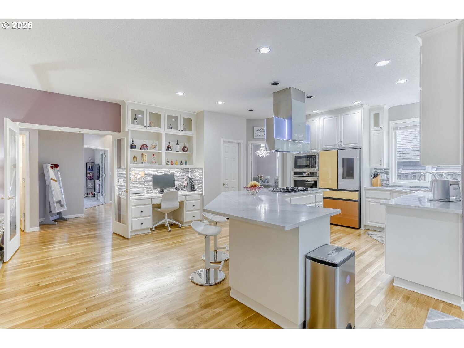 Luxurious and meticulously maintained home featuring quality finishes throughout. Vaulted ceilings, two fireplaces, and beautifully refinished hardwood floors create a warm and elegant atmosphere. Recent updates include newer interior paint and carpet, a 2021 furnace and A/C, newer dishwasher, updated lighting, refinished cabinetry, new kitchen countertops, and a premium $5,000+ range hood—with total over $100,000 invested in recent improvements.The main level offers an open-concept great room with built-in shelving, along with formal living and dining spaces. A flexible office/den or 5th bedroom with a full bath is also located on the main floor, plus a convenient laundry room.Upstairs features four spacious bedrooms and two full baths, including a large primary suite with a beautifully updated ensuite showcasing a tile shower, soaking tub, and newer cabinetry.Ideally located with easy access to I-205, this move-in ready home blends comfort, style, and convenience! [Home Energy Score = 4. HES Report at https://rpt.greenbuildingregistry.com/hes/OR10203351]