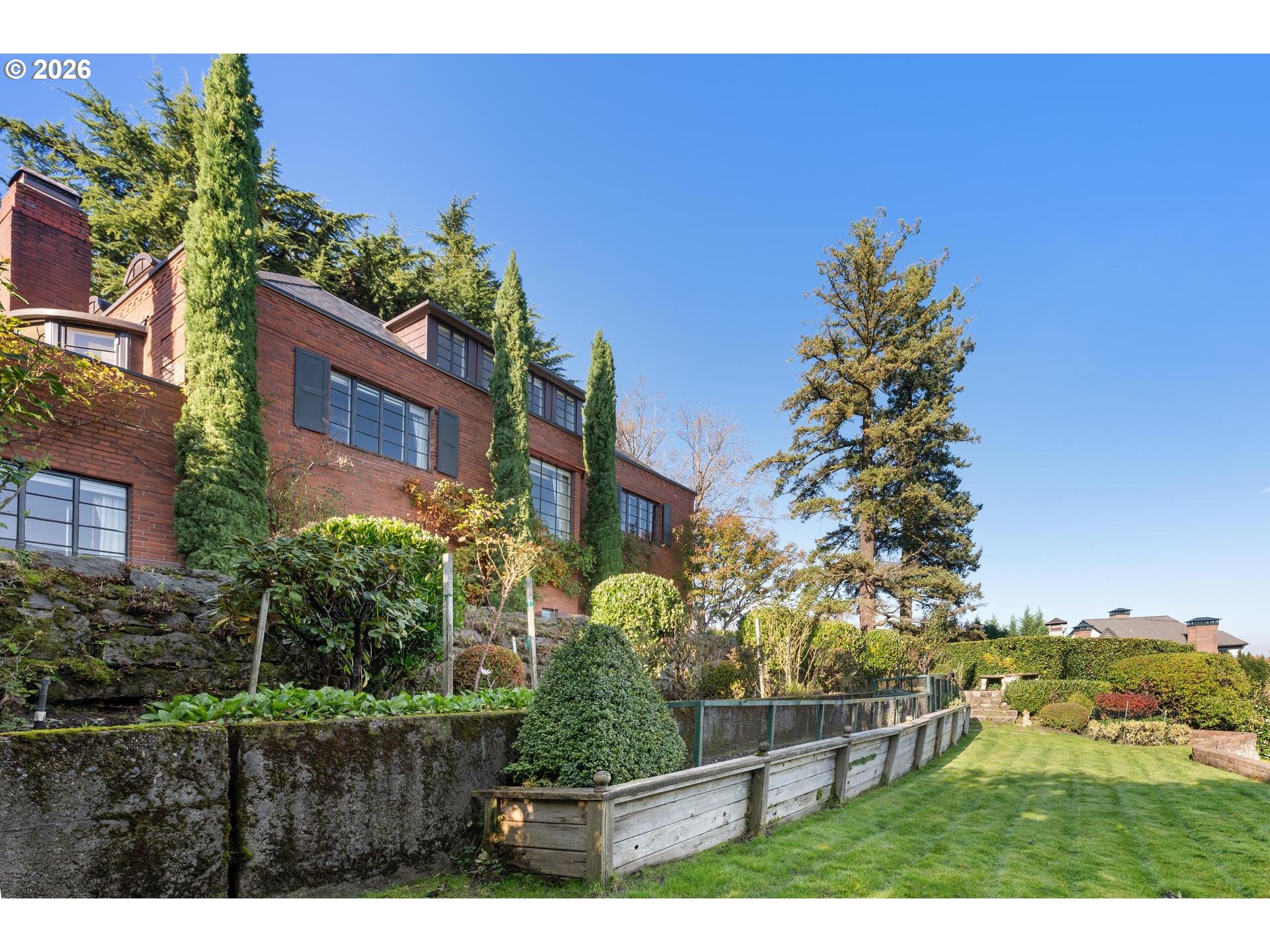 Built in 1938, this extraordinary 5-bedroom, 5.1-bath Brookman-inspired Portland Heights residence is a rare architectural jewel, rich in history, craftsmanship, and irreplaceable charm. Perfectly positioned to capture sweeping city and mountain views, the home is completed by a gorgeous patio and tiered yard, making this a truly exceptional offering in Portland Heights. The main level showcases stunning formal spaces designed for both grand entertaining and intimate gatherings. A den and elegant living room open seamlessly to the beautiful patio, creating effortless indoor-outdoor flow.Upstairs, the primary suite features its own private balcony and is joined by four additional bedrooms and a dedicated office, offering flexibility and space for modern living. The lower level is equally impressive, with a breathtaking library and an oversized bonus room perfect for media, play, or recreation. A timeless Portland classic, blending timeless design with livable luxury.