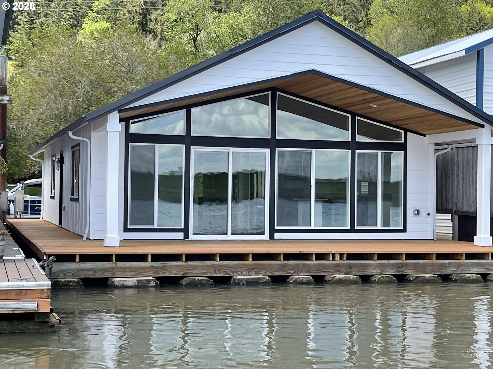 Stunning fully renovated and remodeled floating home in the highly sought-after Bridgeview Moorage on the Multnomah Channel, just minutes from Sauvie Island Bridge and only 15 minutes to the Pearl District and downtown Portland. This beautifully updated residence offers 1,482 sq ft of thoughtfully designed living space with two primary bedrooms, each featuring ensuite bathrooms, large picture windows, and access to the upper deck overlooking the river. An upstairs office provides the perfect place to work or unwind while enjoying sweeping water views. The kitchen has been completely upgraded with brand new cabinetry, modern appliances, and high-end finishes, while all bathrooms feature new tile floors, tiled showers, and stylish vanities. Outdoor living shines with an expansive swim float deck and covered patio, ideal for entertaining, lounging in the sun, or watching wildlife and passing boats. Additional upgrades include a brand new metal roof for long-term durability and the convenience of boat parking right at your front door. Surrounded by natural beauty and the peaceful flow of the Multnomah Channel, this home delivers a true floating lifestyle, and the float has recently been rated a solid 4. Don’t miss this rare opportunity to live in one of the river’s most desirable close-in locations.