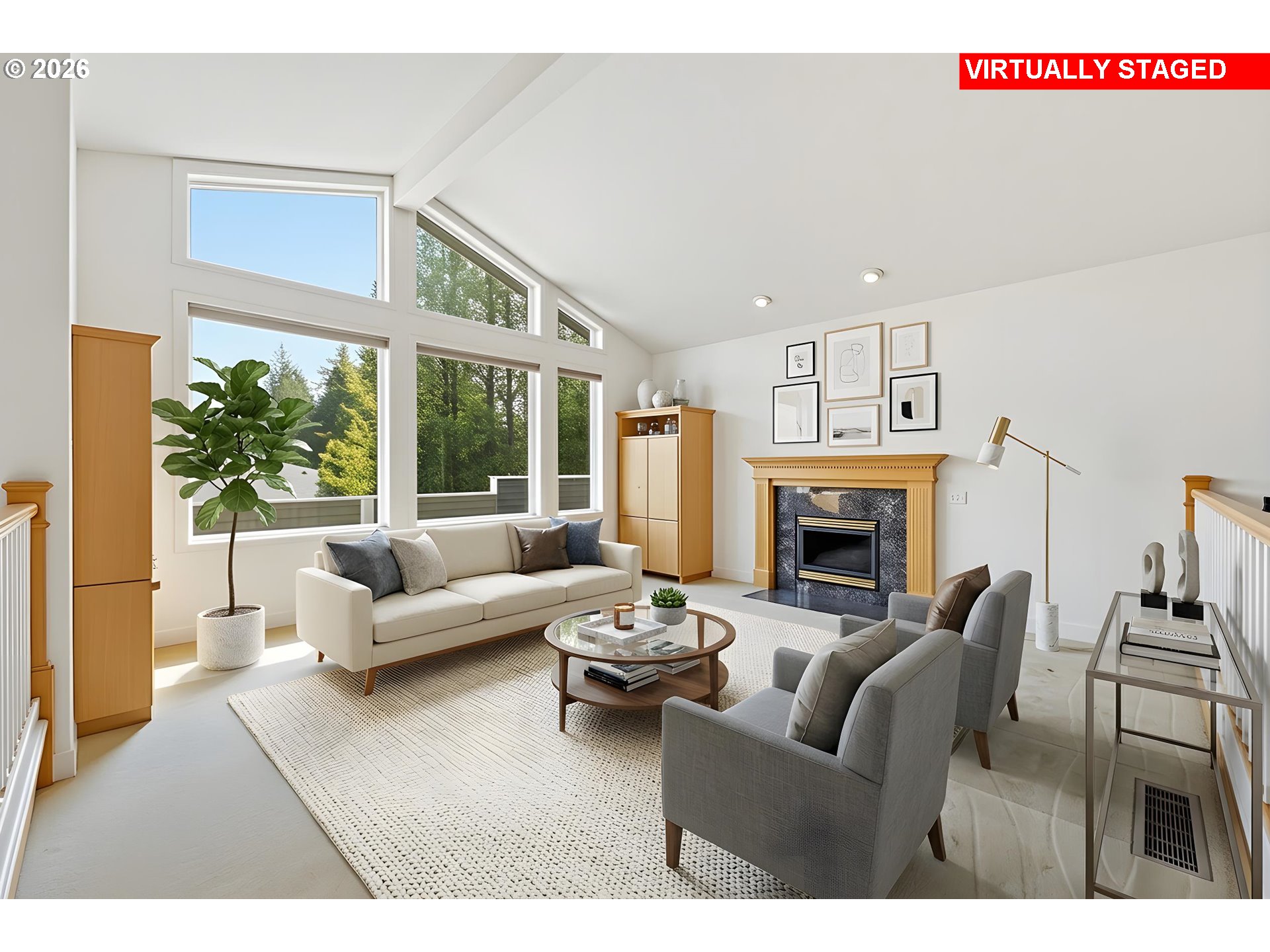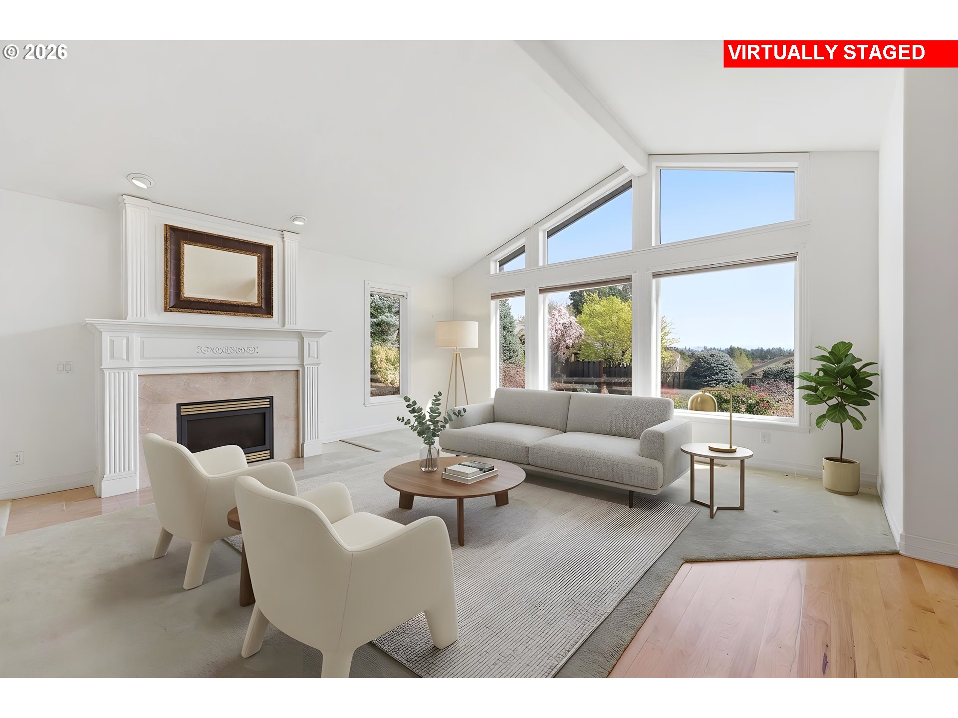 Enjoy sweeping Mt Hood views from this well-designed single-level home offering comfortable main-floor living, a large three-car garage, and easy-care grounds. Large windows fill the home with natural light and showcase the mountain and surrounding greenery, while the primary bedroom on the main floor opens directly to a spacious deck—ideal for relaxing and taking in the scenery. The low-maintenance yard is perfect for buyers seeking simplicity without sacrificing outdoor enjoyment. Interior features include vaulted ceilings, a classic white-mantel fireplace, multiple living areas, a dedicated office or study, and a functional kitchen and bath layout. Recent improvements include a new roof and fresh exterior paint, and the home offers great bones with an excellent opportunity for light updating, allowing a buyer to add value and personalize over time.