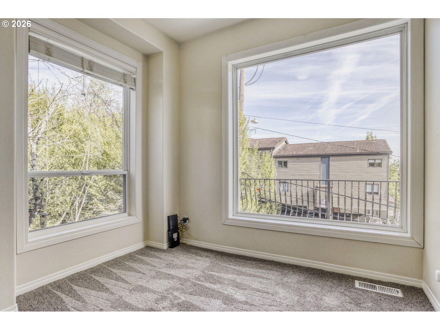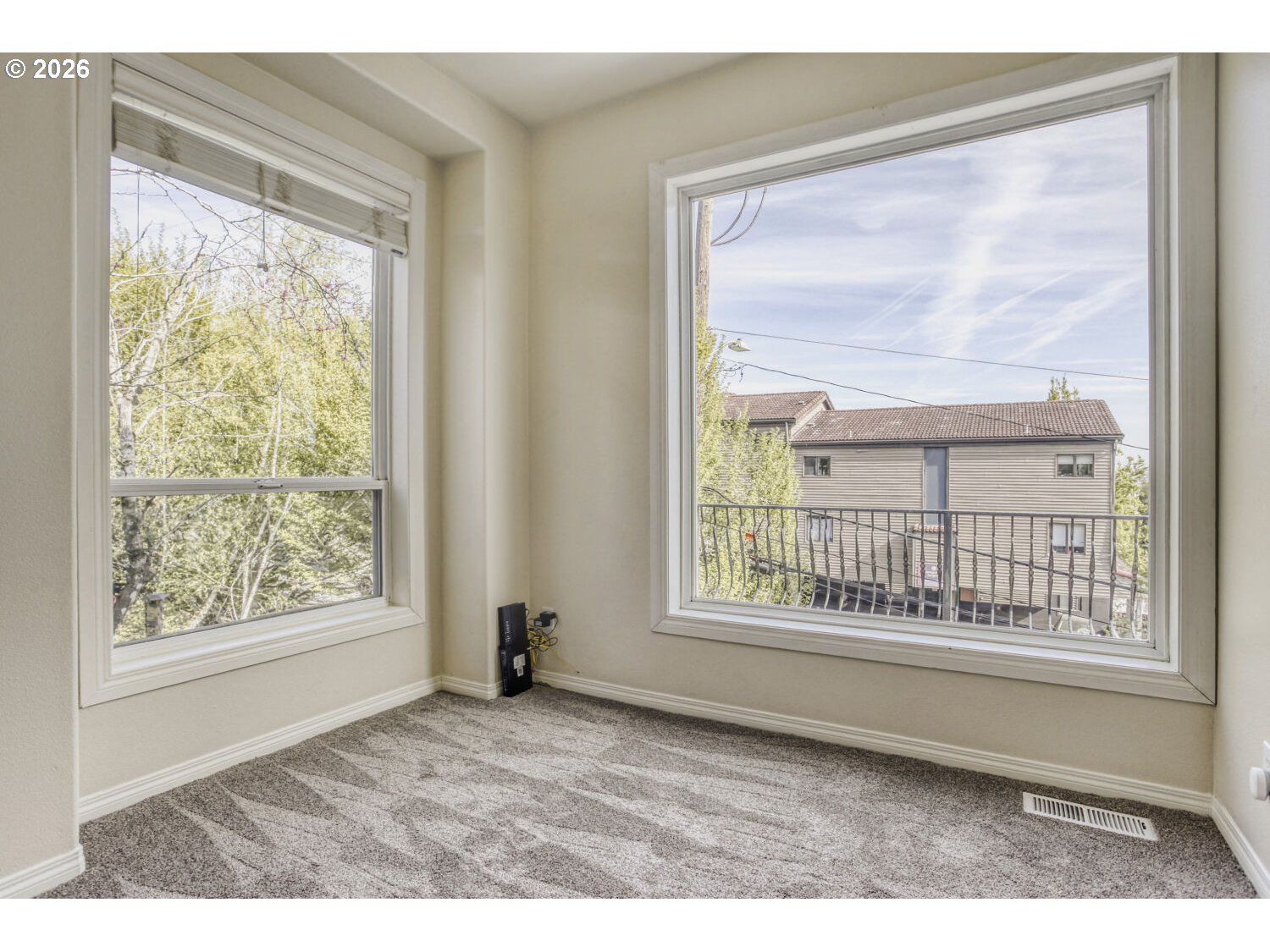 Individual home on its own tax lot - no HOA! Attn PSU and OHSU- Here you are! Convenience and parking in Goose Hollow! Experience the charm of Tuscany in the heart of Portland's Goose Hollow neighborhood. This beautifully designed Tuscan townhouse offers timeless style, modern amenities, and a prime location—all with no HOA fees. Step into a bright and spacious great room featuring soaring ceilings, a cozy gas fireplace, and rich cherry hardwood floors. The open-concept layout flows seamlessly into a chef’s kitchen, complete with maple cabinetry, granite slab countertops, stainless steel appliances, a gas range, and dual wine/beer fridges—perfect for entertaining. The upstairs primary suite is a luxurious retreat, boasting a private sitting room or office, a custom walk-in closet, and a spa-inspired bathroom with a double showerhead tile shower. Step out onto the large deck to take in stunning city views, including the downtown skyline and even Mt. St. Helens on a clear day. Second bedroom is also a suite, at the shaded rear of the home. Car enthusiasts will love the two-car attached garage, featuring a custom epoxy floor and upgraded lighting—ideal for showcasing your vehicles or creating a functional workspace. Additional highlights include a private back deck, surround sound throughout, and recent updates like fresh interior paint, newer heat pump and water heater, plus additional storage off the garage. Located just minutes from downtown Portland, PSU, Providence Park, and the Pearl District, this home offers unparalleled access to the best of urban living. With Washington Park, the Portland Art Museum, and countless dining and shopping options nearby, you’ll enjoy the perfect balance of city convenience and neighborhood charm. HES=9, WalkScore=91, BikeScore=91, TransitScore=86 [Home Energy Score = 9. HES Report at https://rpt.greenbuildingregistry.com/hes/OR10011036]