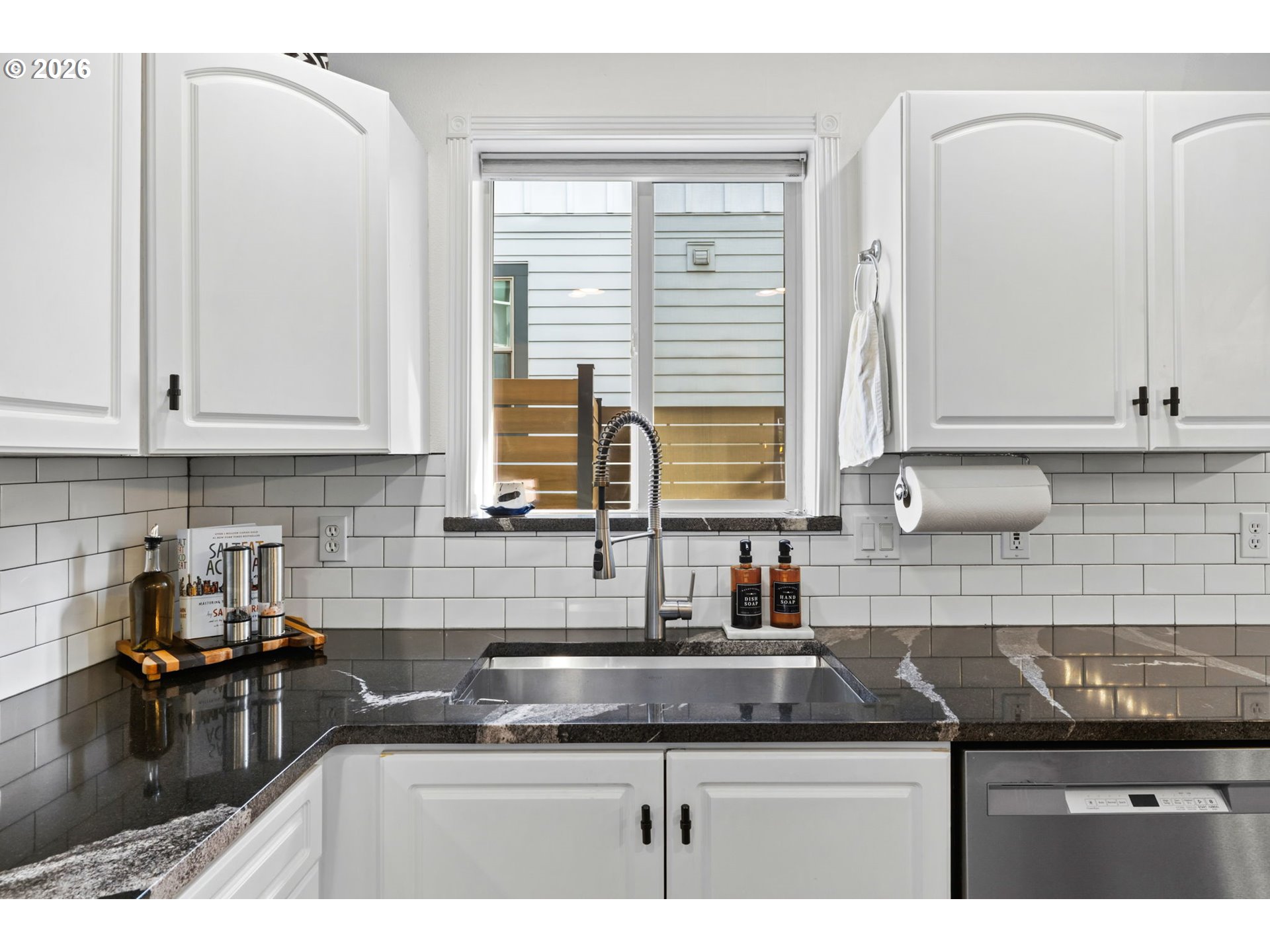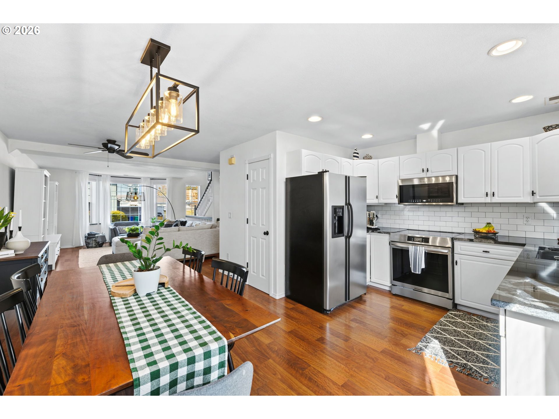Urban living with a neighborhood soul. Nestled in the heart of Sellwood, this charming home has the energy of a NYC walkup with all the warmth of Portland's most sought-after pocket. The main living level has been beautifully updated — granite countertops and windowsills, new entry tile, updated millwork and fresh light fixtures. Step onto the newly rebuilt back deck with cedar boards and a private screen: your own outdoor retreat. Upstairs holds two spacious bedrooms, two full baths, and generous storage. The oversized garage flexes to fit your life — gym, home office, or parking. New roof. New washer and dryer. Sellwood's restaurants, shops, and trails are steps away. Style, space, and location at a price that makes it all possible.