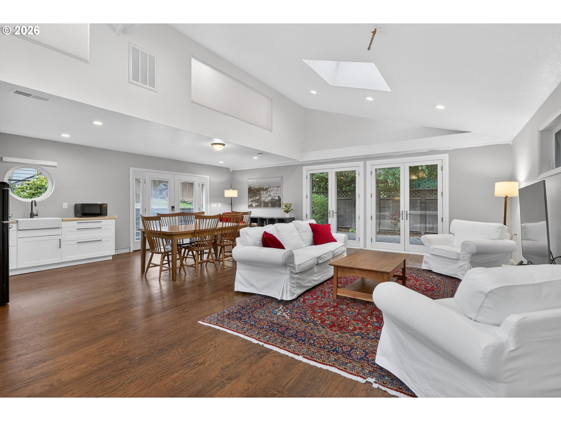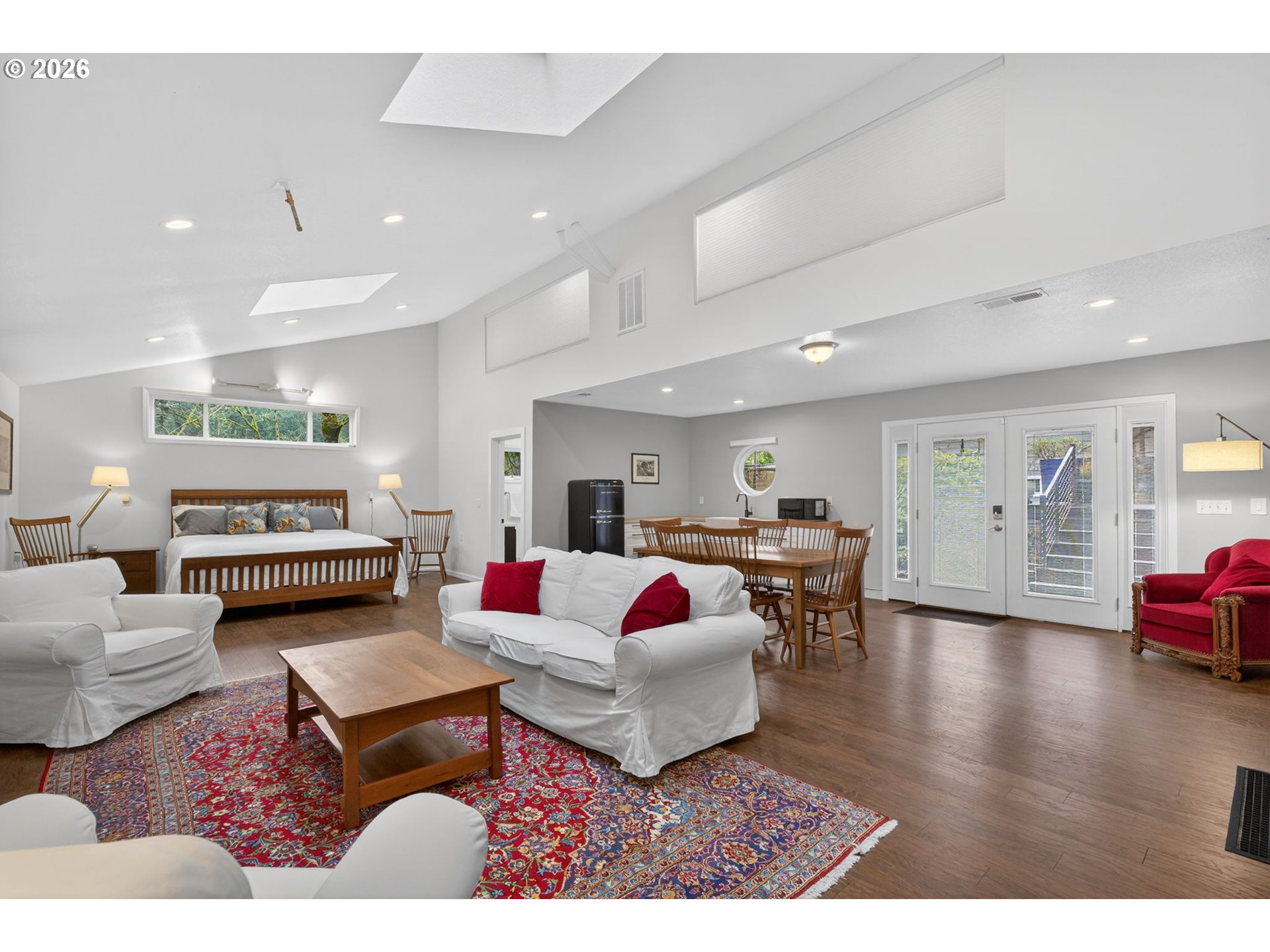 OPEN HOUSE Sat, April 11, 12-4 AND Sun, April 12, 12pm-4pm!!! Beautiful remodel of this picture perfect home in tucked away neighborhood just steps from the Rose Garden and trails. Walk through the entry into the light-filled family room with updated fireplace. The dining room has plenty of room for dinner parties and is just steps from the updated kitchen. Chic design in the kitchen offers quartz counters, glass tile backsplash, refreshed cabinetry, high end appliances, and door out to the back deck perfect for entertaining, relaxing, or private dinners. Main floor bedroom and bathroom offer great flexibility. The open staircase leads to the upstairs true master suite with vaults, incredible light from oversized windows, walk-in closet, and freshly remodeled bathroom. French door leads to attached private office with built-ins. Additional bedroom and full bathroom complete the upper level. Outside you will find lounging areas in the front garden or large back deck. Lower level with storage, laundry, and exercise room. Do not miss the rare detached studio space perfect for guests, workspace, home office, or mother-in-law suite. Complete with full bath, kitchenette, private entrance, and living, dining, office, and bedroom spaces. Lots of flexibility and options with this gorgeous home. [Home Energy Score = 4. HES Report at https://rpt.greenbuildingregistry.com/hes/OR10246490]