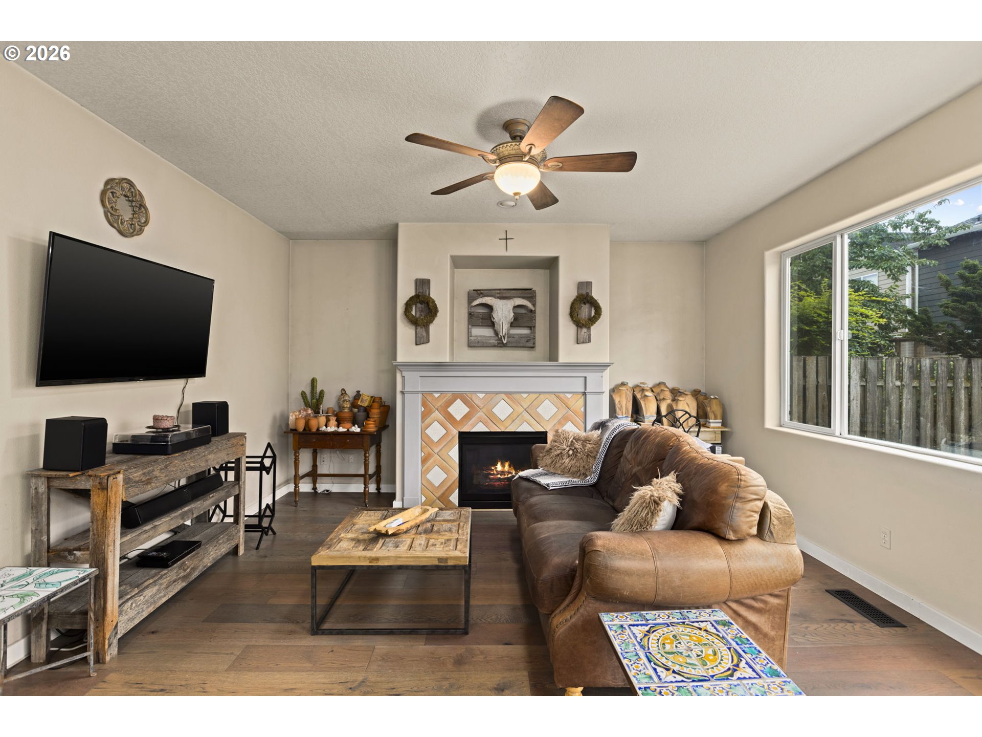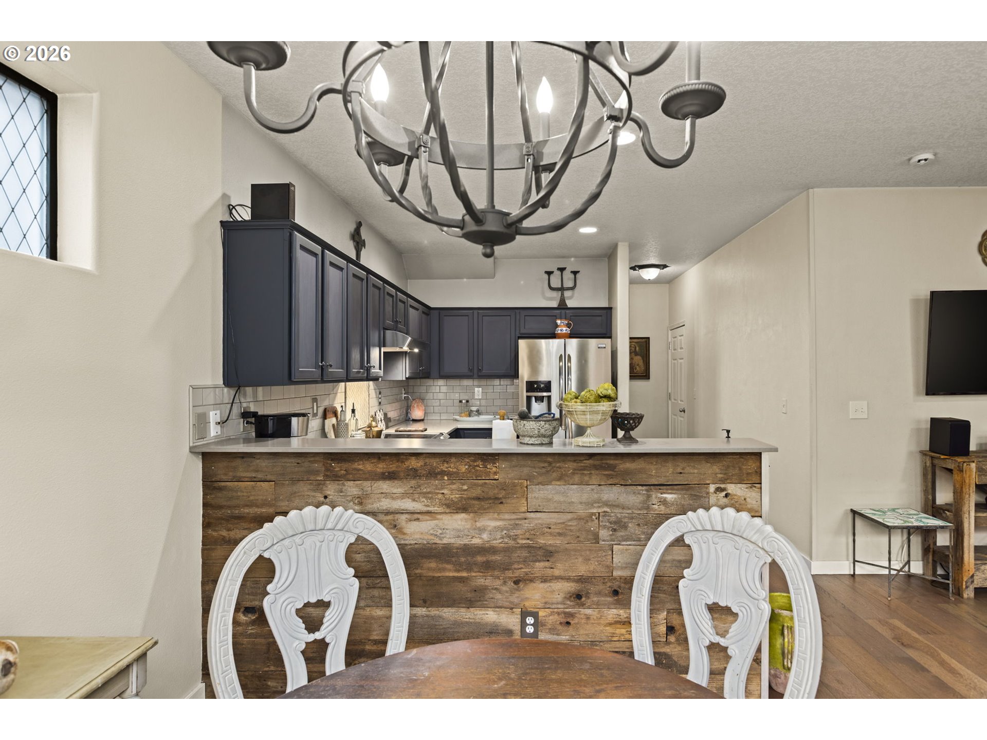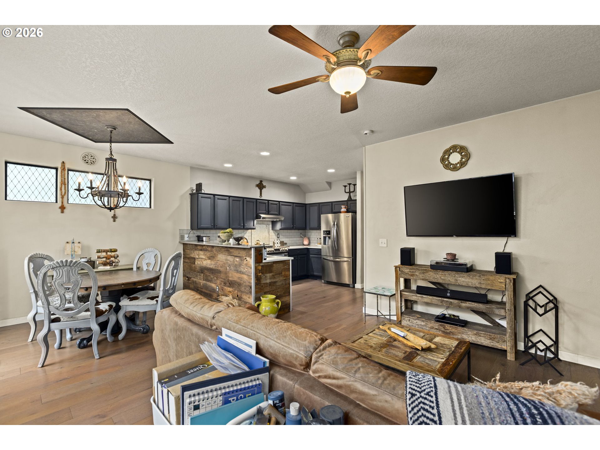 Rare opportunity to own a masterfully updated 3-bedroom, 2-bathroom home in the heart of the highly coveted neighborhood. The open-concept main level seamlessly blends modern luxury with rustic soul, featuring stunning reclaimed wood accents and a cozy gas fireplace perfect for Pacific Northwest evenings. The true showstopper is the gourmet kitchen, boasting premium appliances, sleek cabinetry, and ample prep space for the home chef. Retreat to the spacious primary suite, which serves as a private sanctuary complete with an ensuite bath and balcony—the ideal spot for morning coffee or sunset views. Two additional bedrooms provide flexibility for a home office or guest space. Situated on a manicured lot in a vibrant community just minutes from amenities. This home offers the perfect balance of designer style and everyday comfort. A must-see on your list!