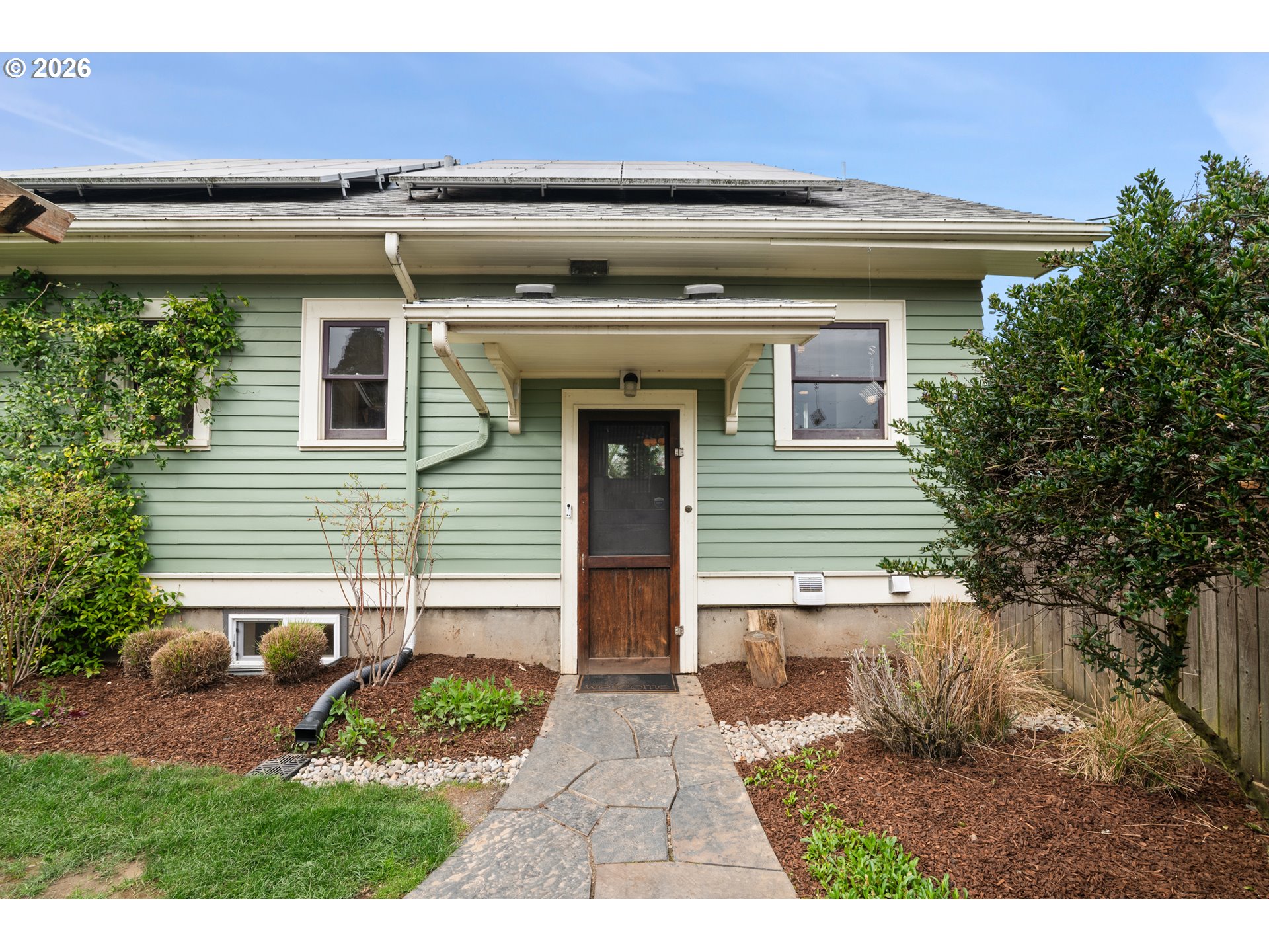 Timeless 1925 Craftsman in the heart of historic Kenton neighborhood — where historic charm meets thoughtful modern upgrades. Lovingly maintained by only three owners, this home showcases original refinished hardwood floors, rich built-ins, and classic trim details, alongside stunning glass French doors and a one-of-a-kind repurposed fire door.Designed for both comfort and functionality, the home features zoned HVAC, instant hot water with recirculation, and a fully air-sealed, high-efficiency envelope with heat recovery ventilation. The gourmet kitchen is a true centerpiece with solid stone counters, butcher block workspace, commercial-grade 6-burner range, stainless farm sink, and custom cabinetry with built-in nook.The finished basement offers a cozy fireplace, full home theater with projector and sound system, plus a flexible in-law suite with kitchenette and second fridge.Situated on an oversized lot, the outdoor space is a gardener’s dream: established landscaping, fruiting plants, and a fully equipped greenhouse with heat pump, irrigation, and automated ventilation. Energy-efficient living is complete with a 5.5kW solar system and earthquake retrofitting.Located on one of Kenton’s most sought-after blocks, just moments from local favorites like Posies Bakery & Cafe, Mantel and countless other charming neighborhood shops, homes here rarely come available. Kenton, and this particular block of Terry Street, is known for its welcoming community and wonderful neighbors—making this a rare opportunity to own a truly special home.Seller prefers a rent-back through mid-July to align with summer transition timing but is open to flexibility for an earlier closing.