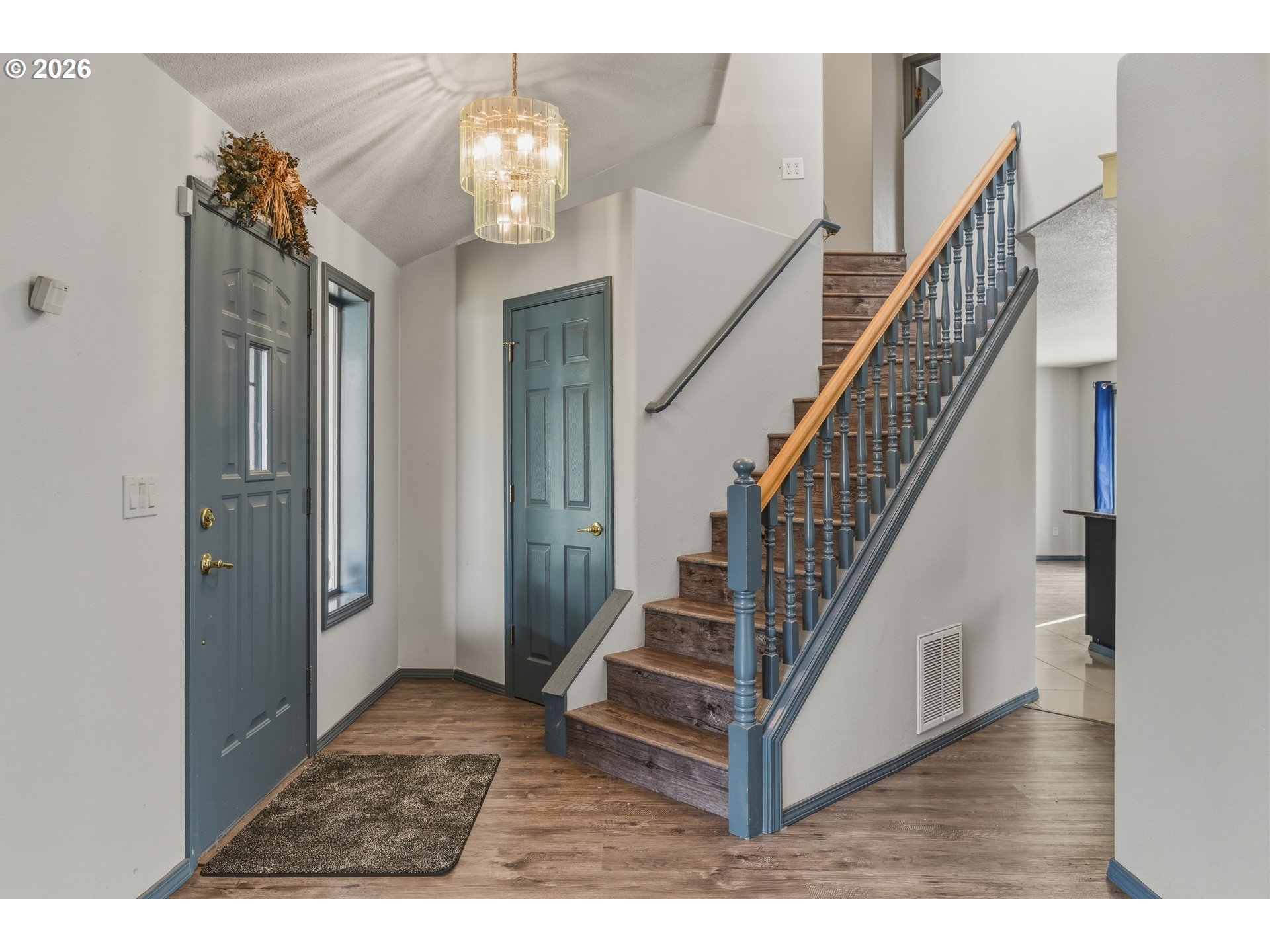 Beautifully maintained one-owner 4-bedroom, 2.5 bath home in desirable Blue Heron Meadows near Columbia Edgewater Country Club. This inviting home features a dramatic entry with soaring ceilings, spacious living and dining areas, and an open kitchen with island overlooking the family room with fireplace. Luxury laminate flooring throughout adds warmth and style, while large windows bring in great natural light. Upstairs offers 4 bedrooms and a functional layout for comfortable everyday living. Enjoy the private backyard with deck, patio, and mature landscaping, perfect for relaxing or entertaining.
