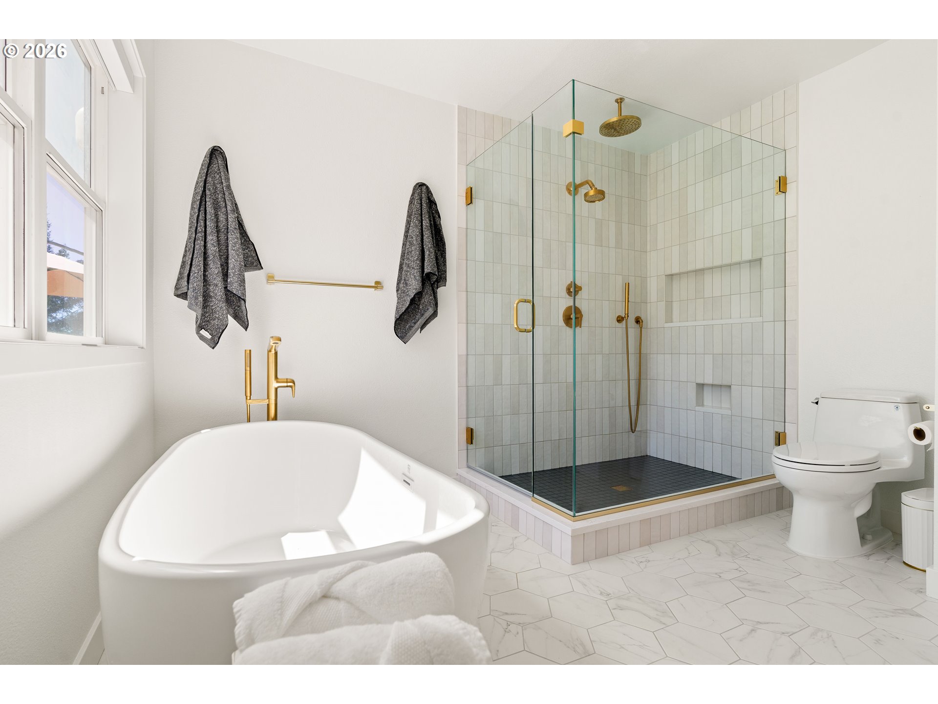 Located within the sought-after Forest Heights community, this beautifully remodeled townhome offers a rare opportunity to live immersed in nature without sacrificing style. With only semi-annual Forest Heights HOA dues and quarterly Austen Row dues, the combined average HOA cost is approximately $363 per month—among the lowest in the community. Inside, soaring 18-foot ceilings and a dramatic wall of windows invite the surrounding forest indoors, creating a peaceful, private retreat. Thoughtful upgrades and finishes elevate every space. The remodeled kitchen features quartz countertops, stainless steel appliances, a crisp white backsplash, and updated hardware, opening seamlessly to the light-filled living area anchored by a gas fireplace. The main level also includes a refreshed bedroom, full bath, and convenient half bath—ideal for guests or flexible living. Upstairs, the primary suite is a true sanctuary, highlighted by a stunningly reimagined spa-like bath. A bonus room off the walk-in closet provides the perfect space for a home office, nursery, or shoe closet! Over $50,000 in system improvements add peace of mind, including a fully permitted main-level deck completed in 2022, complemented by a second south-facing deck on the upper level. Whether hosting friends or enjoying a quiet evening surrounded by trees, this home seamlessly blends luxury, livability, and long-term value in one of Portland’s most desirable neighborhoods.