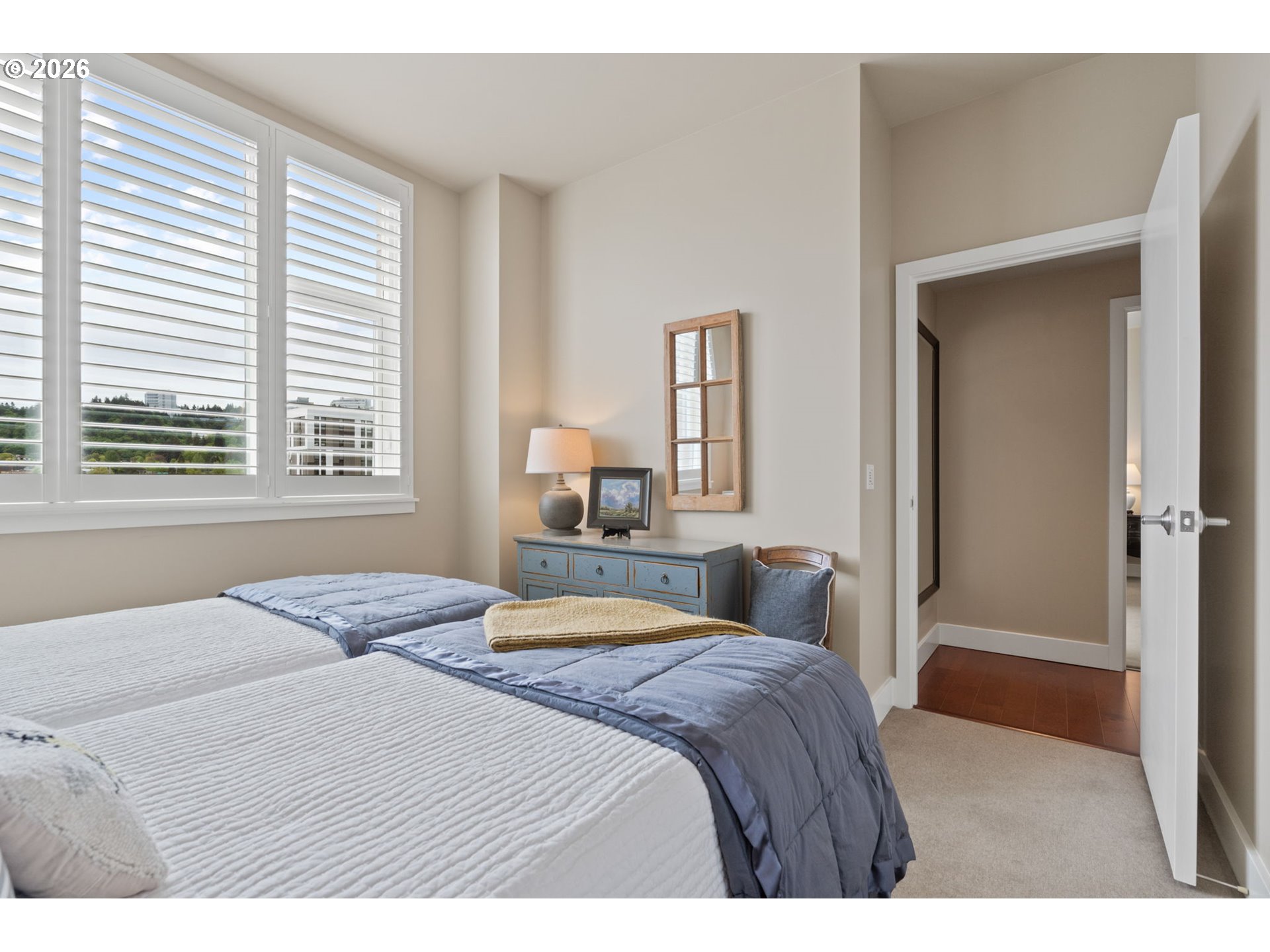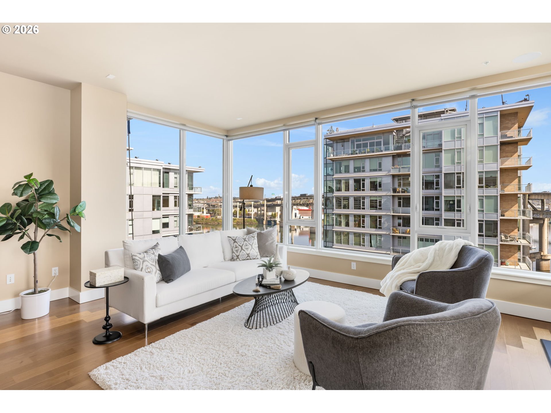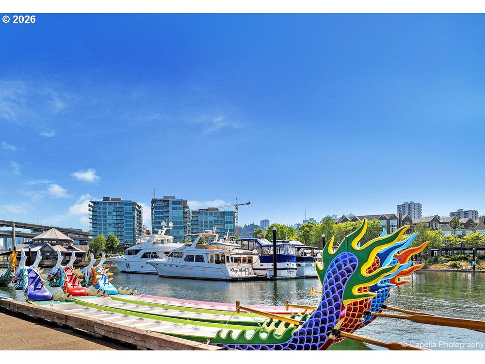 **BEST PRICED JR PENTHOUSE on the PORTLAND WATERFRONT** Elevated Waterfront Living at The Strand's West Tower. This exceptional 10th-floor residence offers soaring ceilings, refined finishes, and panoramic views of the Willamette River, delivering a rare blend of Luxury, value, and location. Move-in ready and meticulously maintained as a pristine second home, this is a compelling opportunity to own one of the most desirable waterfront vantage points. A gracious foyer opens to an expansive open concept floor plan, where an eastern wall of windows floods the home with natural light and frames captivating river and cityscape views. Designed for elevated entertaining and everyday ease, the chef's kitchen features top-tier Thermador stainless steel appliances, a five-burner cooktop, a built-in refrigerator, wine storage, and granite countertops. The living area extends seamlessly to a private deck—perfect for taking in the river's rhythm below. The primary suite is a sophisticated retreat, offering a custom walk-in closet and a spa-inspired bath with travertine radiant heated floors, a jetted soaking tub, and a rain shower. Every detail reflects thoughtful Luxury, from hardwood floors and wool carpeting to surround sound, solar blinds, and plantation shutters. Additional features include secure deeded EV parking, dedicated storage, and full-service concierge living. Just steps from the riverfront path, bike trails, streetcar, dining, and Portland's cultural destinations, including Keller Auditorium and Oregon Health & Science University, this Jr. Penthouse embodies sophisticated comfort with unmatched convenience—an extraordinary offering in Portland. Capture the opportunity to make this one your own![Note the 10th floor is designated a Jr Penthouse with higher ceilings, finishes, and SS appliance package compared to other units on lower levels).