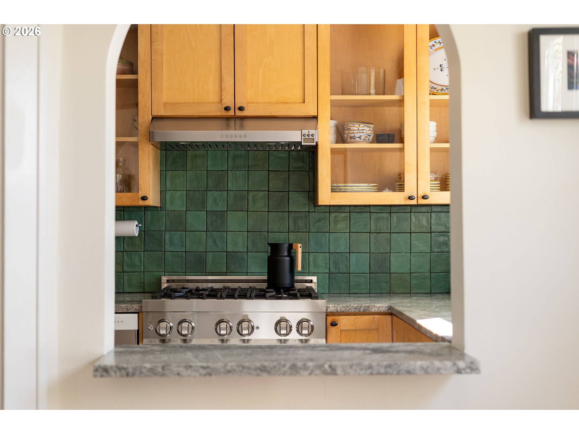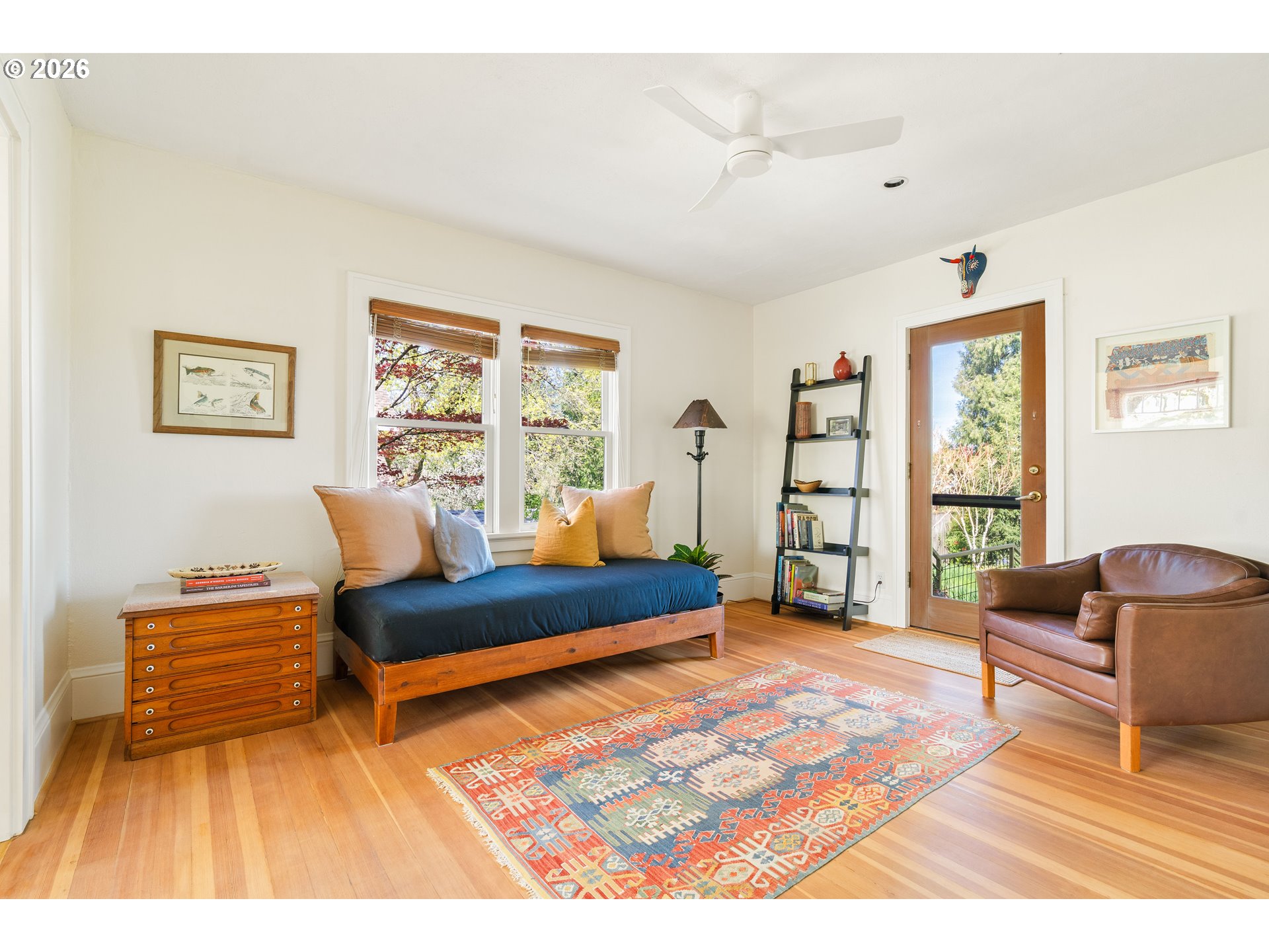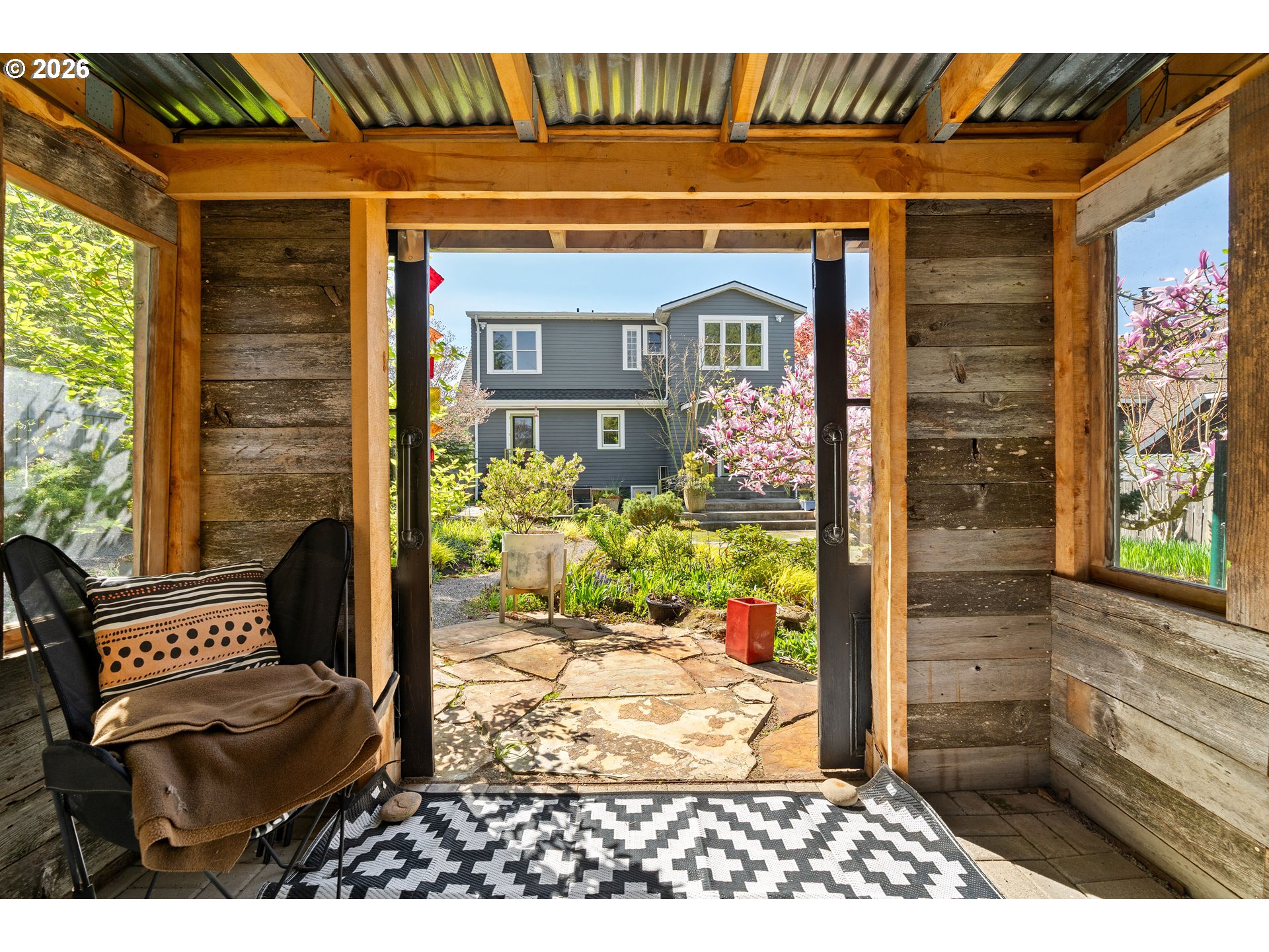Proudly introducing a one-of-a-kind home in the crown jewel of SW — Multnomah Village. This storybook Tudor is located moments from the village core and the sprawling 90 acres of Gabriel Park. Rooted in Arts & Crafts design; the arched openings, rich wood tones, and period details, paired with thoughtful, high-end improvements elevate everyday living. The living room centers on a gas fireplace and is wrapped in updated wood windows that bring in soft, natural light. French doors lead to a retreat equally suited for game nights, TV room, or a guest space. The intimate dining room sits south-facing, ready to showcase your collected pieces within its built-ins, while the refreshed kitchen—finished with timeless green tile, leathered granite counters, and stainless-steel appliances—strikes a balance between function and comfort. The layout flows with ease, with one bedroom and a full bath rounding out the main level. Upstairs, the airy primary overlooks the yard, along with an additional bedroom, full bath, and office loft. The pristine, unfinished basement, with direct backyard access, opens the door to future possibilities and currently lives as a studio and workshop. And then, the garden. Thoughtfully designed and lovingly tended by a landscape designer and longtime owner, the outdoor space is nothing short of special. Layered and intentional for year-round interest, every path, planting, and pocket is curated to change with the seasons. From a stunning magnolia to fruit trees woven throughout the back, to a rotating palette of vibrant flowers and a tranquil pond with flowing water, there is no shortage of depth and beauty. This is one of those rare homes people fall in love with—quietly unforgettable, and right where you want to be.