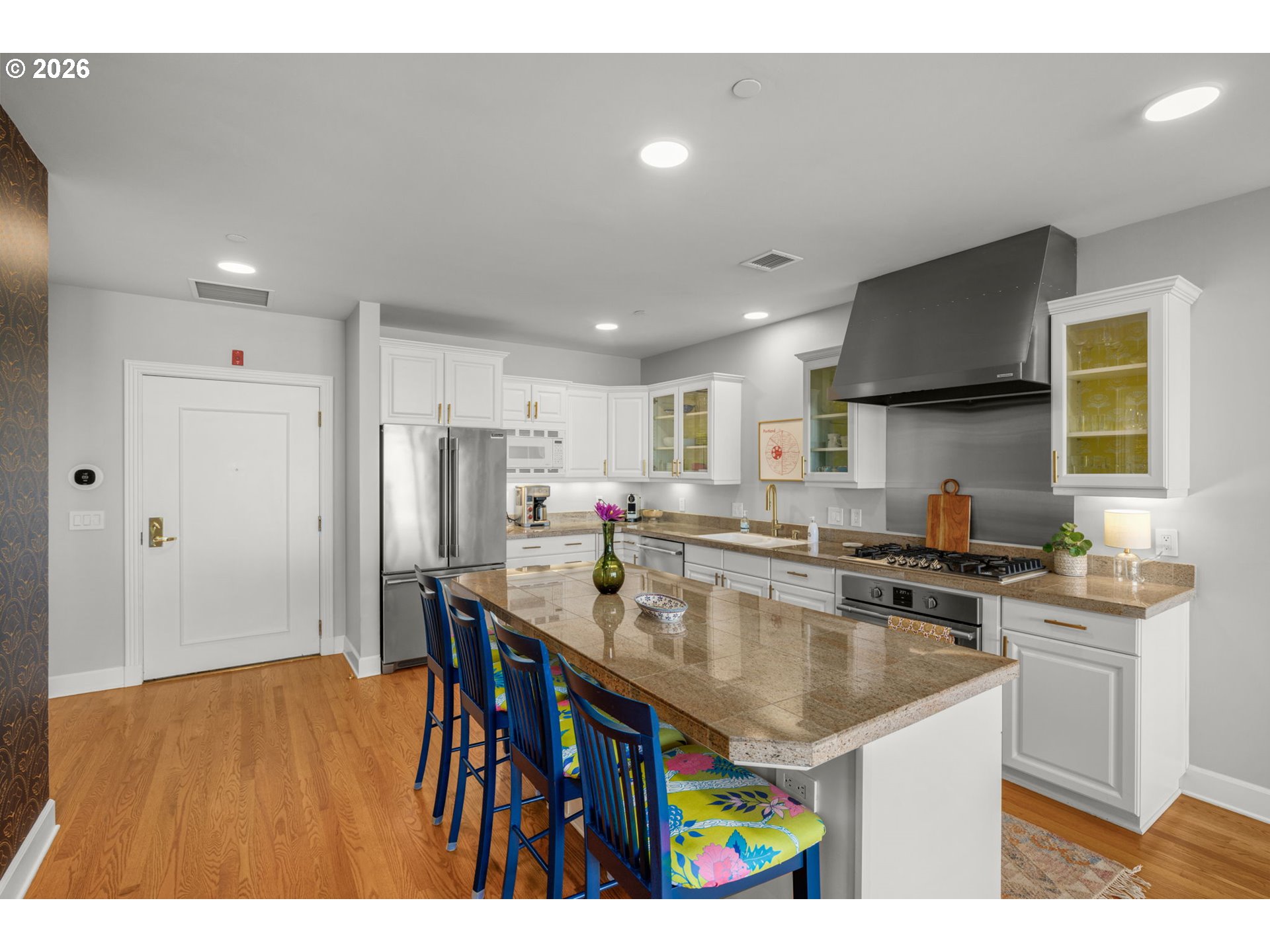 Luxury residence at the prestigious Vista House condominiums. Panoramic views of downtown skyline, mountains and phenomenal city lights. Great room features designer finishes, wood floors, coffered ceiling and cozy gas fireplace. Entertaining kitchen with stainless steel appliances, gas cooktop, built-in microwave and island with bar seating. Separate pantry with washer and dryer. Large terrace overlooking the city is the perfect spot for sunny morning coffee and cool evening cocktails. French doors to oversized primary suite with custom closets, terrace access, gorgeous upgraded bathroom and alcove for home office, lounge or dressing area. Secure entry. One assigned parking space and large separate storage unit. Walk to Washington Park, Multnomah Athletic Club, Zupan's, Providence Park for a Timbers game or outdoor concert, NW 23rd shops and restaurants. 85 walk score, 72 bike score, 81 transit score. Two-minute walk to MAX. HOA includes water, sewer, trash, meeting room, exterior maintenance, commons, maintenance, grounds and insurance. Schools: Chapman Elementary, West Sylvan Middle School, Lincoln High School.