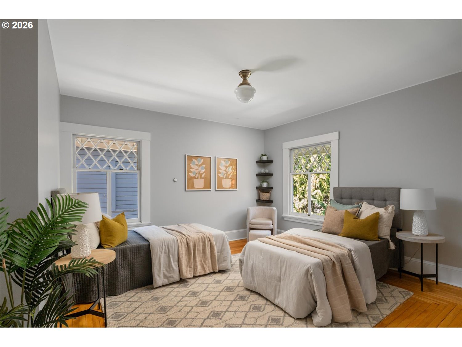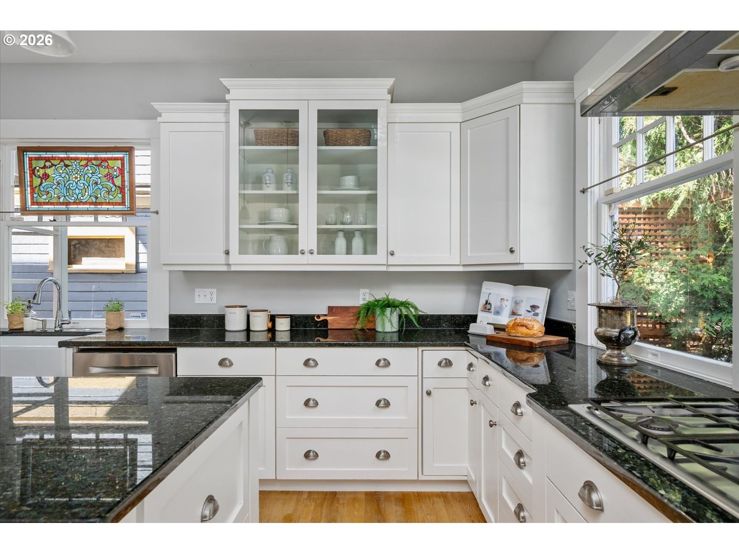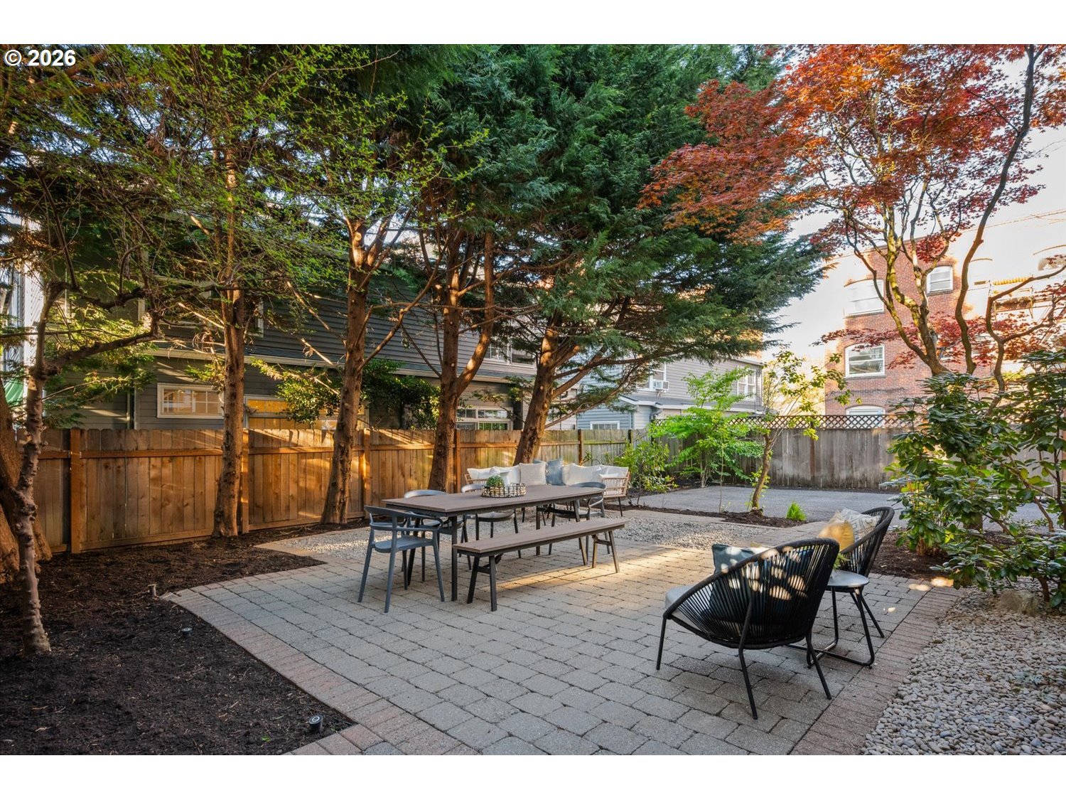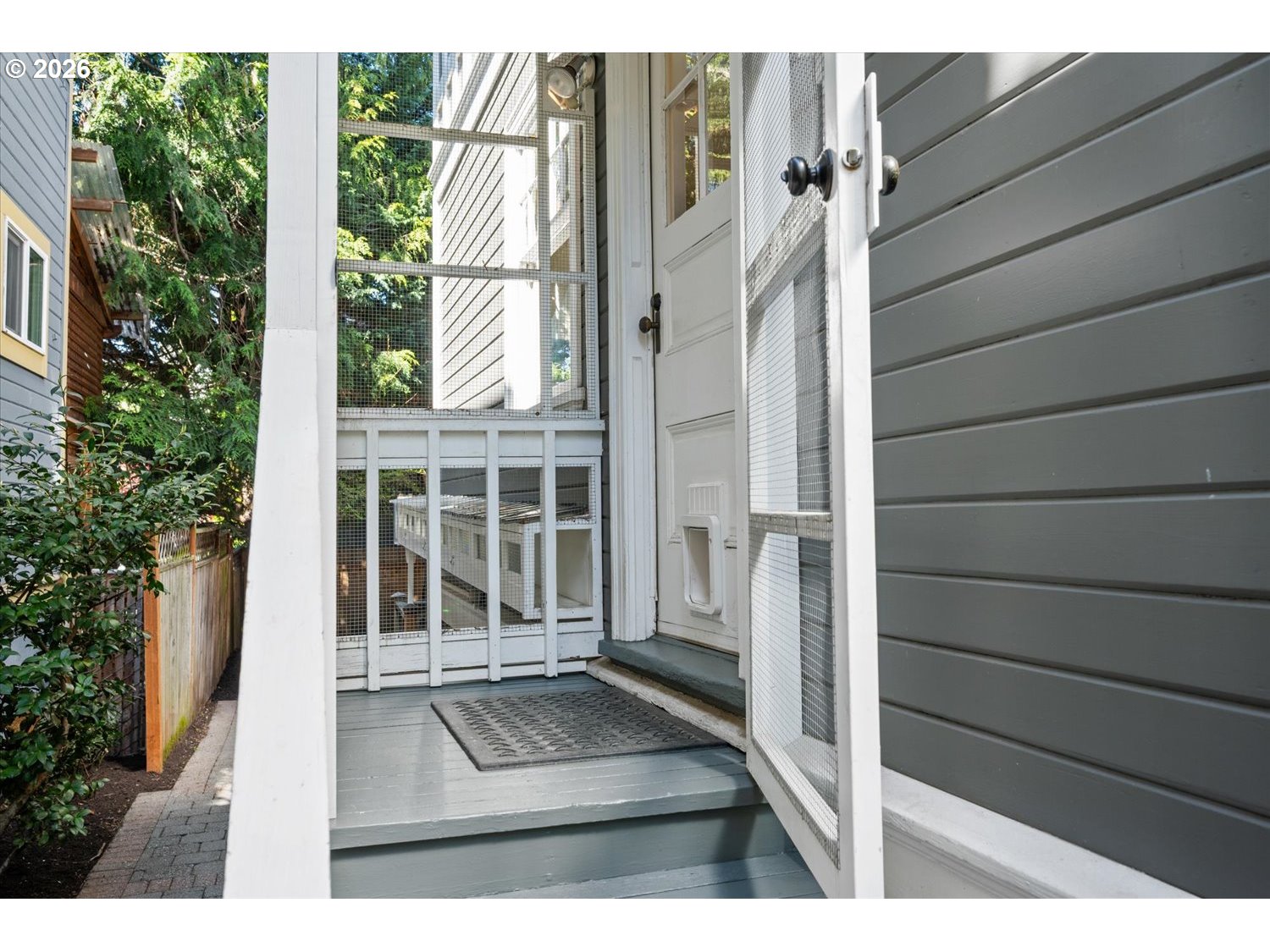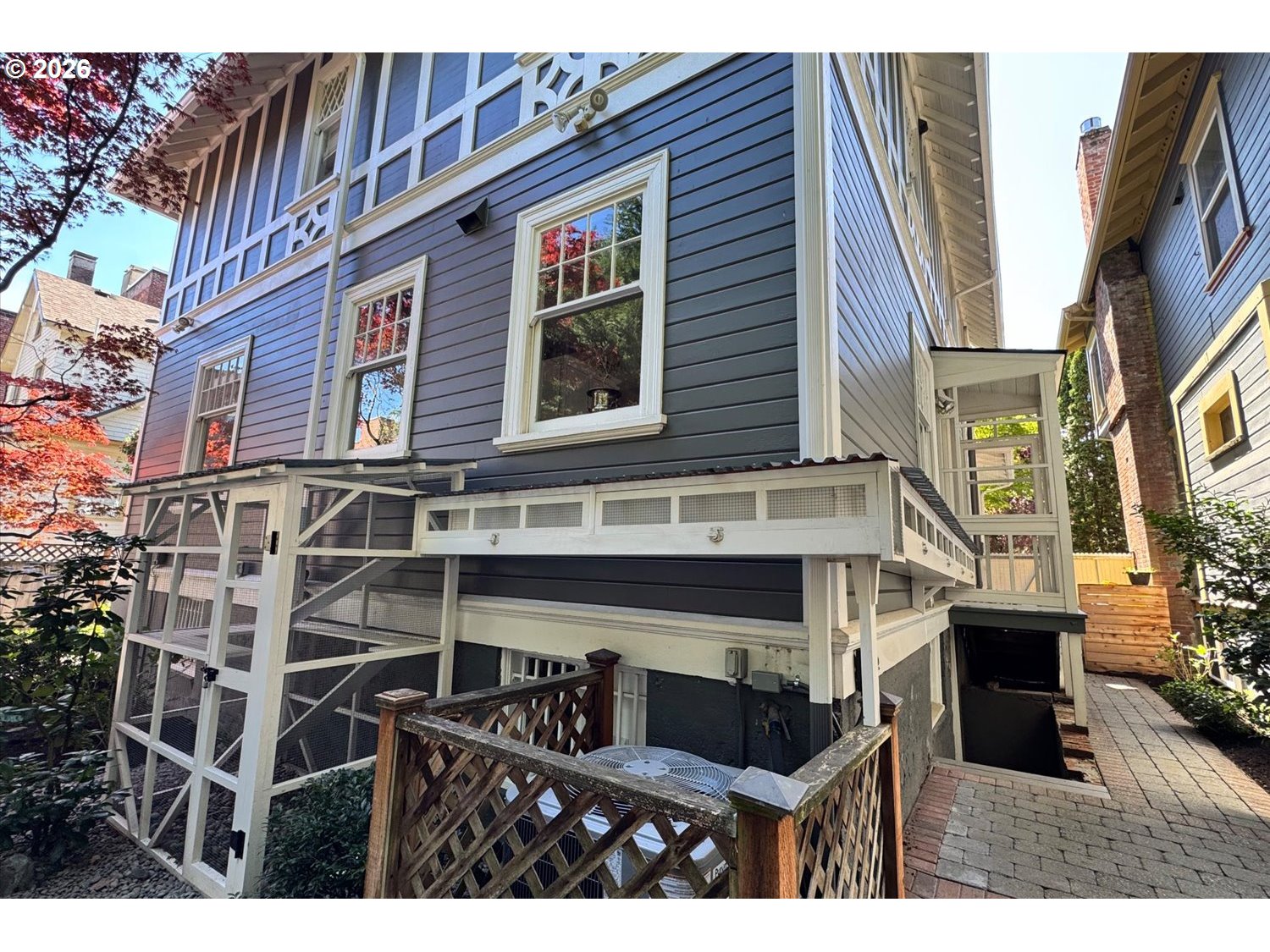 Open House 4/14 11-2: Turn-of-the-Century Belle of the Historic NW Alphabet District! Built in 1898 and lovingly updated (modern plumbing/electrical and seismic reinforcement+ new basement floor in 2004-2007) New roof in 2026 & new furnace & AC in 2019, new washer dryer, hot water heater & dishwasher 2018 (appx.) The home is infused with refined and elegant millwork of the Victorian era yet with a broad, open scale of a Craftsman home. Natural light floods rooms through the beautiful windows with French & diamond panes and highlights the architectural details. Layered moldings meet 10' ceilings, wide doorways are adorned with pocket and French doors. The main floor has a coveted circular floor plan. The staircase has a door that allows one to close off the lingering dinner party while ensuring bedtime is honored. Custom blinds and drapes throughout the home. The back yard is fully fenced, and the kitchen porch is screened in and has the most fantastic cat run, which connects to a delux catio in the back yard. Back patio is a forested oasis while the front yard (also fenced) and covered front porch is reminiscent of a southern veranda. No actual garage, but the driveway can accommodate up to 6 cars, and has a gate at the mid-way point. Leave the cars and wander to all the neighborhood has to offer - in between NW 23rd & 21st Avenues and bustling Slabtown. Enjoy a summer concert or a professional soccer game at Providence Park. Choose from the rose gardens, tennis courts, Japanese Gardens of Washington Park or the forested trails of Forest Park. The Walk Score of 97, out of 100, says it all - just close enough to not be car dependent. Located in an urban, Historic District in one of the City's most coveted neighborhoods. [Home Energy Score = 1. HES Report at https://rpt.greenbuildingregistry.com/hes/OR10245229]