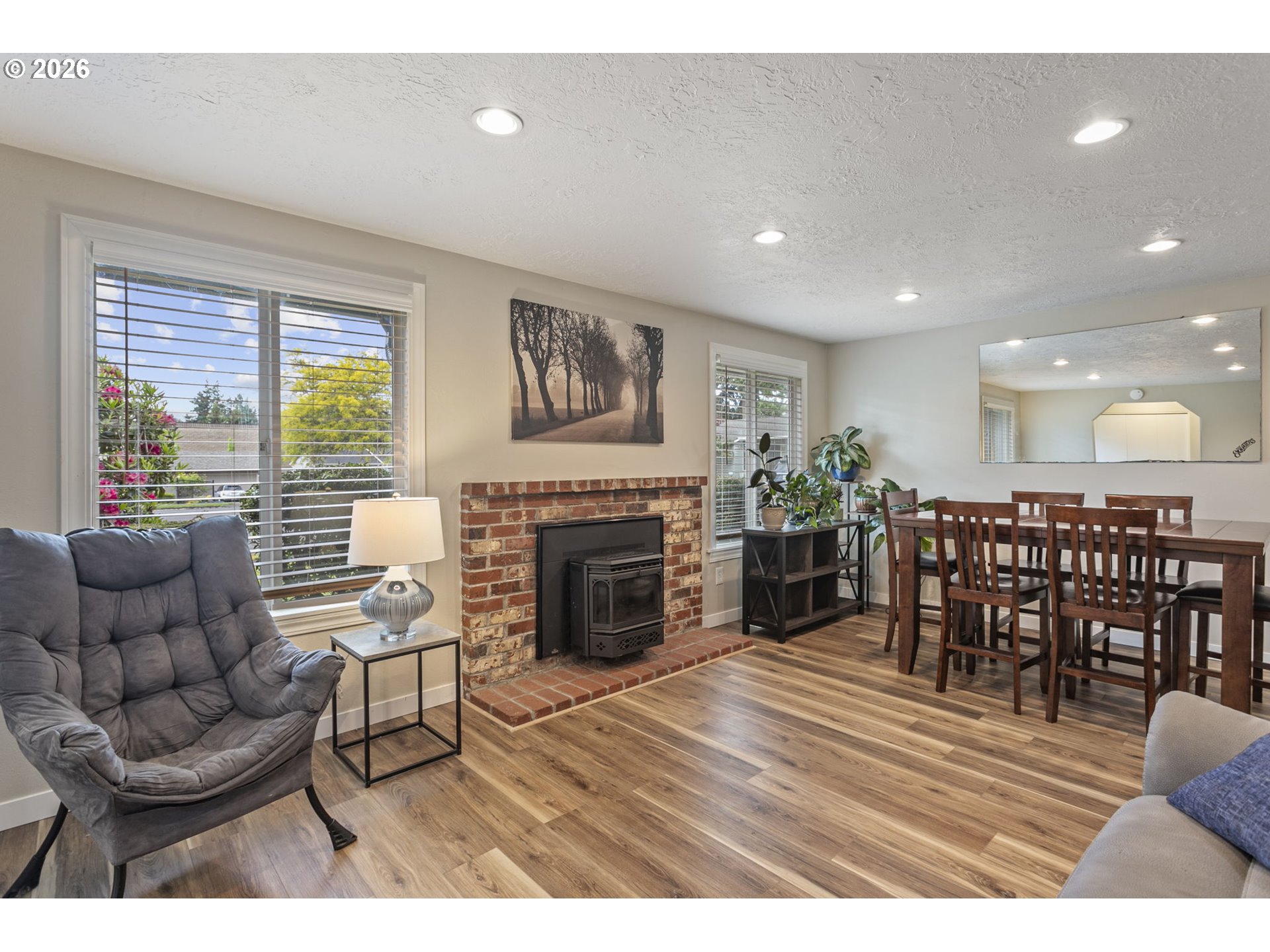 Welcome to this well-located Gresham charmer, offering a comfortable blend of space, convenience, and everyday livability. Nestled on a peaceful cul-de-sac and backing to City maintained North Gresham Park, this property provides an excellent balance of privacy and accessibility. Step inside to discover a practical layout that boasts bright living spaces filled with ample natural light. The functional kitchen is perfect for daily meals or entertaining, featuring granite countertops and stainless steel appliances. Luxury vinyl plank flooring flows throughout the home, adding both style and durability. The bedrooms are comfortably sized, each equipped with double closets, ensuring plenty of storage for your belongings. The primary comes with its own bathroom complete with a walk-in shower for a touch of luxury. Additional highlights include a cozy pellet stove for those chilly evenings, an interior laundry room for added convenience, and a spacious lot that offers room for outdoor enjoyment, gardening, or personalizing your outdoor space. The mature greenery surrounding the property adds a sense of established character and tranquility. Whether you're a first-time buyer, an investor, or someone seeking a well-situated home, this property delivers a solid opportunity. Plus, with a brand new roof (not shown in pictures) and water heater installed in February 2026, you can move in with peace of mind. Don’t miss your chance to make this charming home your own!