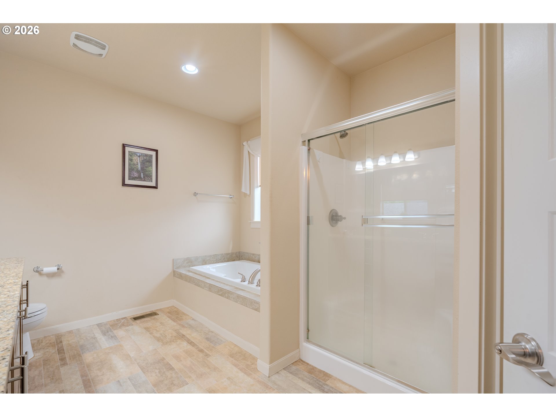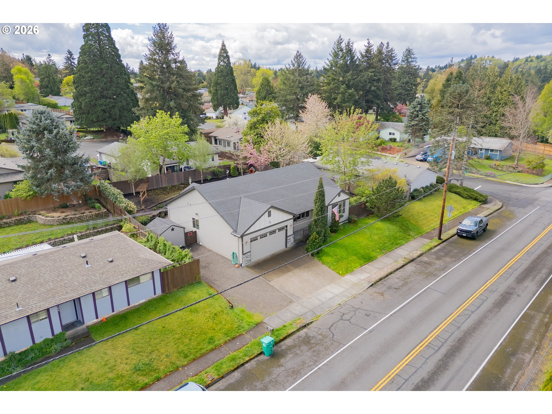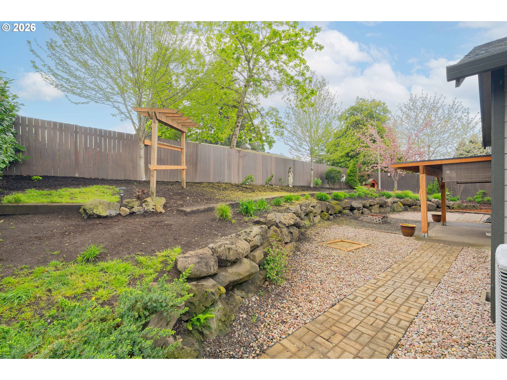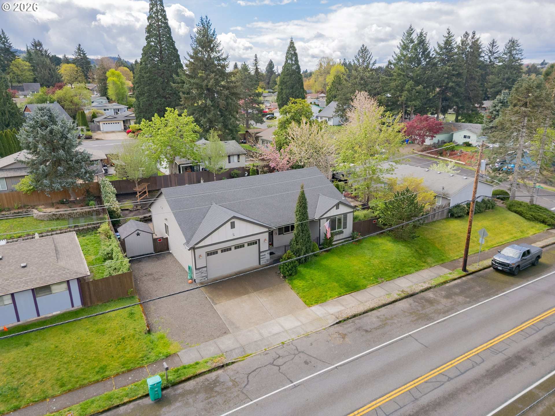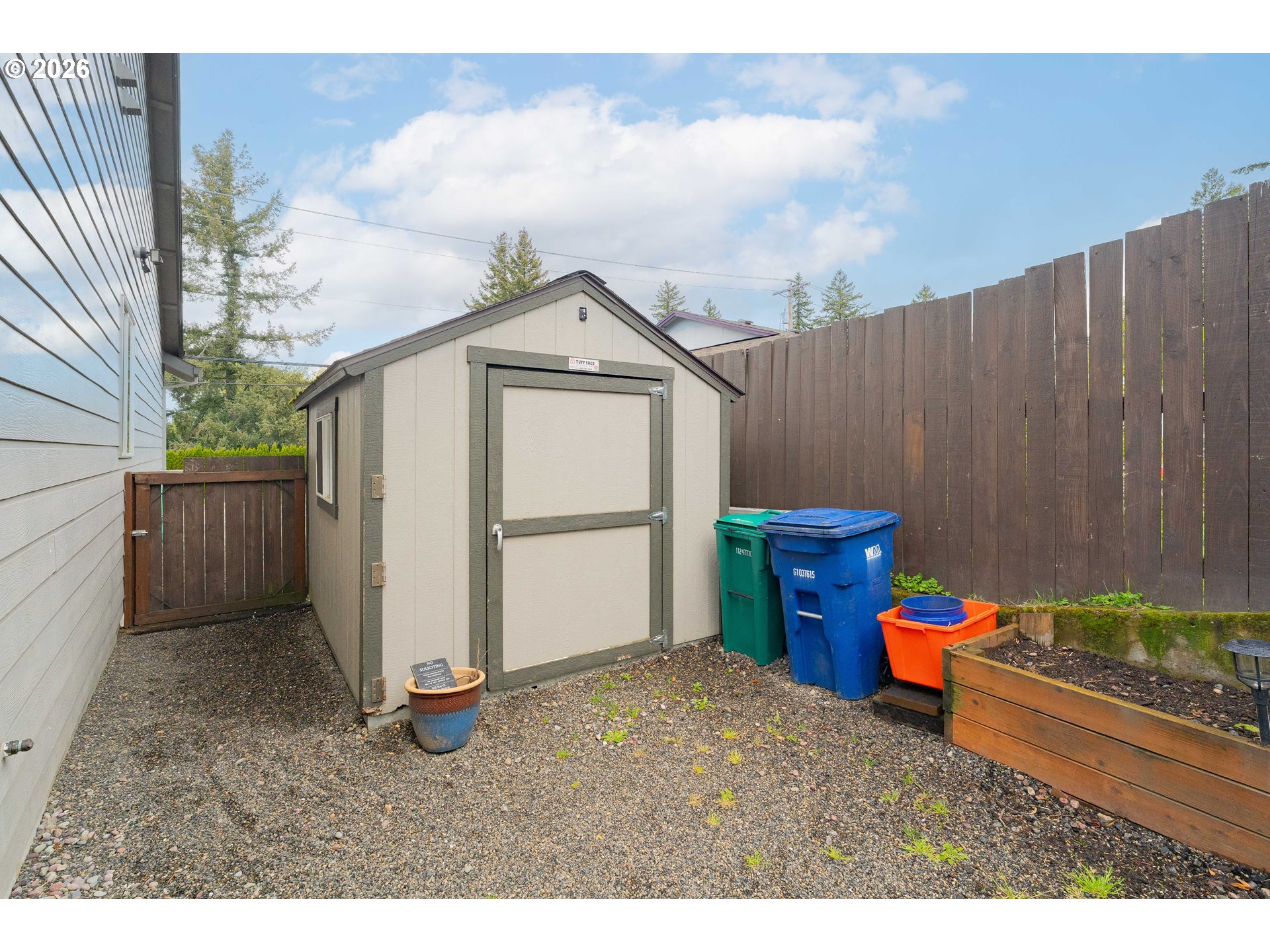 One-level living with an open floor plan offering 1,729 sf, 3 bedrooms, and 2 bathrooms - truly move-in ready. The great room brings it all together with gorgeous laminate flooring, a propane fireplace with built-ins, and ample windows that frame the backyard, plus a door for easy indoor/outdoor access. The kitchen is open and chic with granite counters, stainless appliances (refrigerator included), and an adjoining dining area. The spacious primary suite stands out with a statement wood accent wall crafted with full-width horizontal planks in warm, natural tones, paired with modern sconces - bringing a perfect blend of rustic texture and modern style. A spa-like ensuite featuring double sinks, a soaking tub, and separate walk-in shower, plus a walk-in closet. The large laundry room is dialed in with built-ins, granite counters, and a folding station - washer and dryer included. Outside, the beautifully landscaped, low-maintenance backyard is ready for year-round enjoyment with a fully fenced layout, covered patio, fire pit, pathways, hot tub, and a Tuff Shed for extra storage. Minutes to Downtown Gresham, Shopping, Restaurants, Parks and Walking trails. RV parking and NO HOA seal the deal.