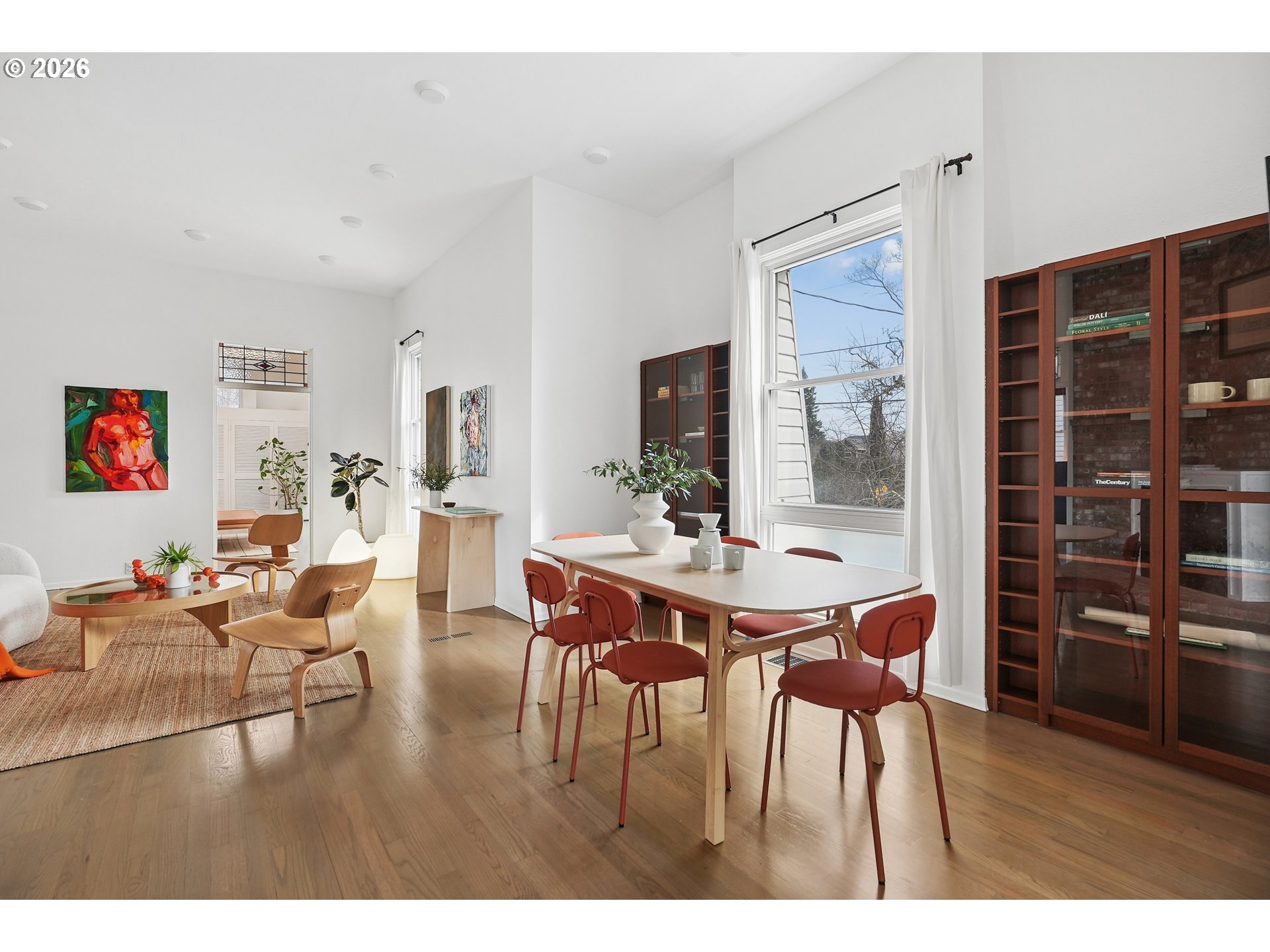 Originally built in 1892 and completely reimagined by a marine architect, this Overlook residence is a study in light, volume, and thoughtful design. Every angle of the home reflects a vision that blends historic character with modern sensibility, creating a living space that feels both grounded and quietly extraordinary.Sunlight pours through the home from every direction. The primary suite feels almost sky bound with a ceiling of skylights that flood the space with natural light from morning through evening. Warm hardwood floors run throughout, anchored by a cozy fireplace that adds depth and warmth to the main living area. The kitchen features modern updates paired with custom hardwood cabinetry, designed for both beauty and everyday function.Three bedrooms and two bathrooms on the main level, offering a comfortable and practical layout. Beyond the main living spaces, the home opens up guest quarters and a separate entry that creates potential for an ADU, creative studio, workshop, or private retreat. One of the home’s remarkable features is the sprawling rooftop terrace nestled among the trees. From this elevated perch you can take in sweeping skyline views and unforgettable Portland sunsets, making it a space meant for celebrating the beauty of the Pacific Northwest.The south facing backyard invites in all day light and offers room to garden & entertain. Off street parking, a setup ready for electric car charging, and flexible spaces throughout the property make this home as practical as it is distinctive.Located in the beloved Overlook neighborhood, this is truly a one of a kind architectural experience.Twilight Open House Thursday March 5th from 4 PM to 7 PM. This home was meant to be shown. [Home Energy Score = 3. HES Report at https://rpt.greenbuildingregistry.com/hes/OR10109148]