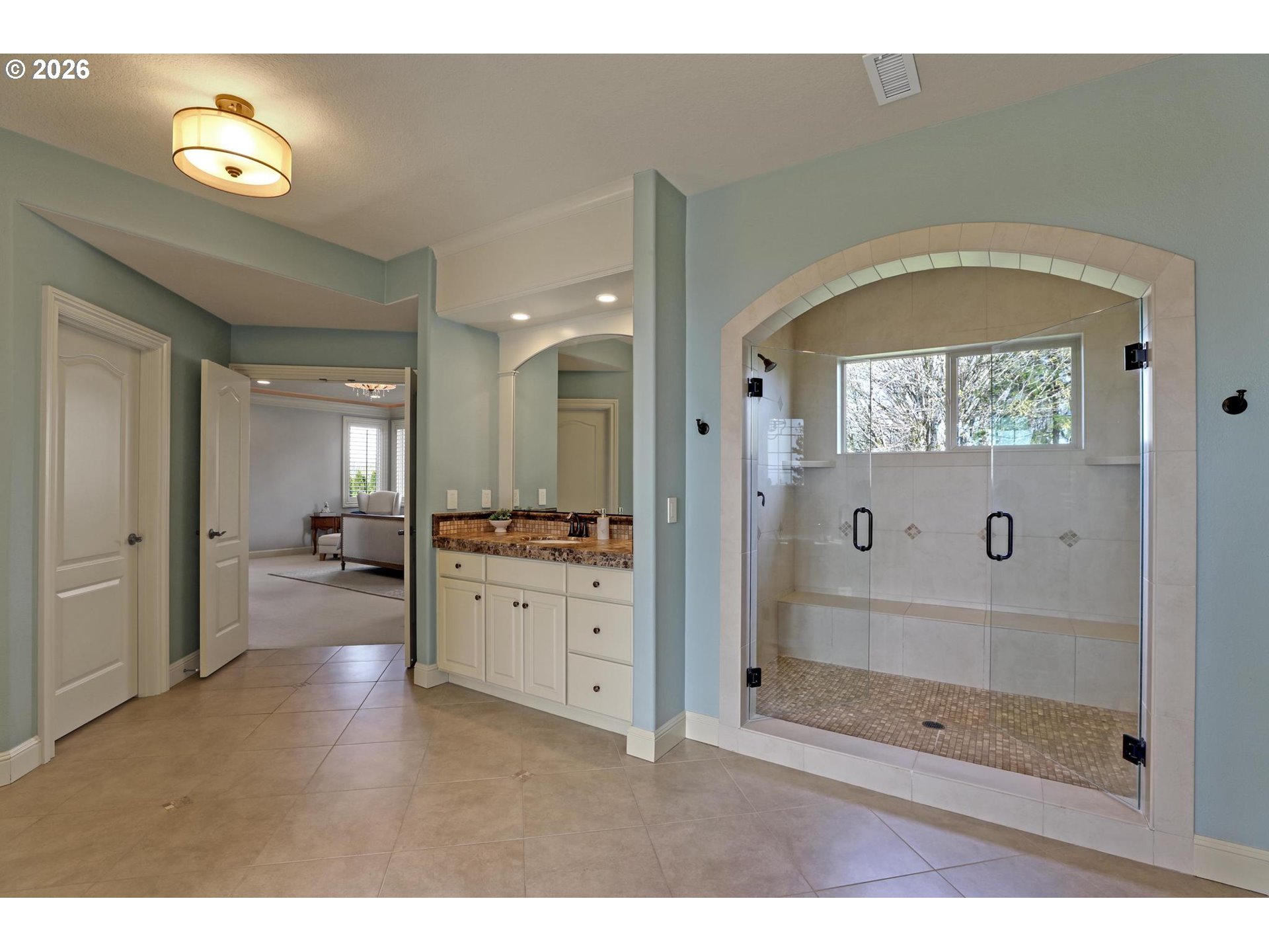 This exceptional residence offers a rare blend of luxury, space, and meticulous craftsmanship. A striking paver circular driveway sets the tone, welcoming you into a home rich in character with elegant wainscoting, arched doorways, and extensive millwork throughout. Enjoy breathtaking mountain and territorial views from an ultra-private setting. The dramatic living room is bathed in natural light, thanks to expansive windows that create a warm yet sophisticated ambiance. Thoughtfully designed for both everyday living and effortless entertaining, the home features 4 spacious bedrooms, a dedicated den/office, and a large bonus room. At the heart of the home, the chef’s kitchen impresses with high-end appliances, a large island, and a generous walk-in pantry. A formal dining room with a butler’s pantry adds both convenience and elegance for hosting. Additional highlights include a private main-level guest suite—ideal for extended family, abundant storage throughout, and a well-appointed upstairs laundry room with sink and extensive cabinetry. The luxurious primary suite serves as a true retreat, featuring a spa-inspired bathroom and dual walk-in closets. Car enthusiasts and hobbyists will appreciate the 4-car garage with durable epoxy flooring. Set on a rare, level 0.28-acre lot, the outdoor space is perfect for both play and relaxation. The east-facing orientation ensures cool, comfortable summer evenings, while the covered patio creates an inviting space for year-round use. All of this with convenient access to downtown, major hospitals, and the tech corridor—offering the perfect balance of tranquility and accessibility. [Home Energy Score = 4. HES Report at https://rpt.greenbuildingregistry.com/hes/OR10246035]