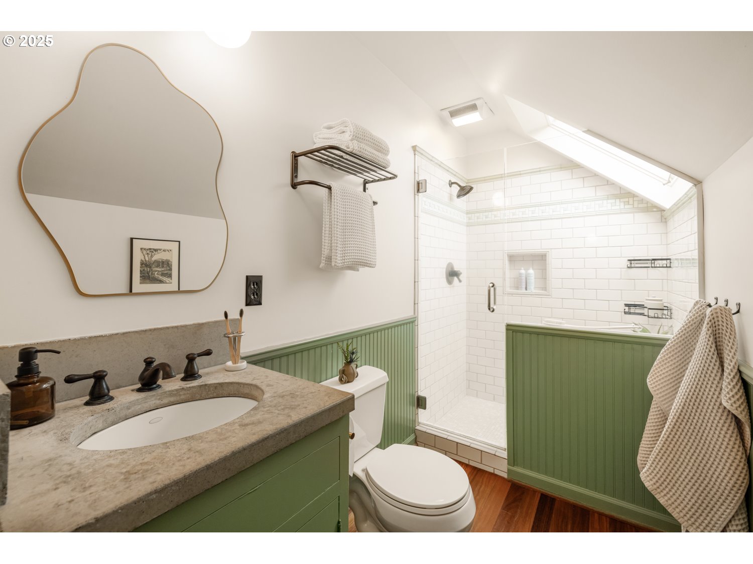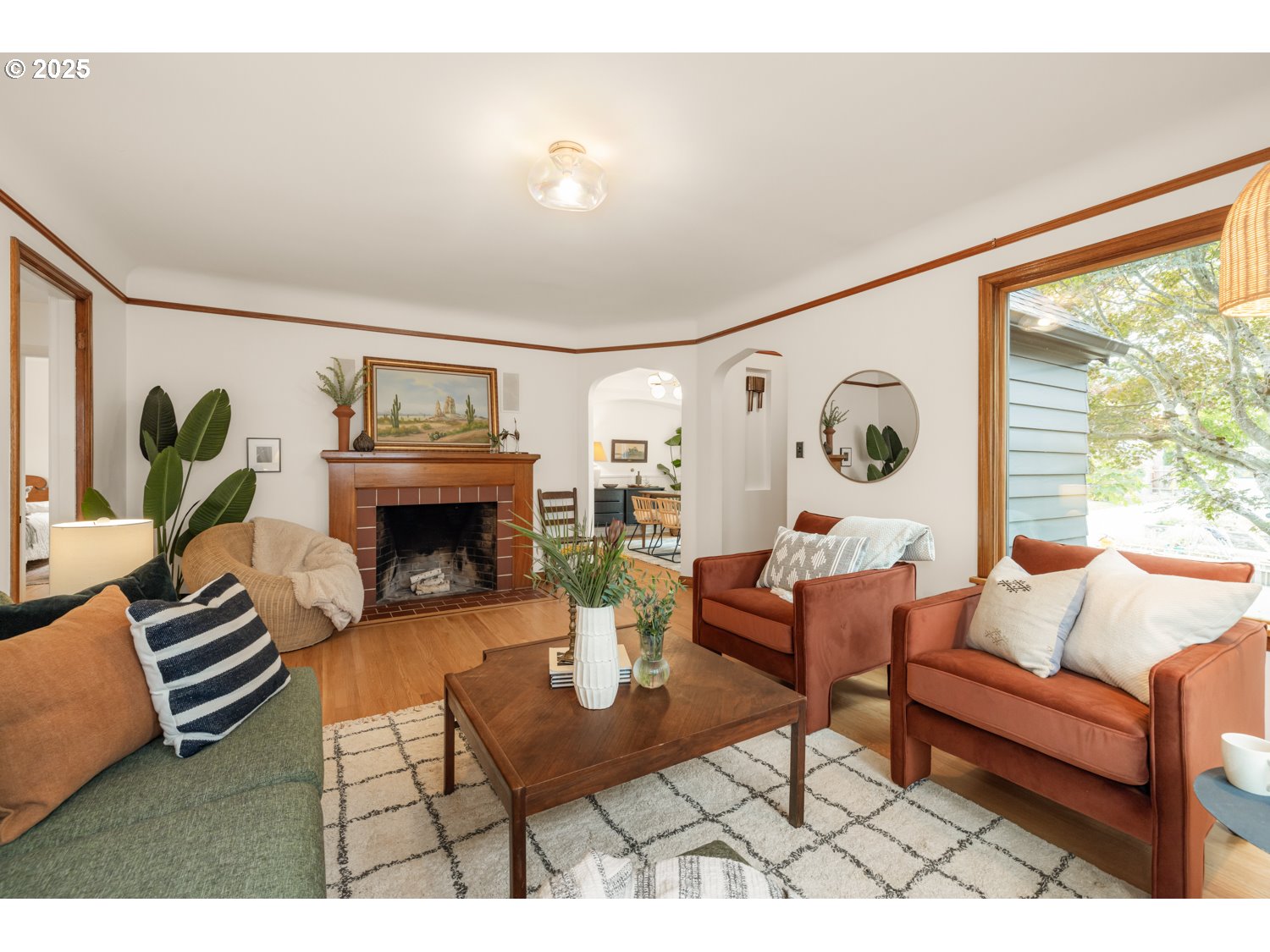 Come home to your sanctuary in the heart of the city! This stunning Colonial Heights English is endlessly charming and totally turnkey. Check off all the boxes on your list, like a spacious living room with oak hardwood floors and a cozy wood burning fireplace, a sunny wainscoted dining room, a gorgeous kitchen with upscale finishes throughout, two perfect bedrooms on the main - and just wait until you see the primary suite! Deliciously spacious with an ensuite bathroom and an extra large walk-in closet. Wood floors, custom built-ins, chic wallpaper and fixtures plus a skylight make it light, bright and beautiful, with a mini-split to keep you comfortable all year long. The backyard will be your new summer happy place - a beautiful oasis professionally designed and built with multiple patios, plenty of room for gardening and play, banana trees for tropical flair, a new cedar fence and a big, luxurious sauna. Downstairs you’ll find a finished laundry room and a full basement with great head height and tons of potential, whether you need a big bonus room, a workshop for tinkering or heaps of storage. Many recent updates include interior and exterior paint, French drains, central AC, backyard fencing and landscaping, a brand new Bosch dishwasher and more! This is your chance to have the best of both worlds - live on a quiet residential street tucked into the middle of beautiful Colonial Heights, just blocks away from some of Portland’s best food, drinks and fun. Walk to New Seasons, Little T Bakery, Broder Cafe, Jacqueline, Fifty Licks…the list goes on and on. Just minutes from Hawthorne, Division, Buckman and Kerns - welcome home! [Home Energy Score = 3. HES Report at https://rpt.greenbuildingregistry.com/hes/OR10242262]