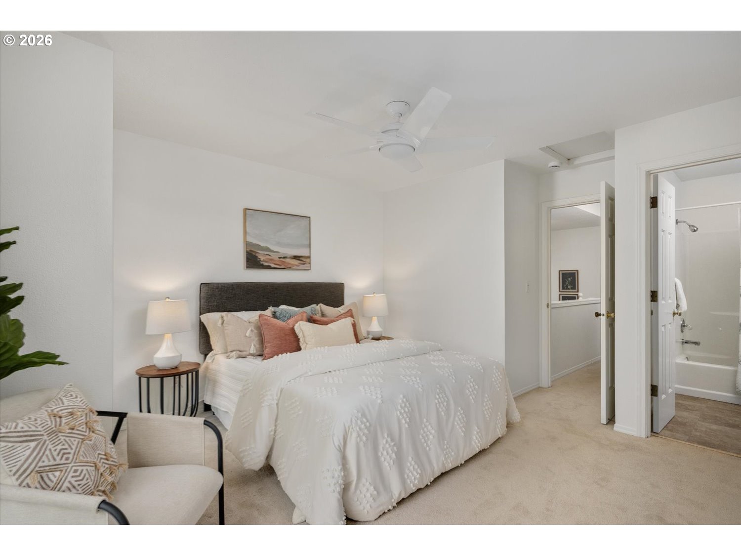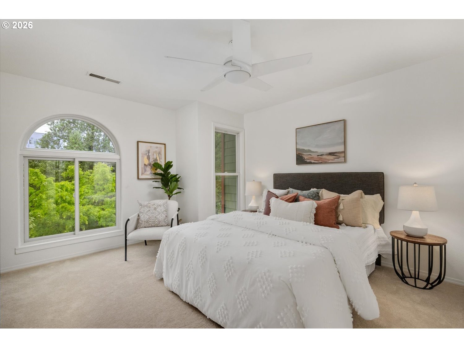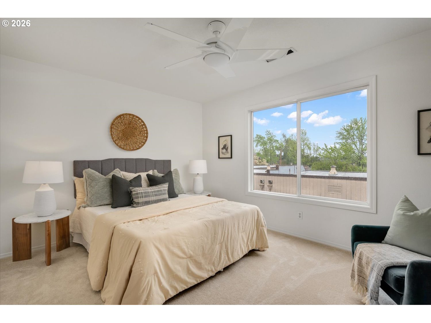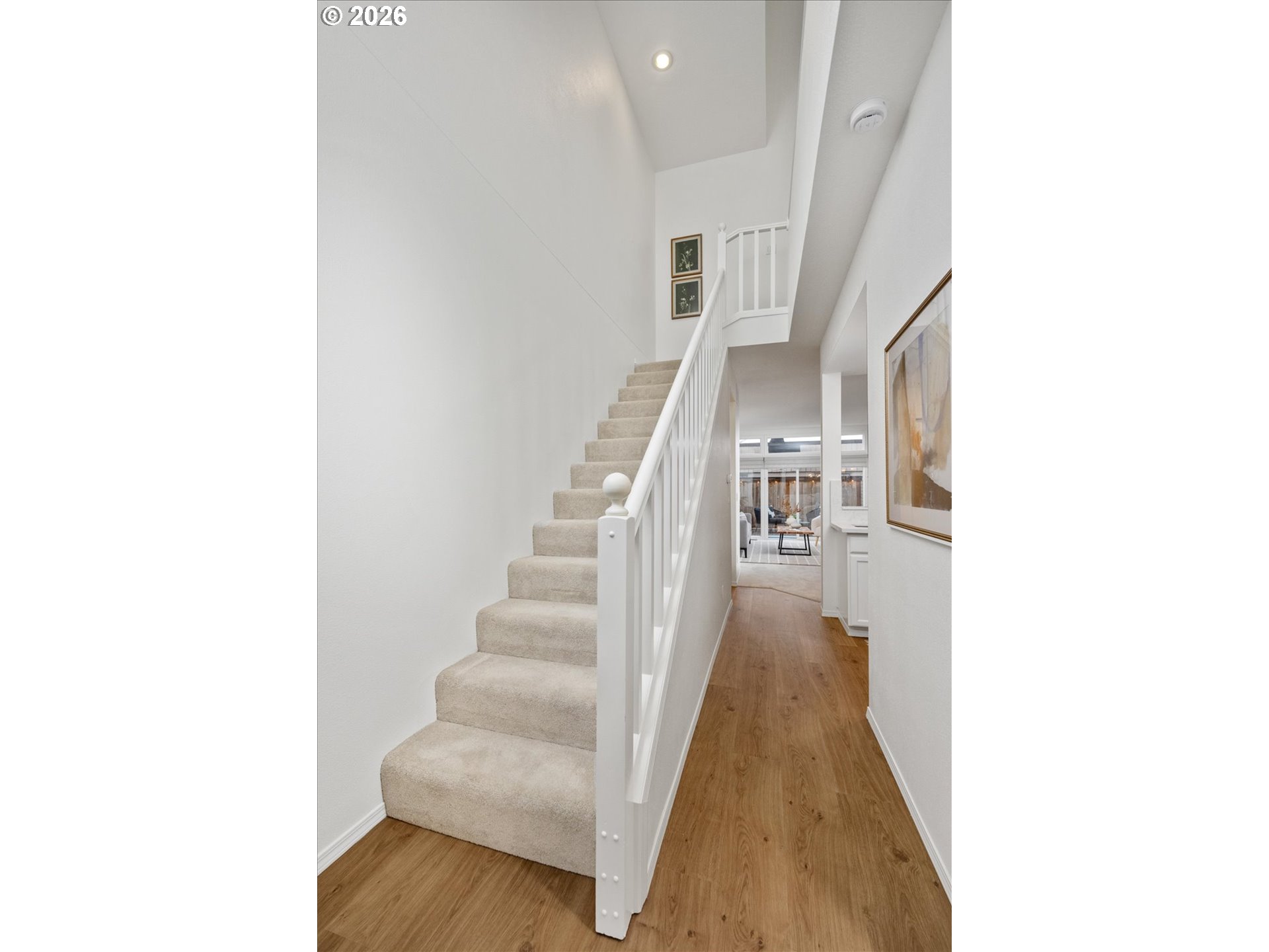 Welcome to the iconic “Crayola Crayon” rowhouses—colorful, instantly recognizable, and ideally located just steps from NW 23rd Avenue in the heart of NW Portland. This light-filled home features dramatic 18’ ceilings and an open-concept main level that seamlessly connects the living, dining, and kitchen spaces. A gas fireplace anchors the living area, while sliding doors open to a generous deck and private backyard—perfect for indoor-outdoor living and entertaining. The updated kitchen showcases quartz countertops, freshly painted cabinetry, and stainless steel appliances, thoughtfully designed to keep the cook connected to the conversation. A main-level den or office and powder bath add flexibility for today’s lifestyle. Upstairs, two spacious bedrooms each enjoy their own full bath, offering an ideal setup for guests or dual primary suites. The primary suite includes a walk-in closet and serene outlooks, while a skylit hallway brings in abundant natural light. Below, the exceptionally deep 39.5’ tandem garage offers incredible versatility—room for multiple vehicles, storage, or a workshop—plus a bonus area for hobbies or a home gym. Two additional off-street parking spaces in the driveway add even more convenience. With no monthly HOA, a Walk Score of 98, and close proximity to shops, dining, Wallace Park, and Forest Park trails, this is the perfect blend of character, space, and unbeatable urban living.