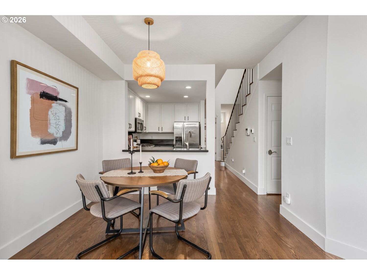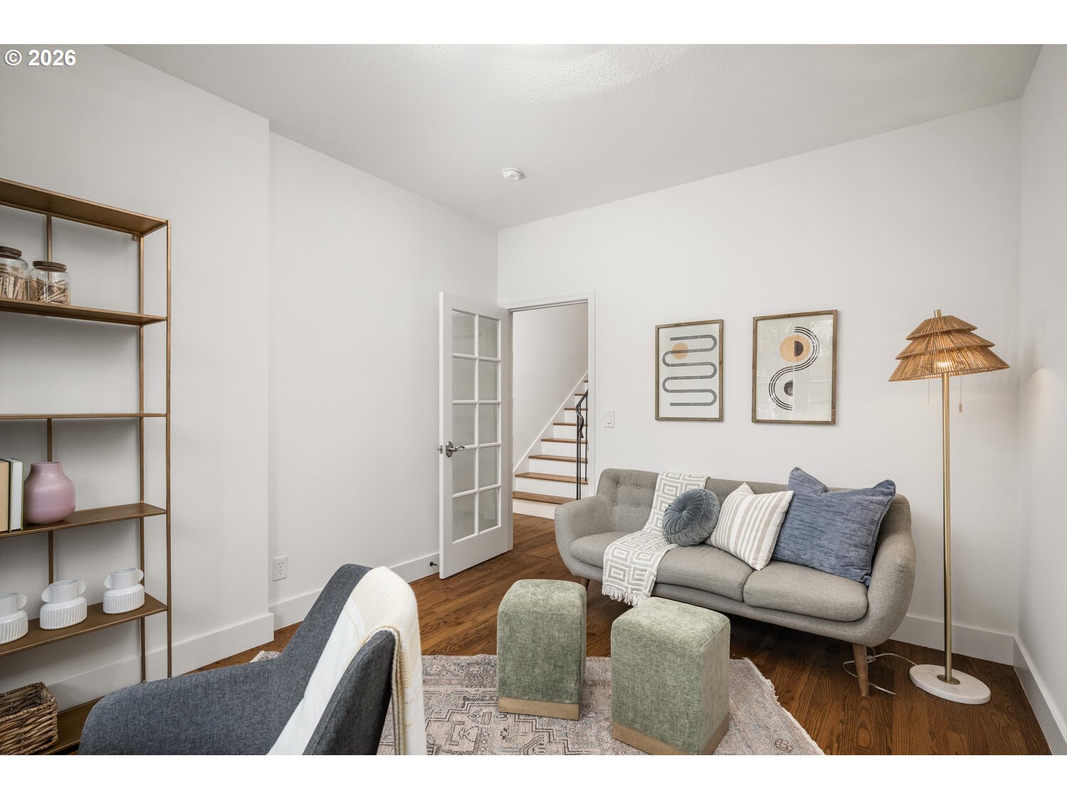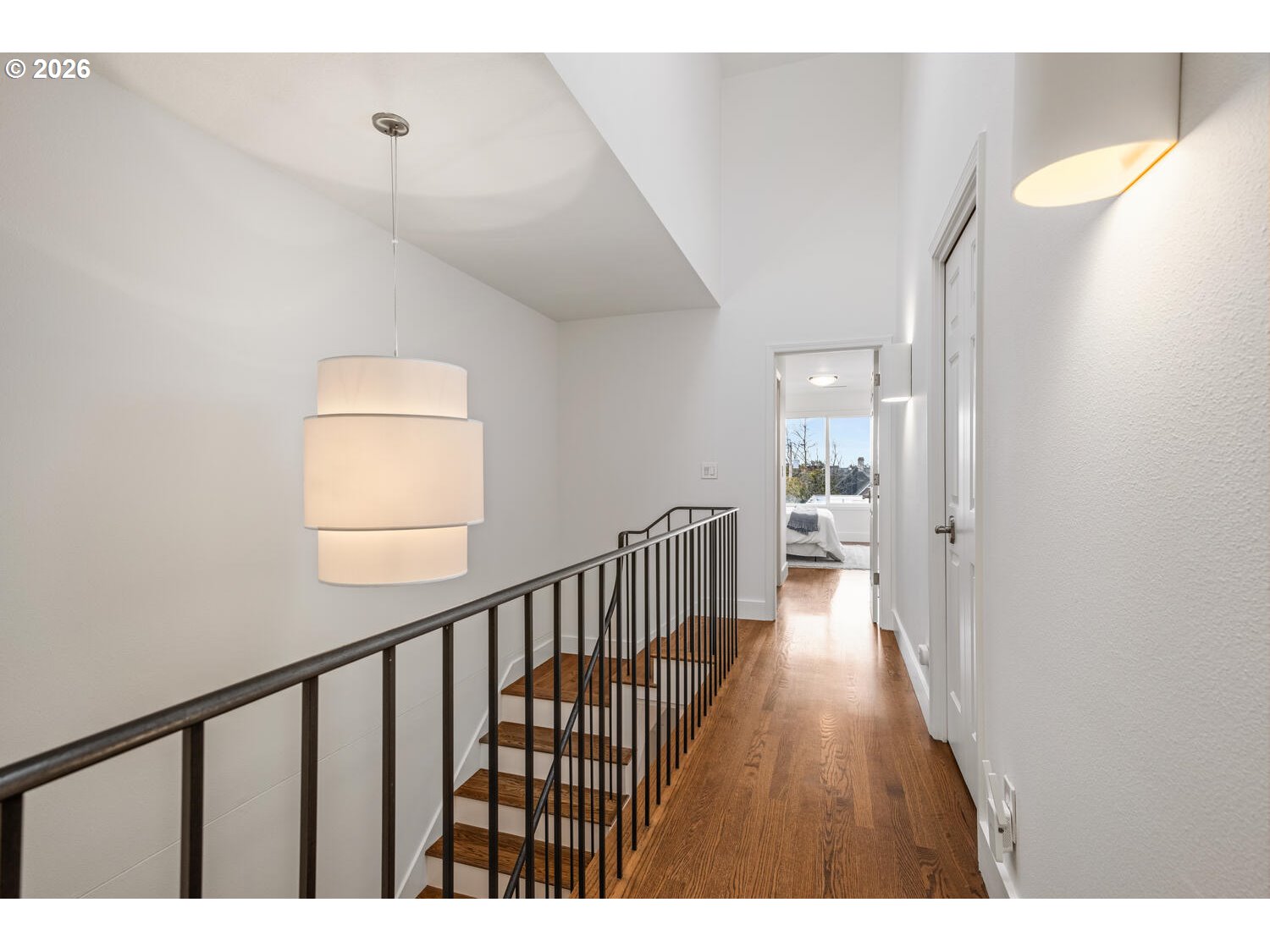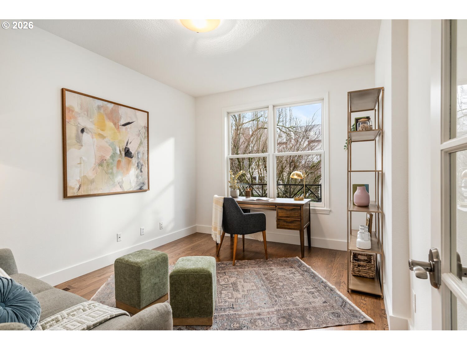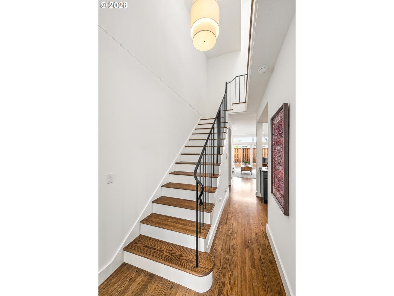 Welcome to the iconic “Crayola Crayon” Overton Rowhouses, perfectly positioned just steps from vibrant NW 23rd Ave in the heart of NW Portland. This 2BD + den residence lives like a detached home with its own private entry, backyard, and an exceptionally deep 51.5’ tandem garage (approx. 749 SF)—ideal for multiple vehicles, storage, a workshop, or home gym—plus two off-street driveway spaces, a rare find in this neighborhood. Inside, soaring ceilings and abundant natural light create an airy feel, complemented by hardwood floors, fresh interior paint, and a cozy wood-burning fireplace. The open-concept main level flows seamlessly to a rebuilt TimberTech Azek Mahogany deck (2023) with stairs to a low-maintenance backyard—perfect for entertaining or relaxing. Upstairs, both bedrooms feature attached full baths, offering flexibility for guests or dual primary suites. Additional highlights include a 2023 roof and thoughtful updates throughout. Annual HOA fee currently $240. and a Walk Score of 98—just moments to cafés, boutiques, parks, and Forest Park trails. Add a little color to your world and experience the energy, convenience, and timeless appeal of a Crayola Crayon rowhouse.