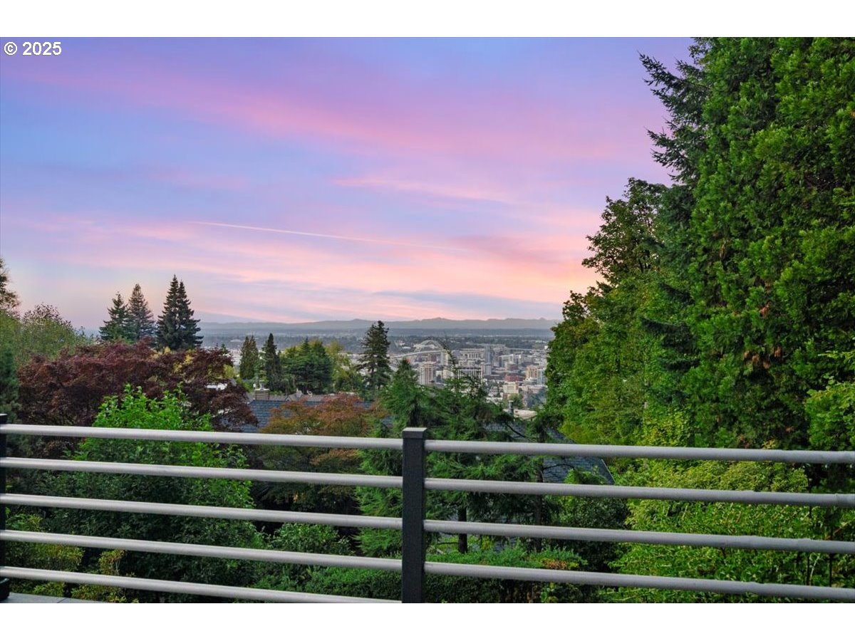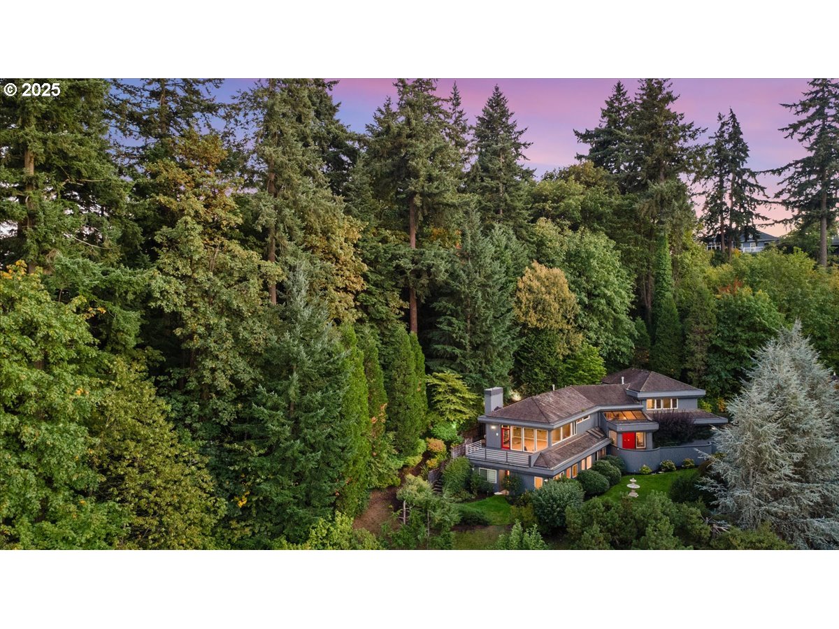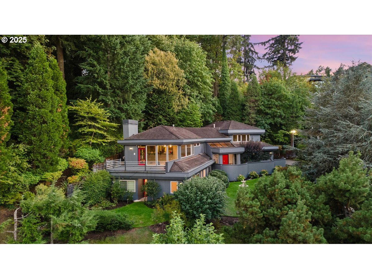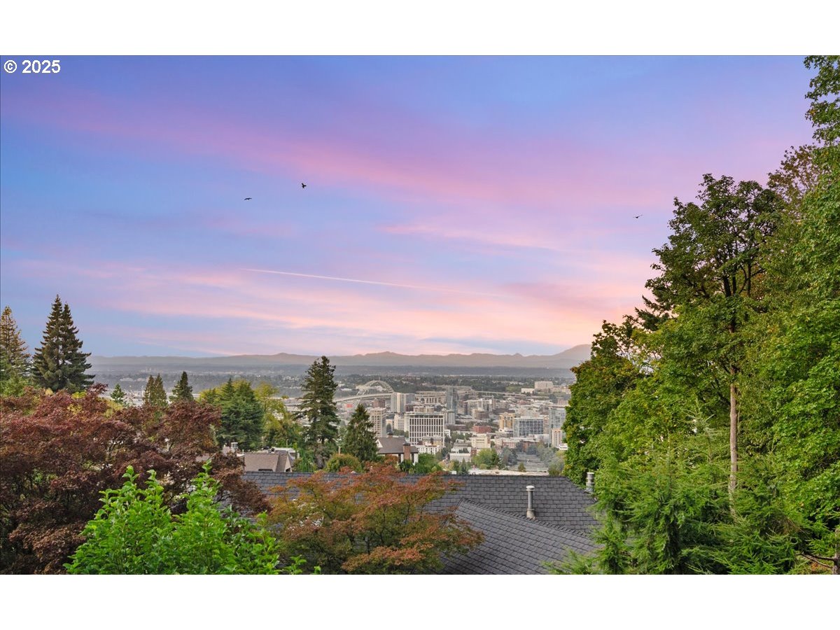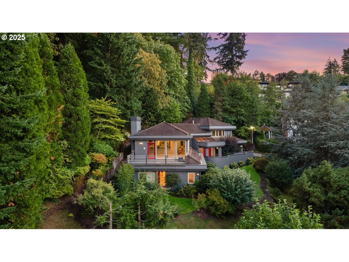 Live effortlessly in this one-of-a-kind Portland Heights residence, a home that blends contemporary urban design with natural serenity. Thoughtfully planned and superbly executed by renowned Oregon designer Steve Van Sant, this property showcases generous rooms, handsome built-ins, and walls of windows framing breathtaking views of the city and mountains. Perfectly positioned at the end of a private drive and bordering protected woodlands, the home offers rare privacy and elegance. The gated exterior offers a level lawn, expansive decks, and lush gardens—an ideal setting to enjoy the beauty of the natural surroundings. Distinguished by architectural detail, refined finishes, and seamless integration with its natural setting, this property offers both artistic sophistication and timeless comfort—while being only minutes from parks, trails, downtown, hospitals, schools, NW Portland, and the high-tech corridor. [Home Energy Score = 4. HES Report at https://rpt.greenbuildingregistry.com/hes/OR10026654]